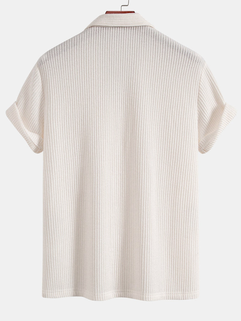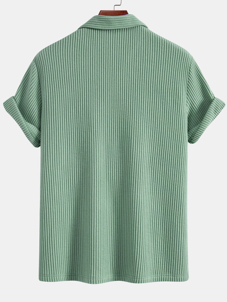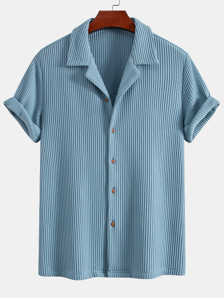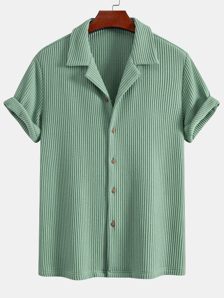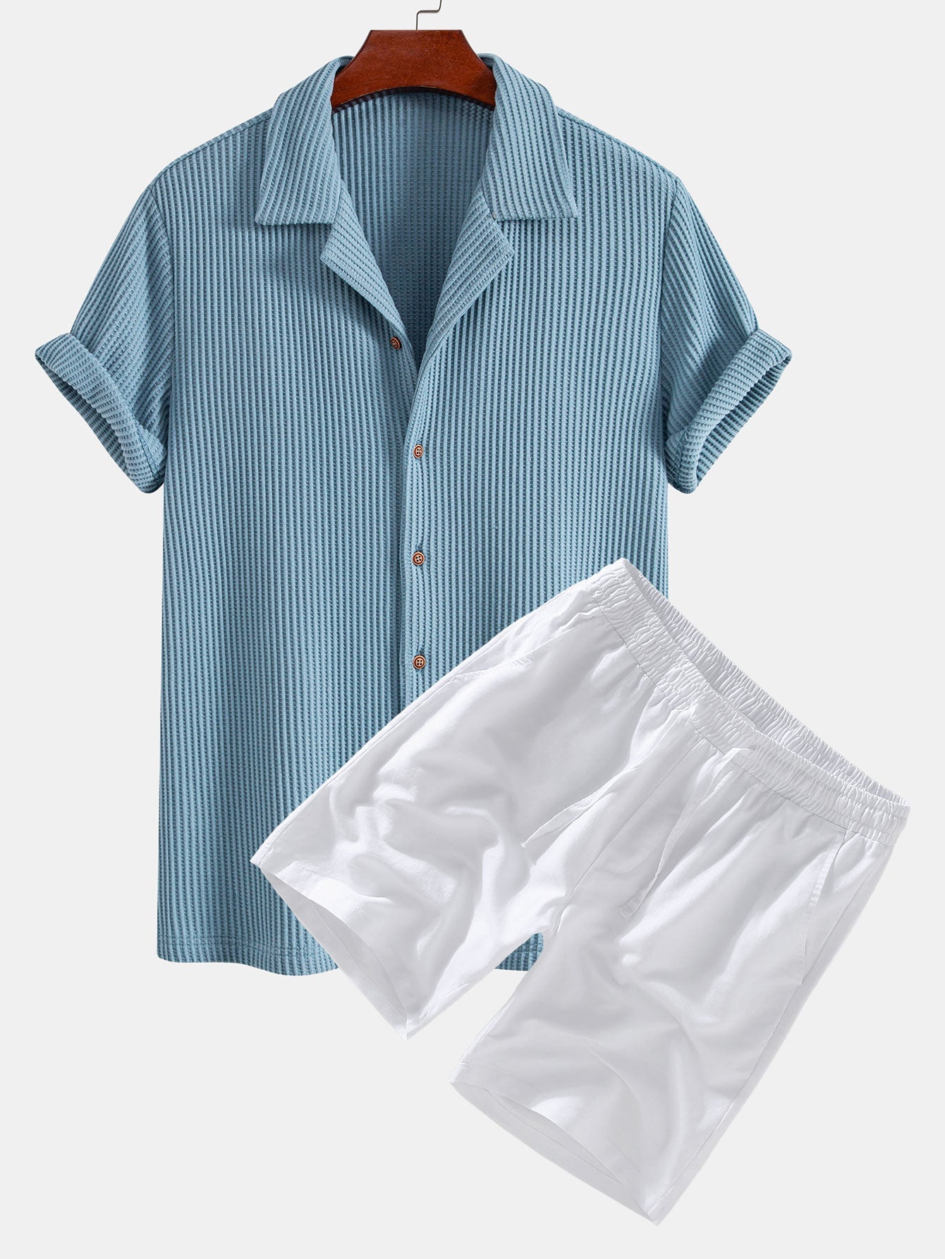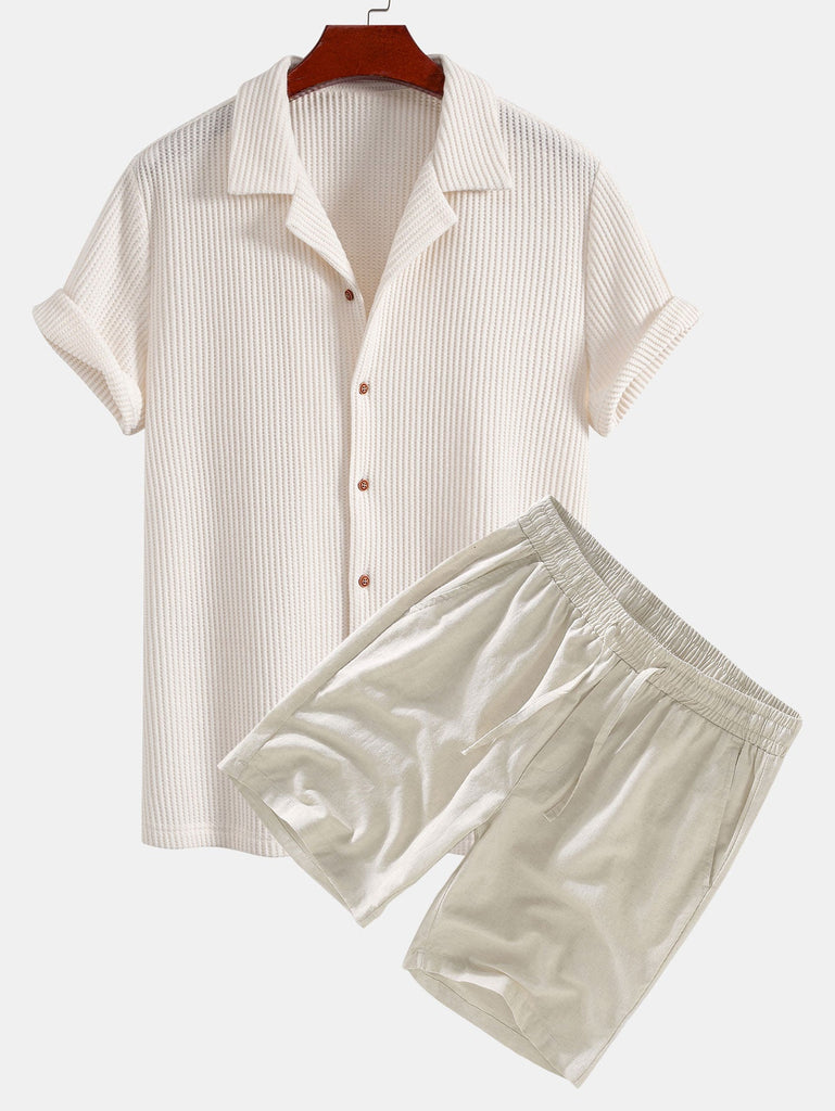 Waffle Button Up Shirt & Linen Cotton Blend Drawstring Shorts