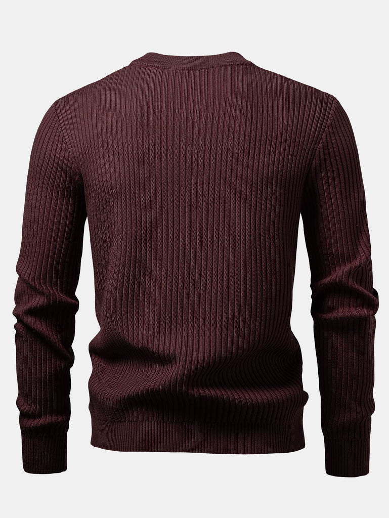Designed with a sleek stand collar and modern stripe detailing, this sweater blends classic knitwear comfort with contemporary style. Made from soft, warm fabric, it's perfect for layering or wearing on its own for a clean, versatile look.