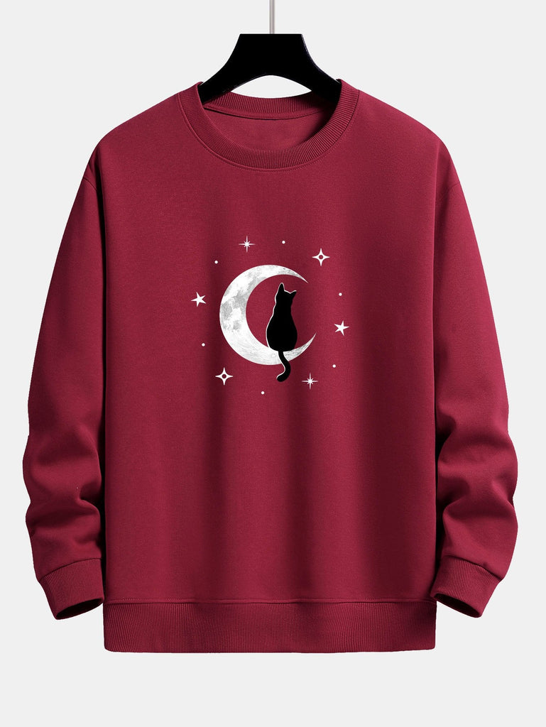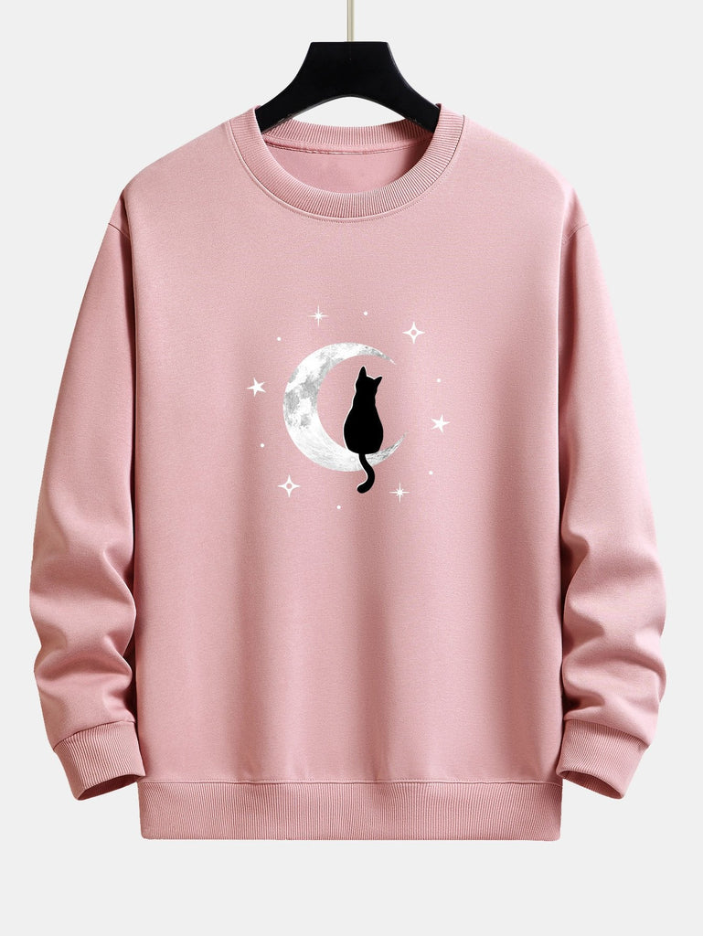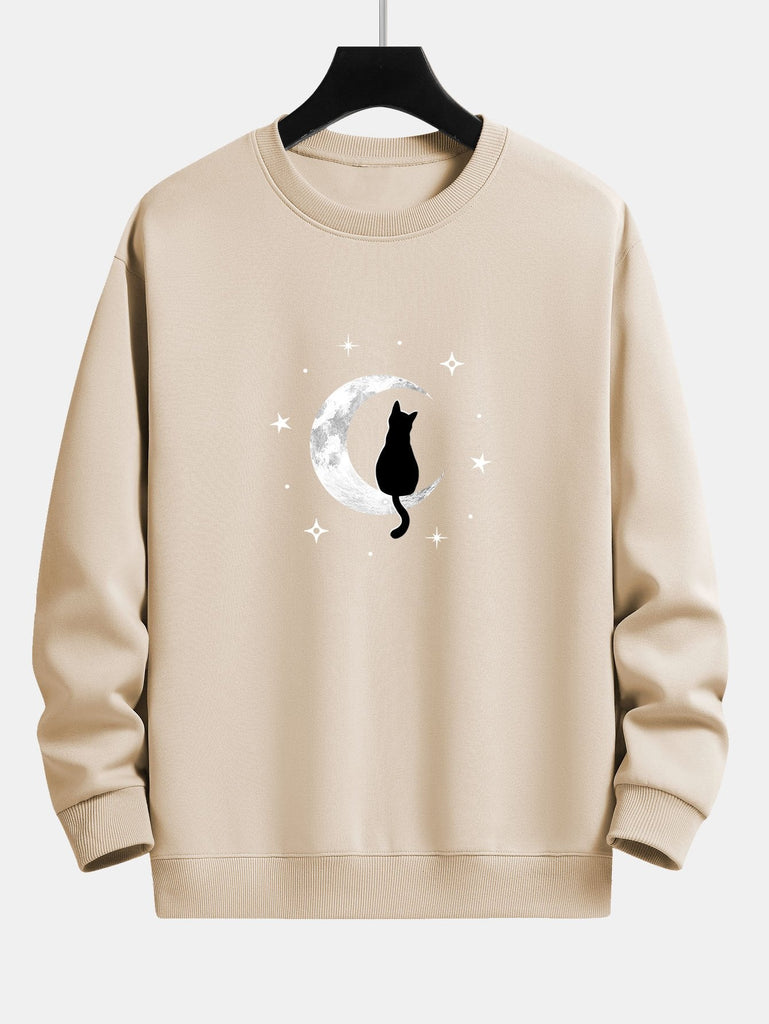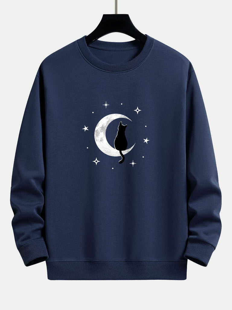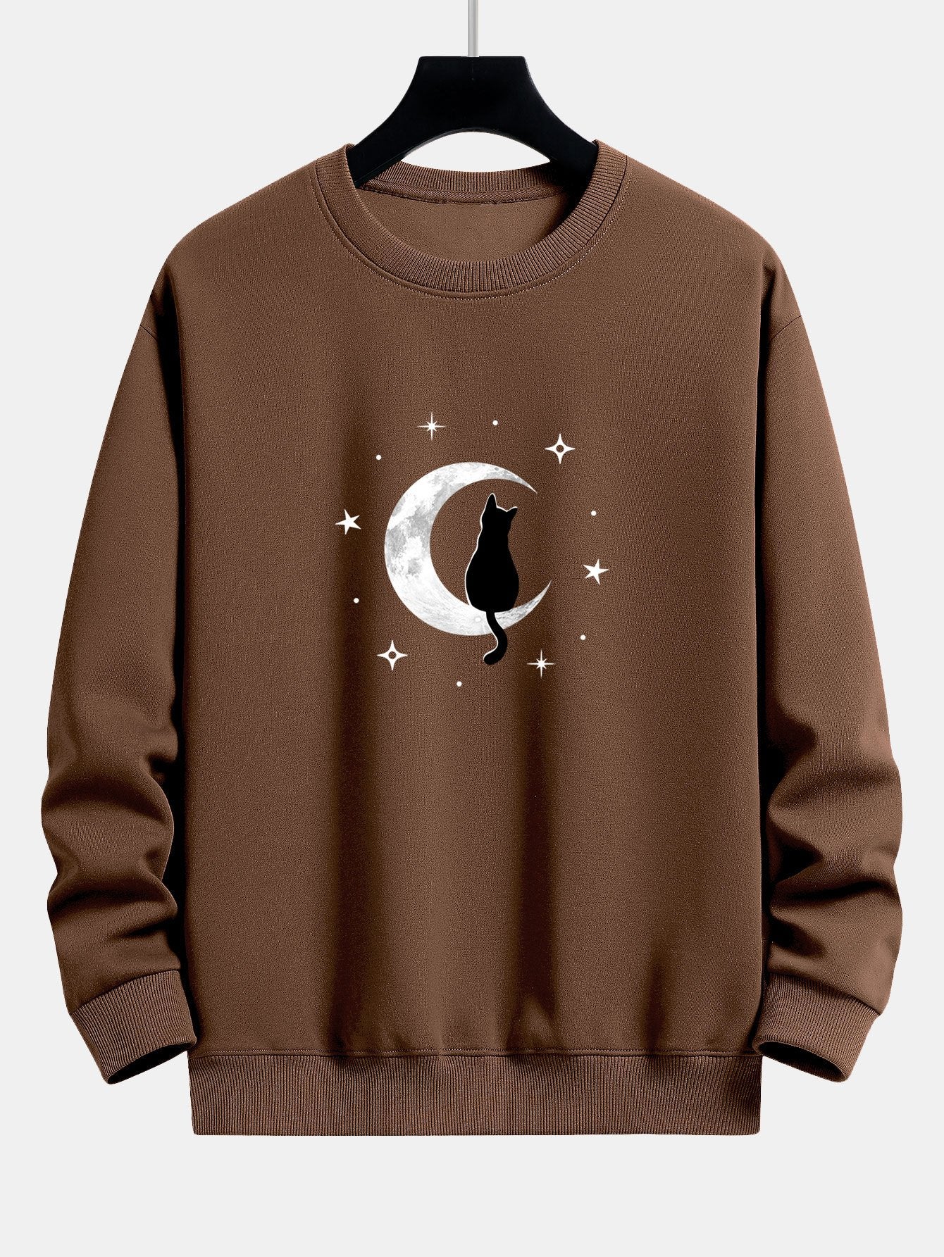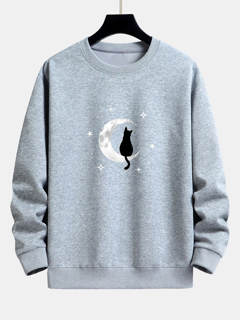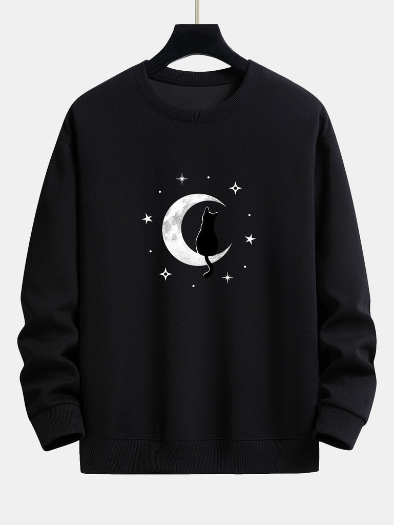 Black Cat On The Moon Print Relax Fit Sweatshirt