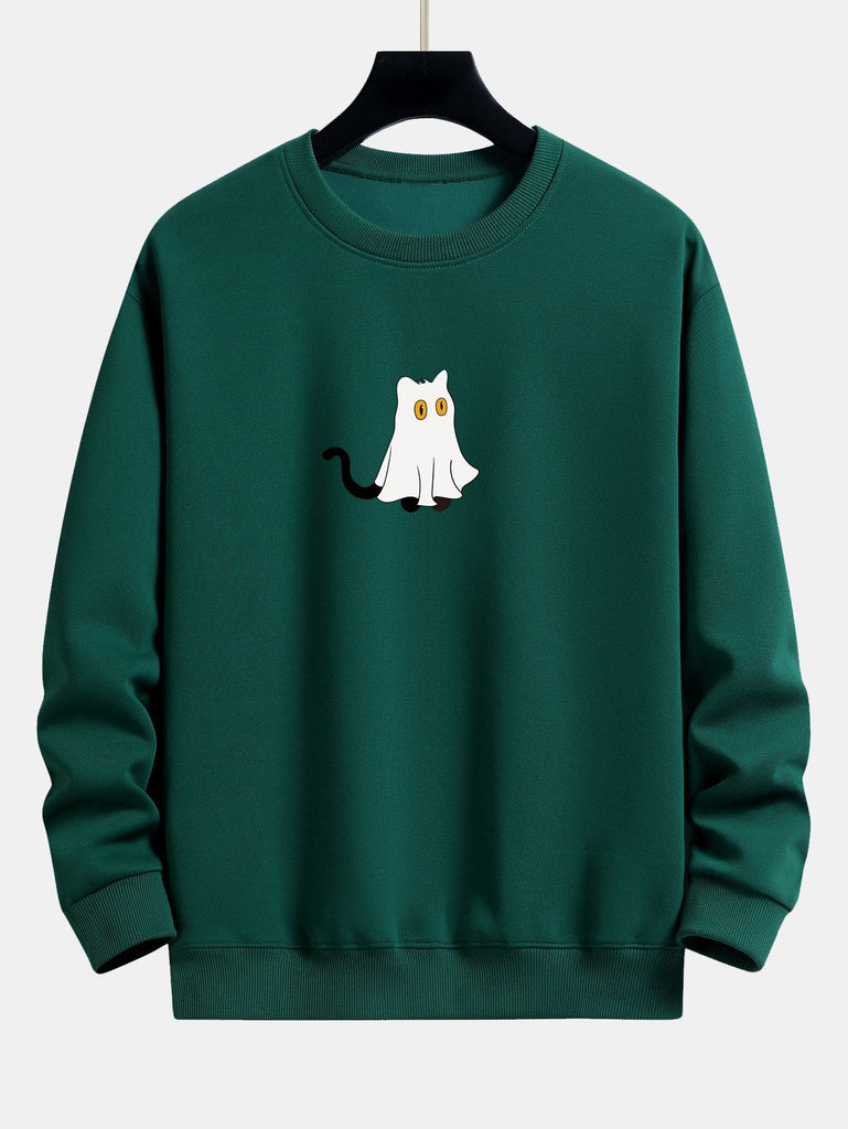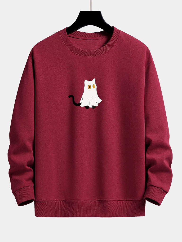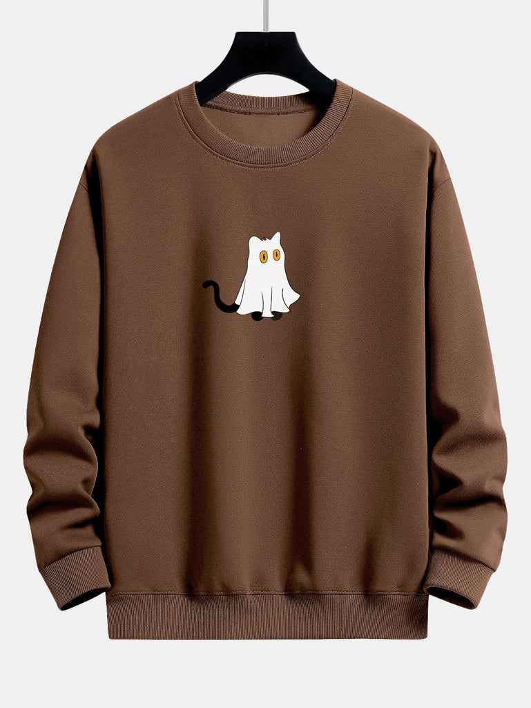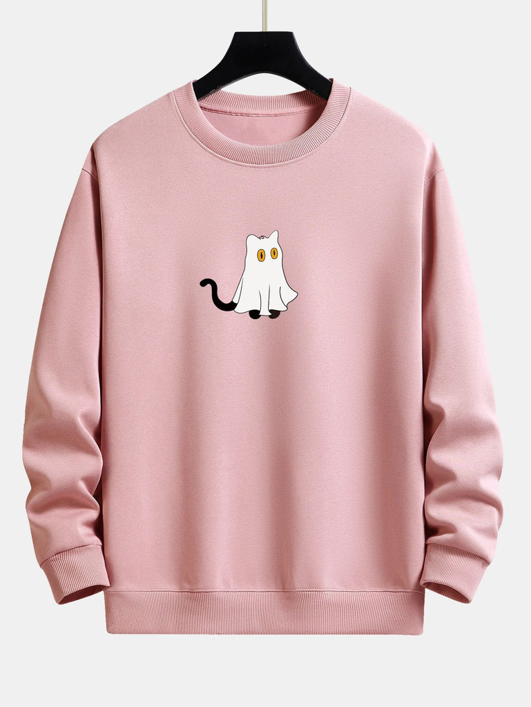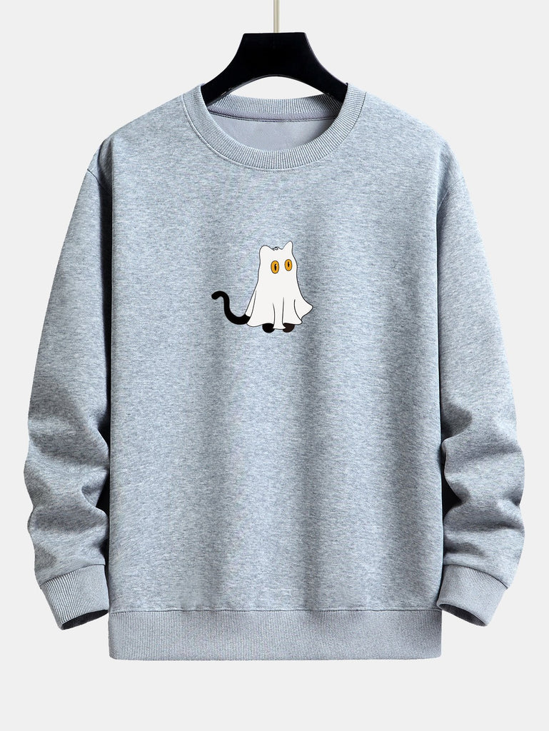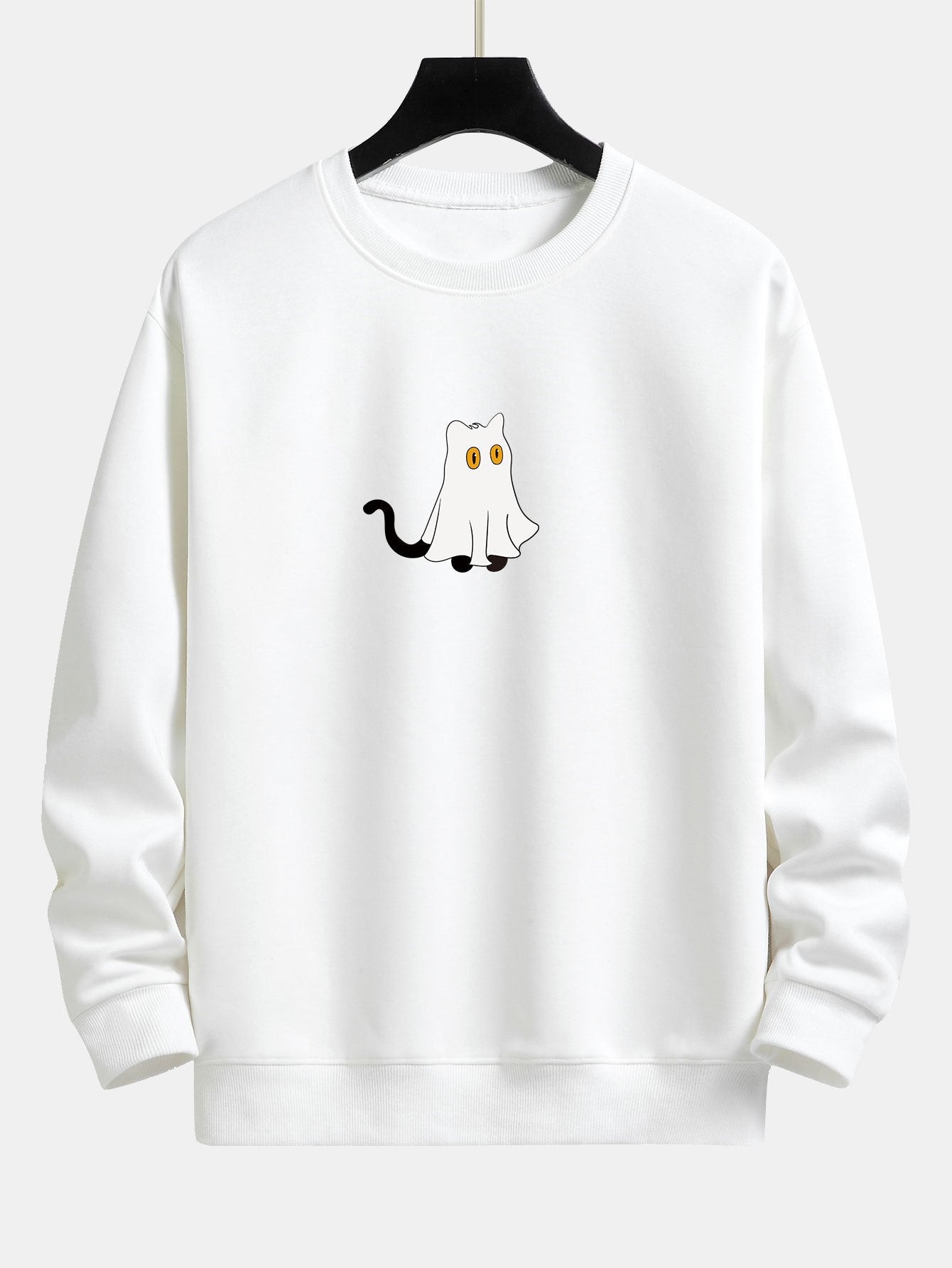 Cat Pretending To Be A Ghost Print Relax Fit Sweatshirt