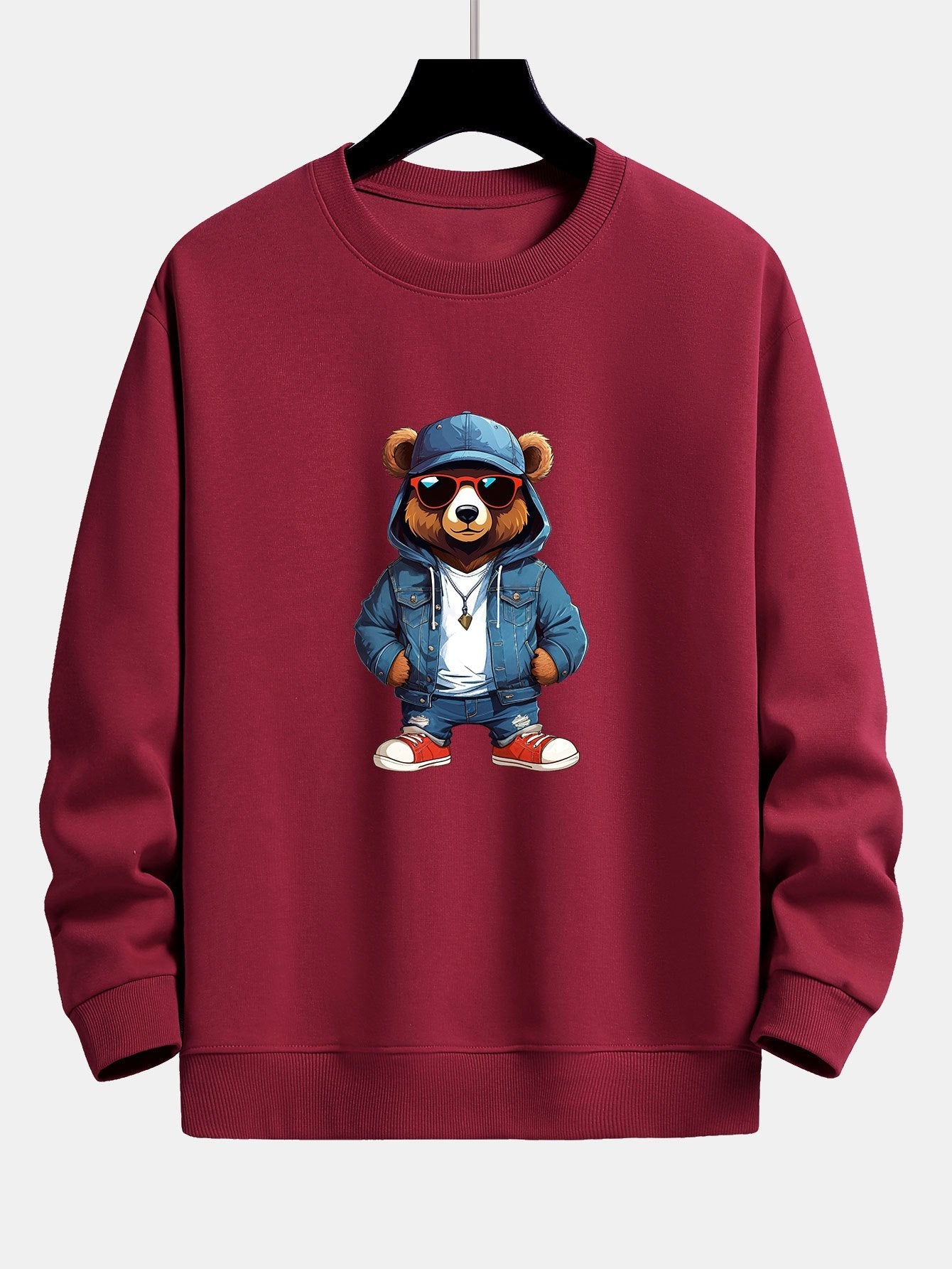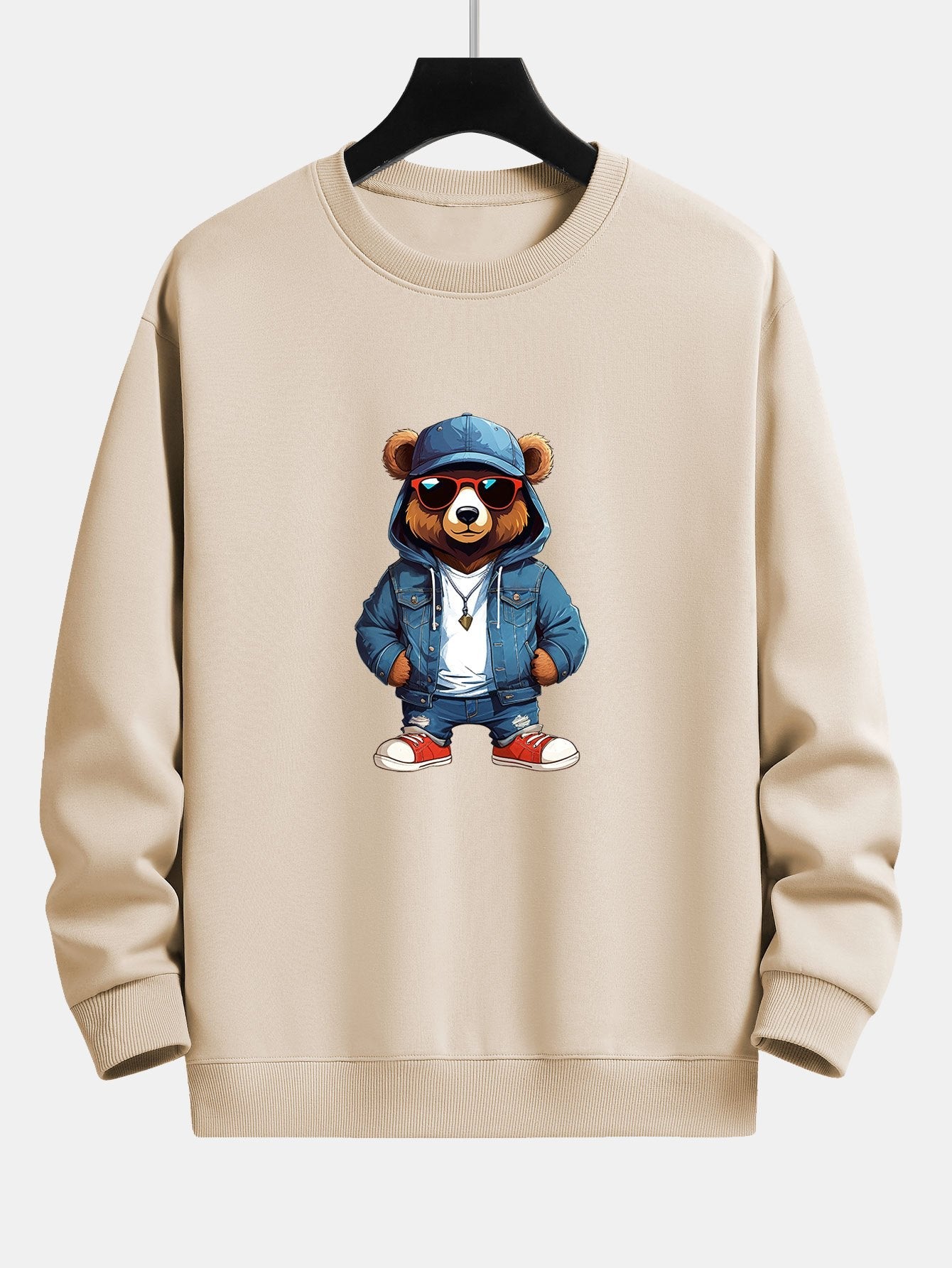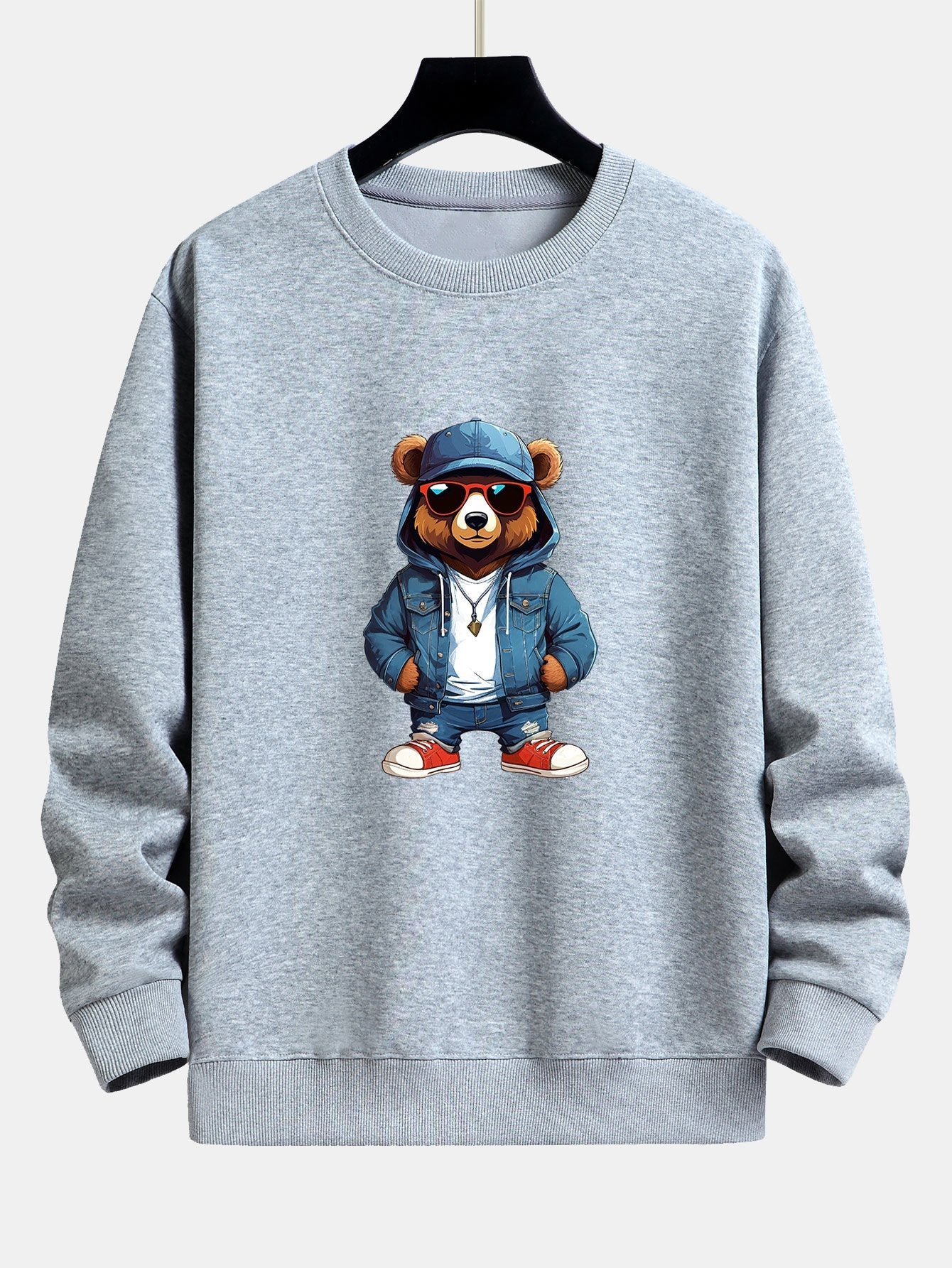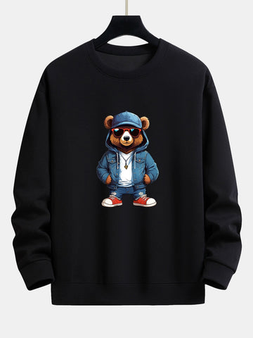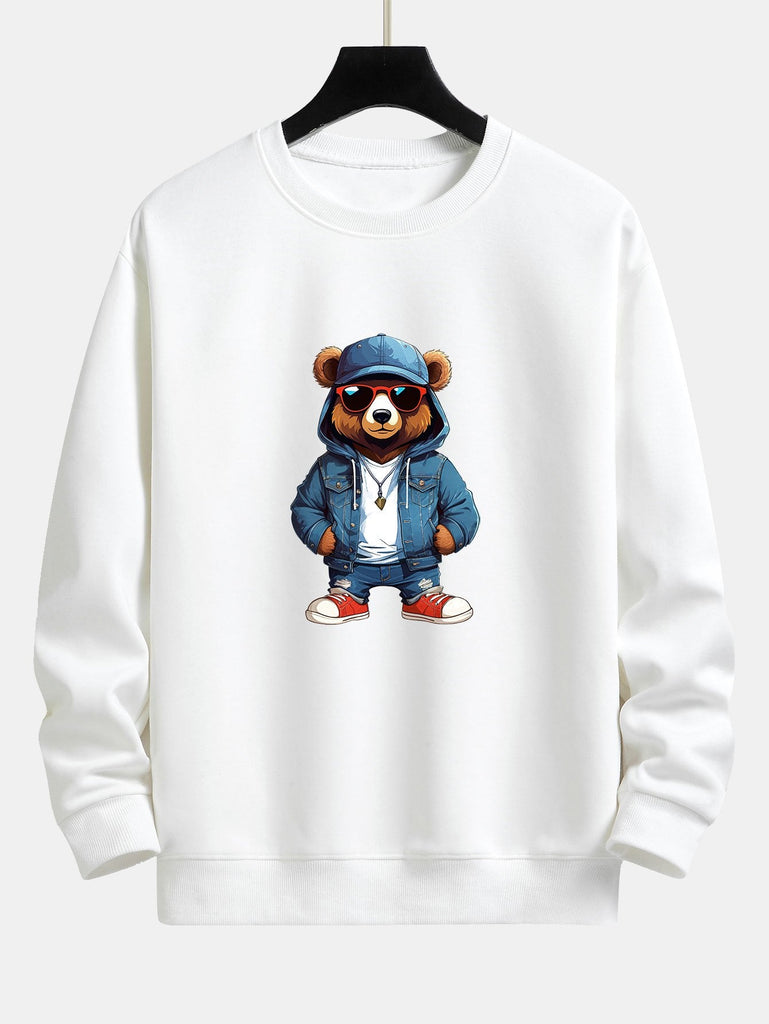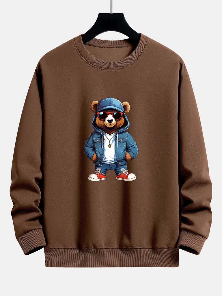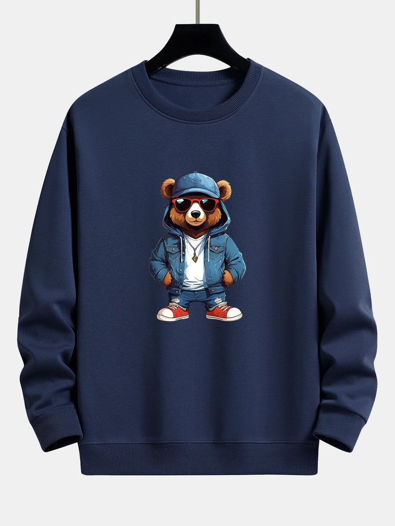 Fashion Sunglasses Bear Print Relax Fit Sweatshirt