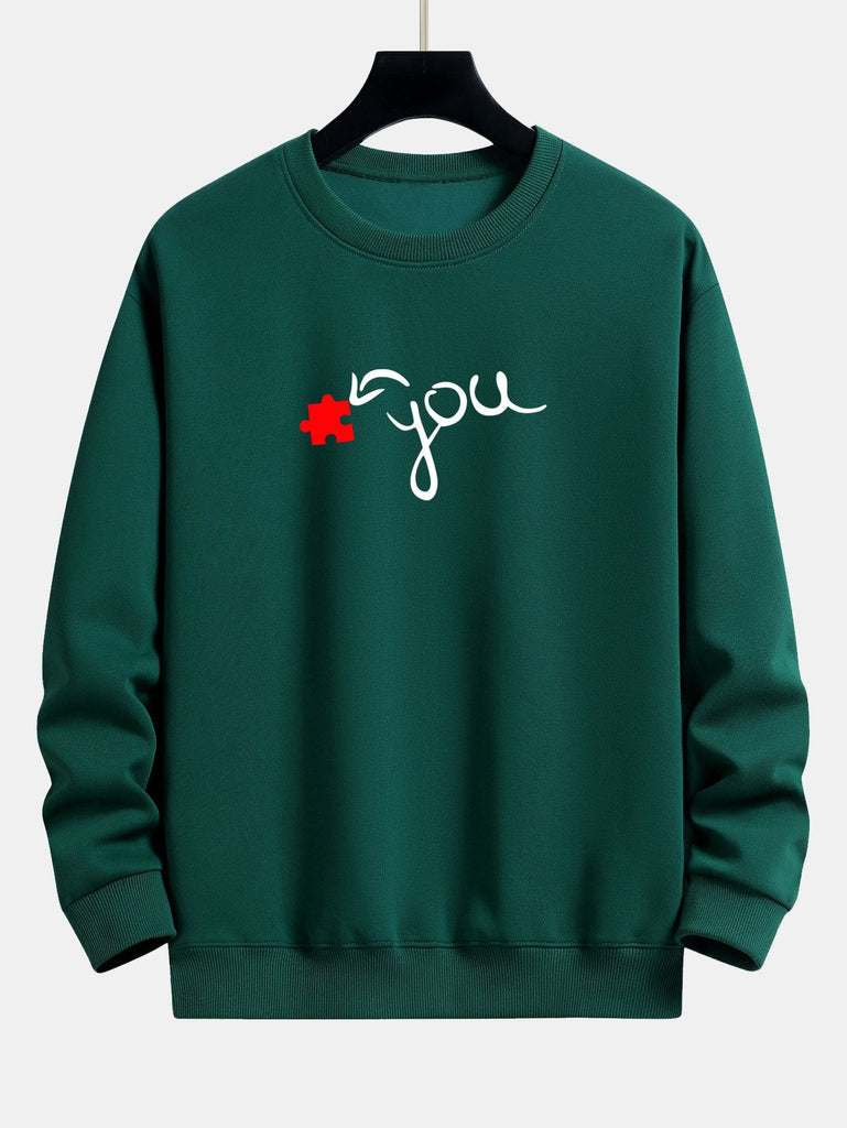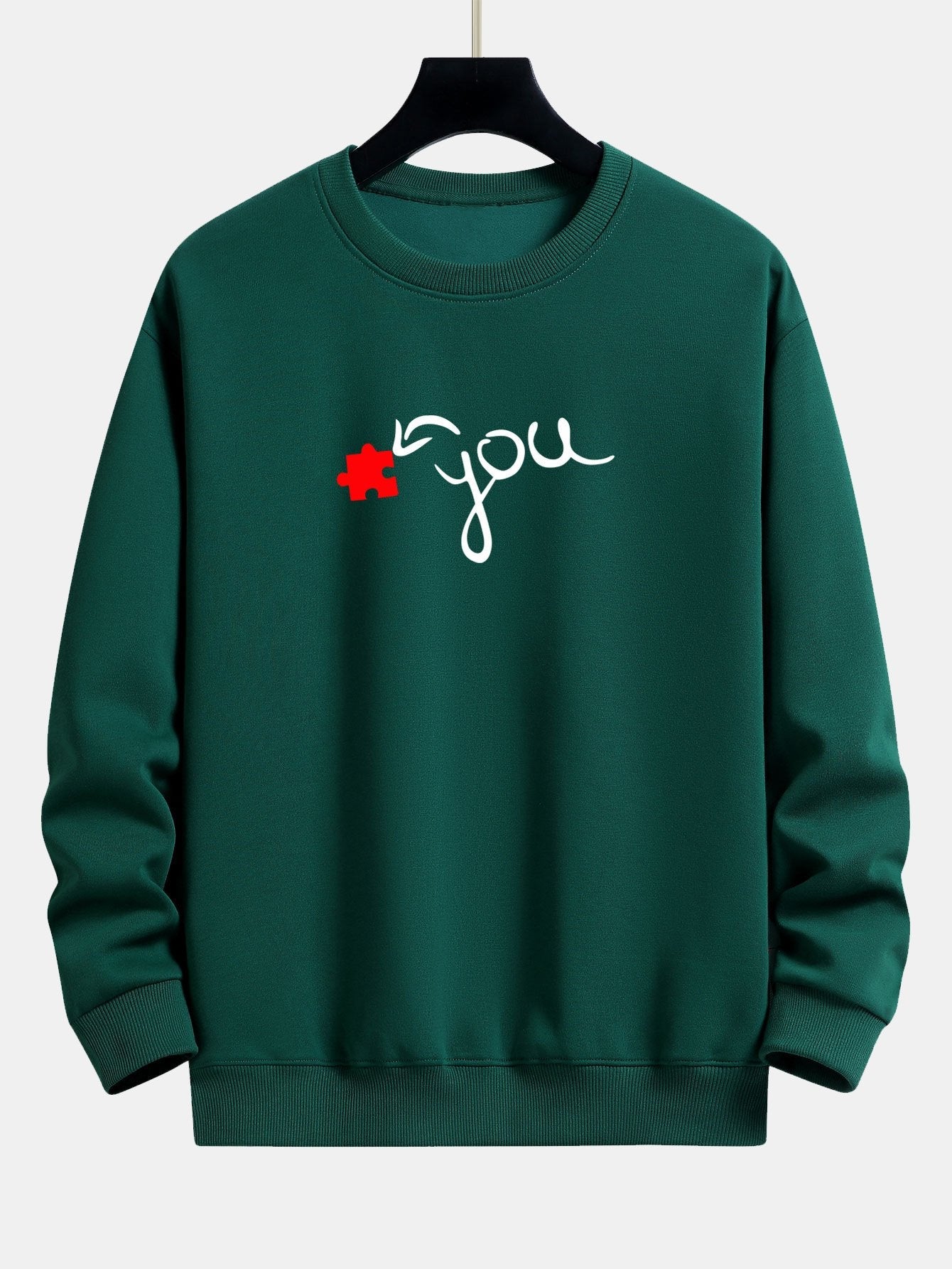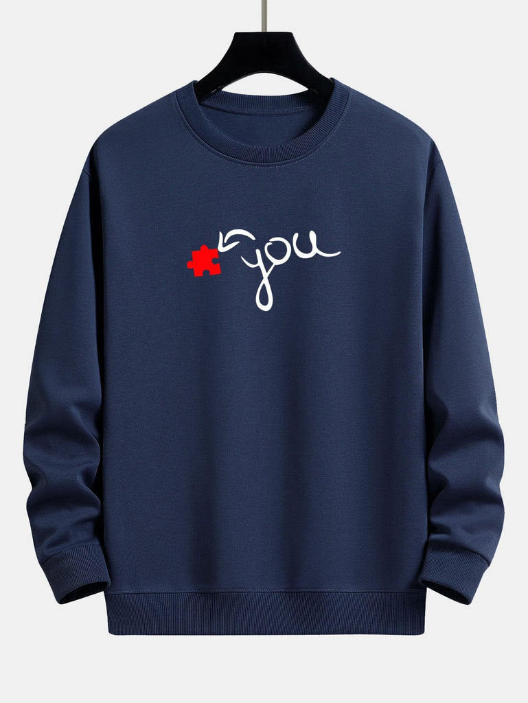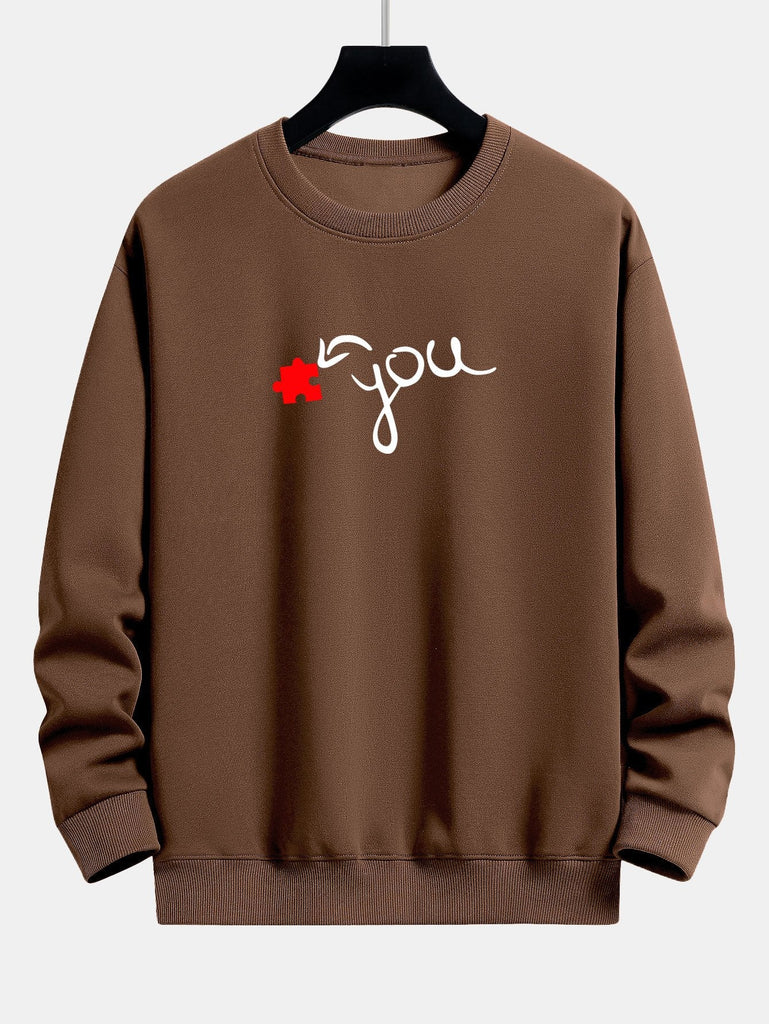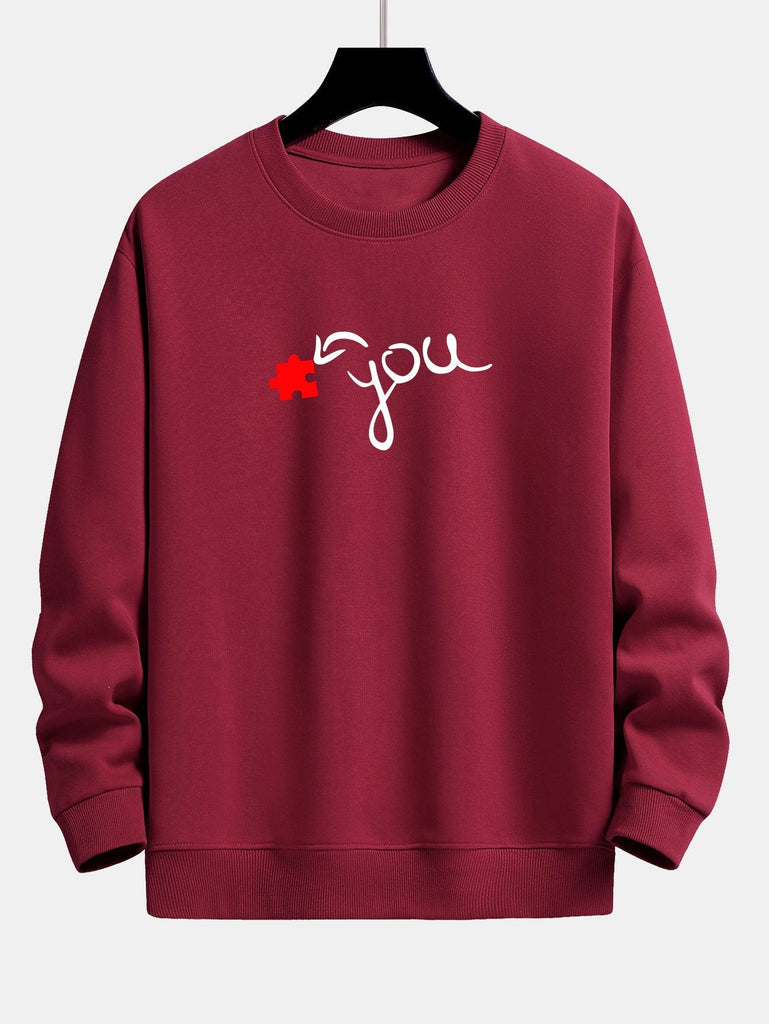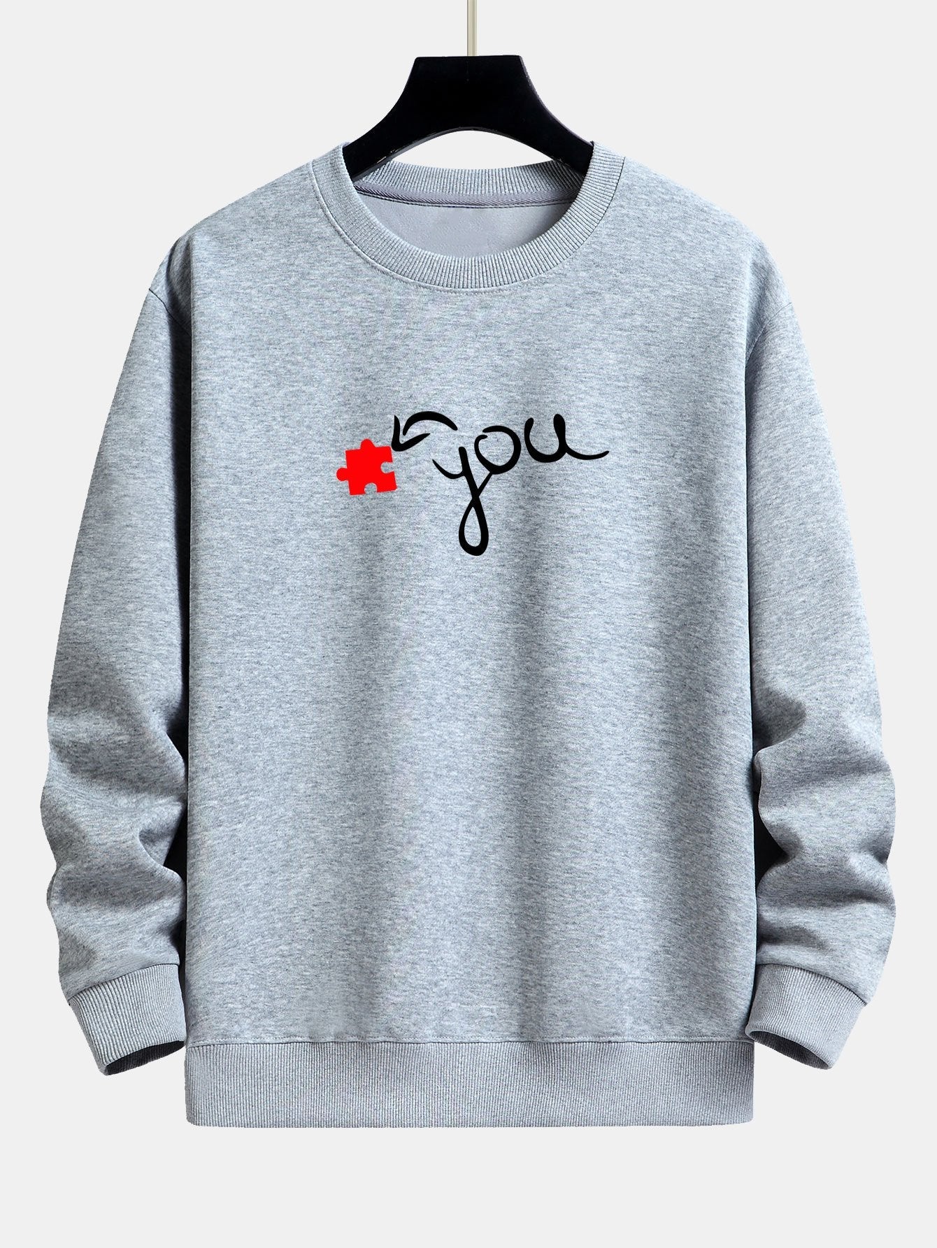 Puzzle Piece Heart Couple Print Relax Fit Sweatshirt