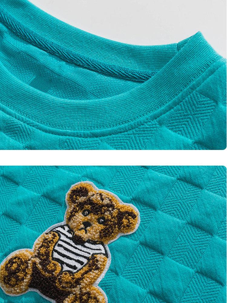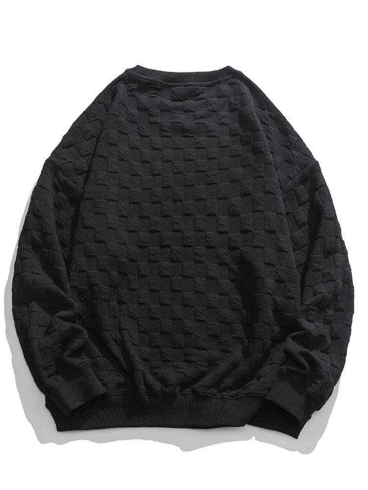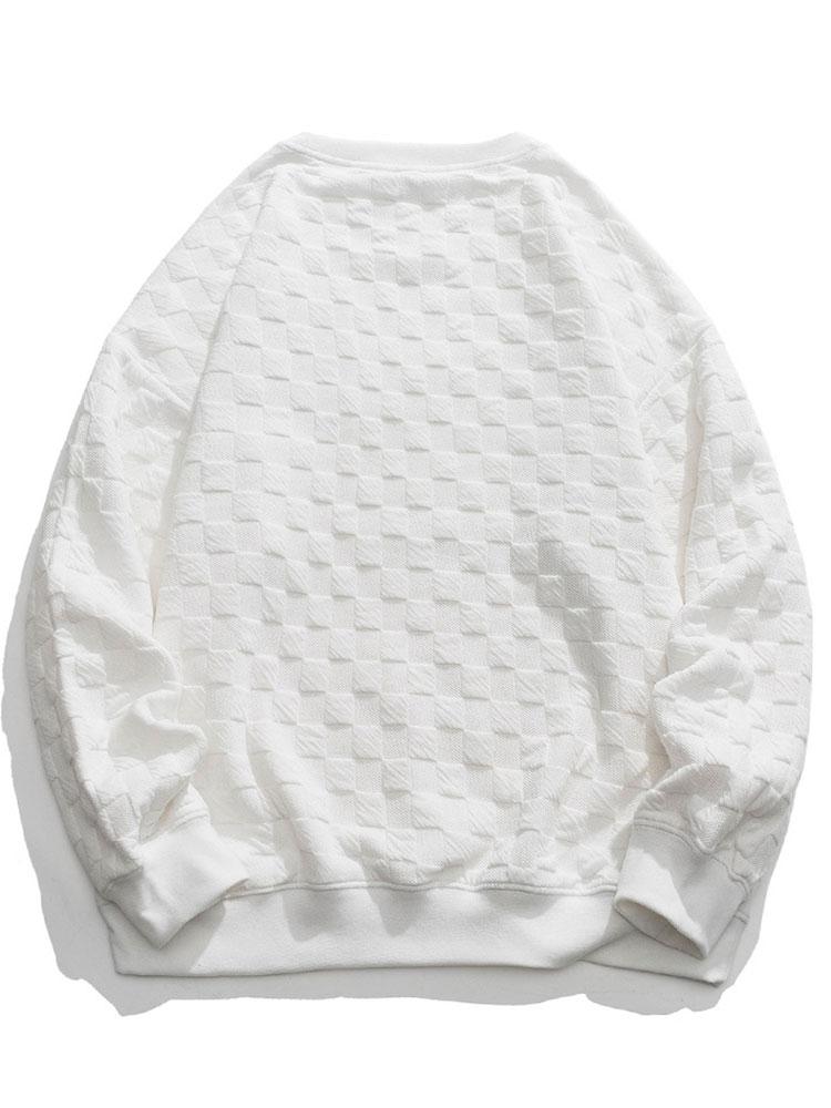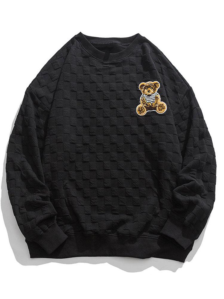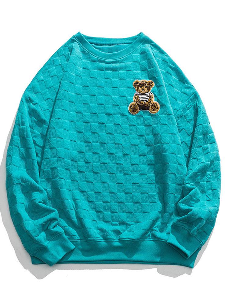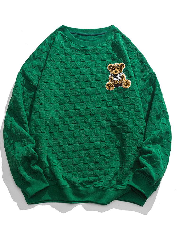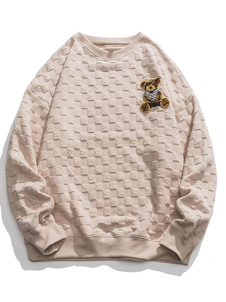Relax Fit Bear Embroidered Patch Checkerboard Jacquard Sweatshirt