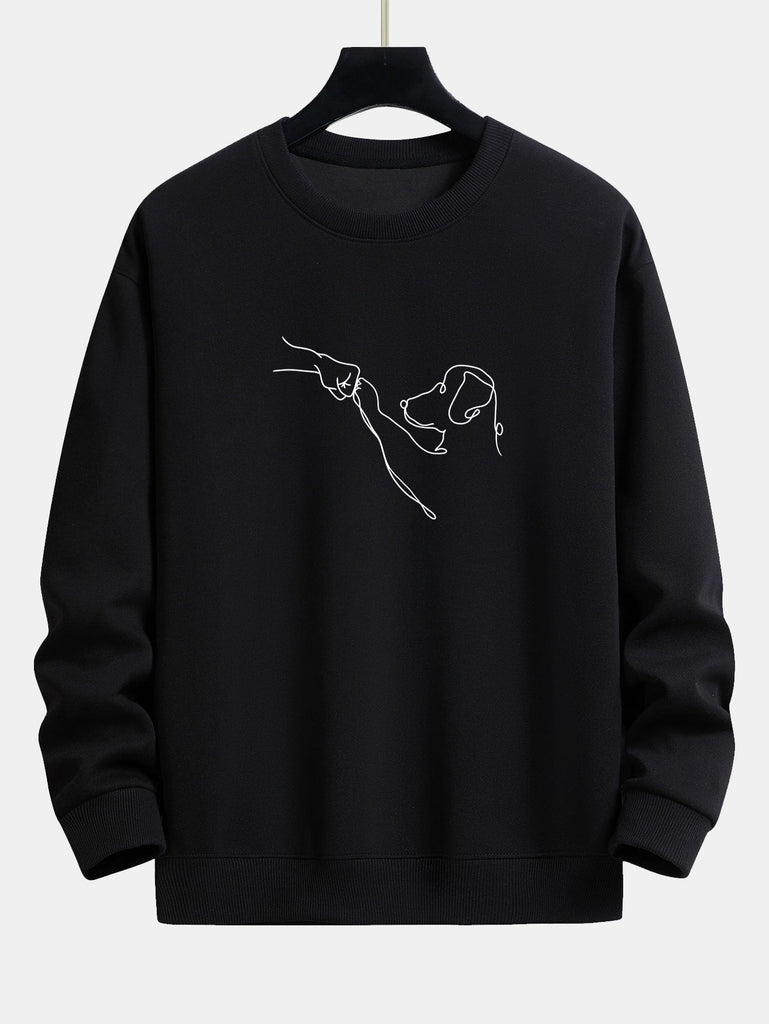 Dog Line Drawing Print Relax Fit Sweatshirt