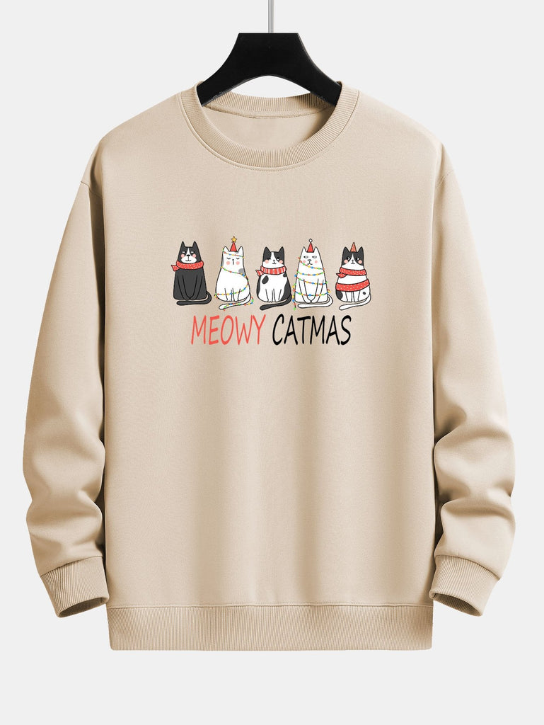 Christmas Cat Friend Print Relax Fit Sweatshirt