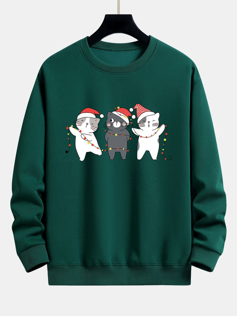Christmas Lights Cats Print Relax Fit Sweatshirt