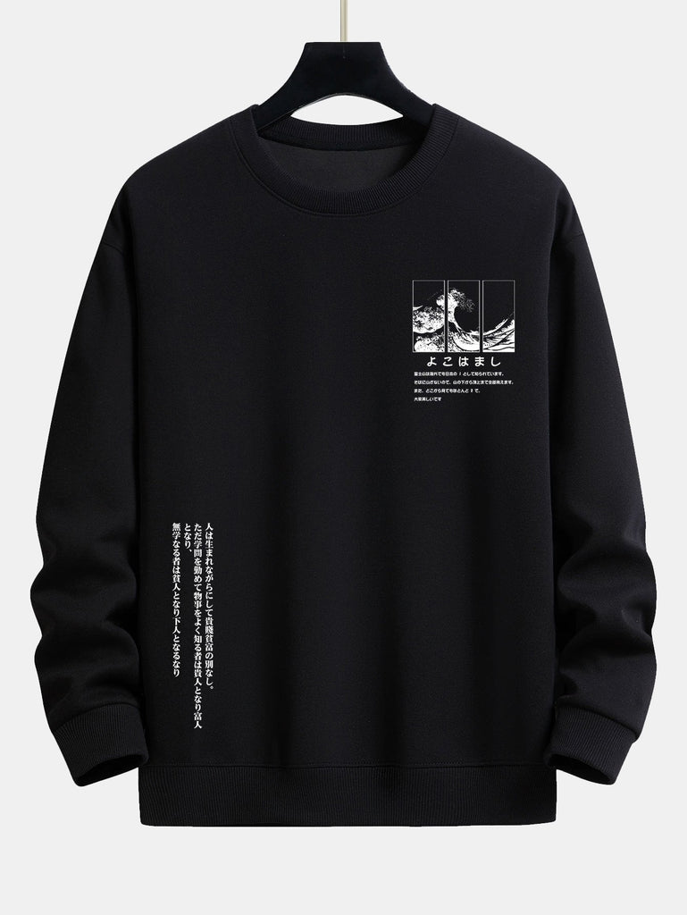 Waves Ukiyo-e Slogan Print Relax Fit Sweatshirt
