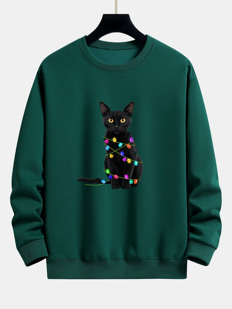Color Lights Black Cat Print Relax Fit Sweatshirt