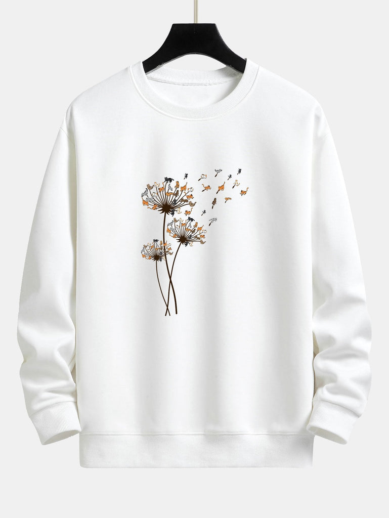 Plum Blossom And Crane Back Print Relax Fit Sweatshirt