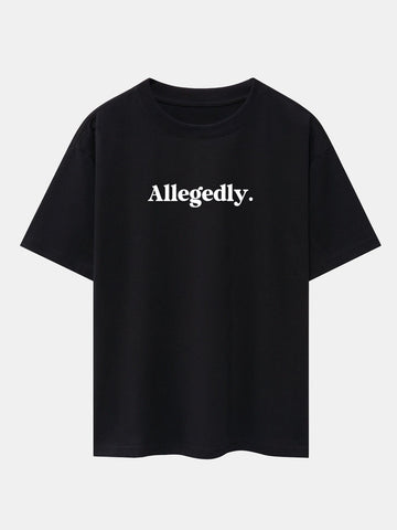 Featuring the simple yet cheeky word ¡°Allegedly¡± in a bold print, this tee brings humor and mystery to your outfit. The oversized fit and drop shoulder cut add a laid-back streetwear edge that¡¯s both comfortable and on trend.
