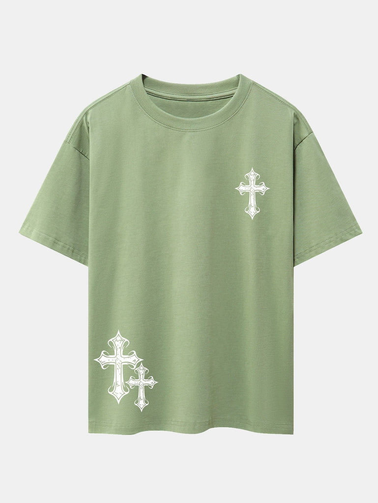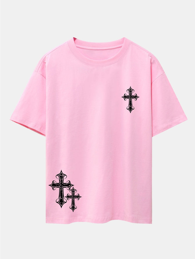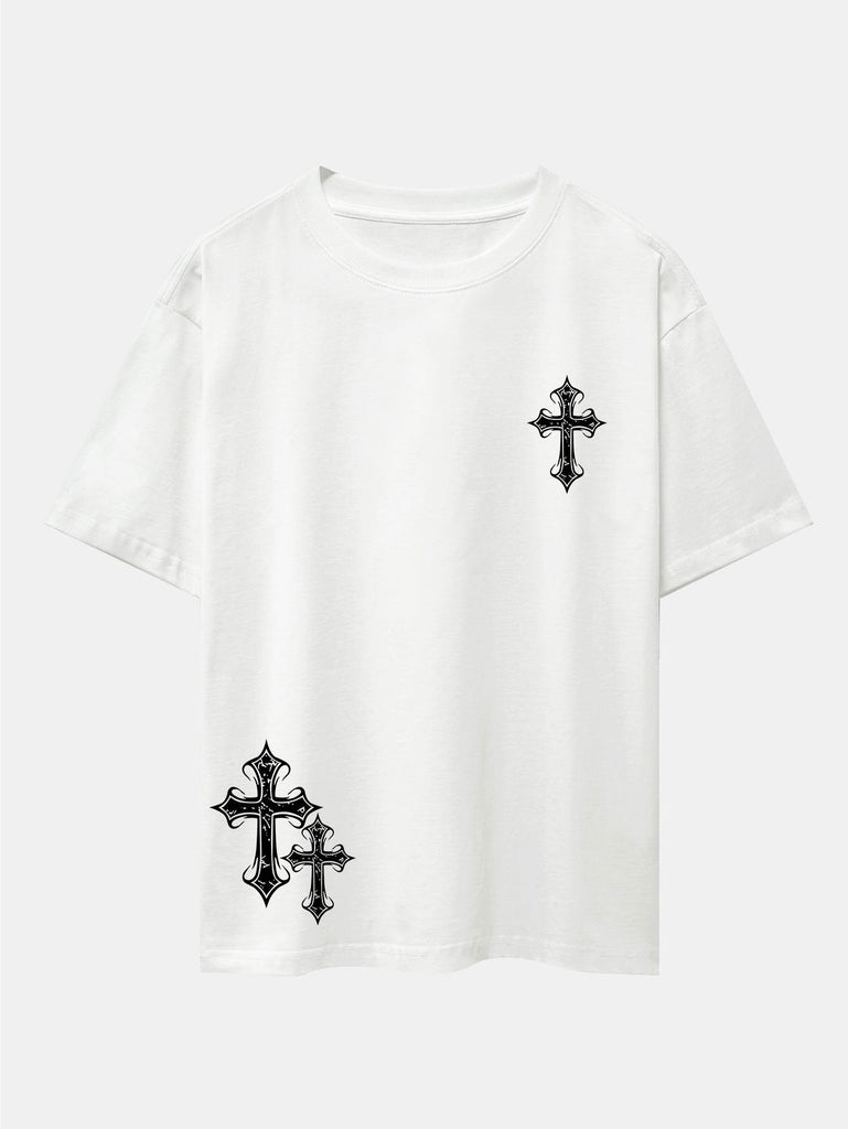 Cross Print Drop Shoulder Oversize T-Shirt