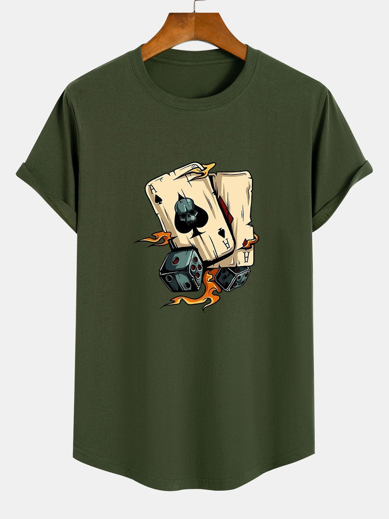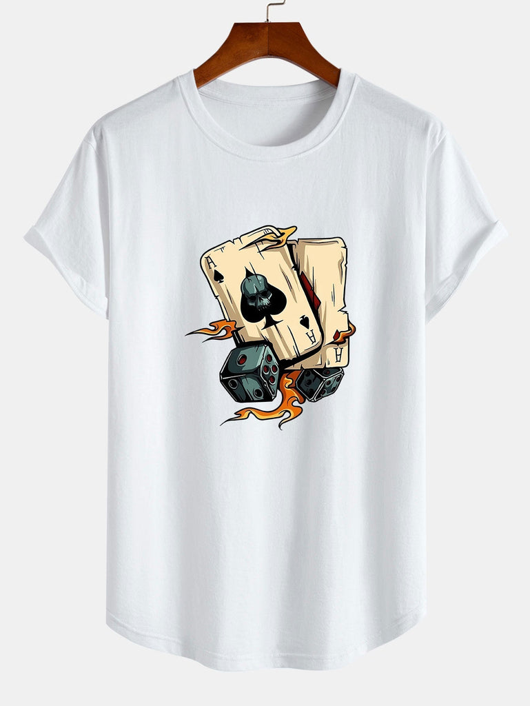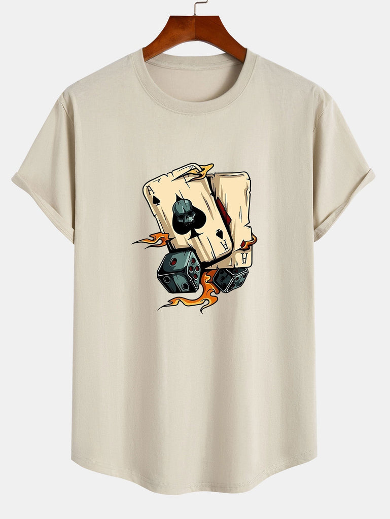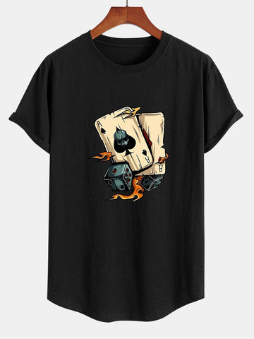 Dice Playing Cards Print Cotton Arc Hem T-Shirt