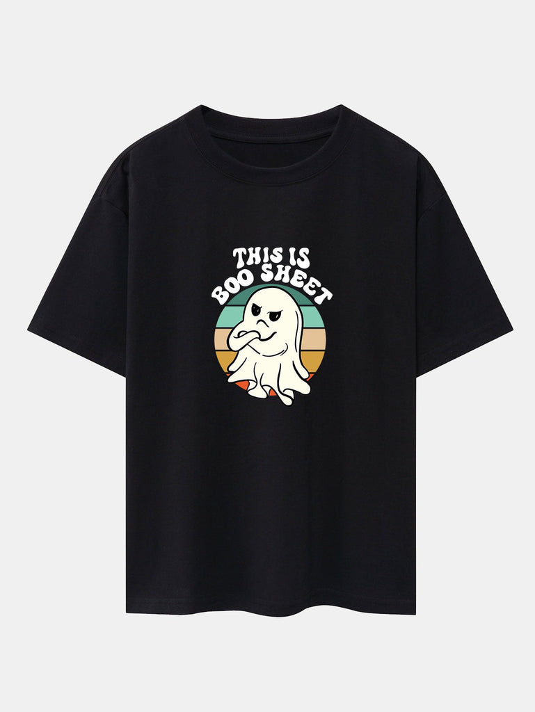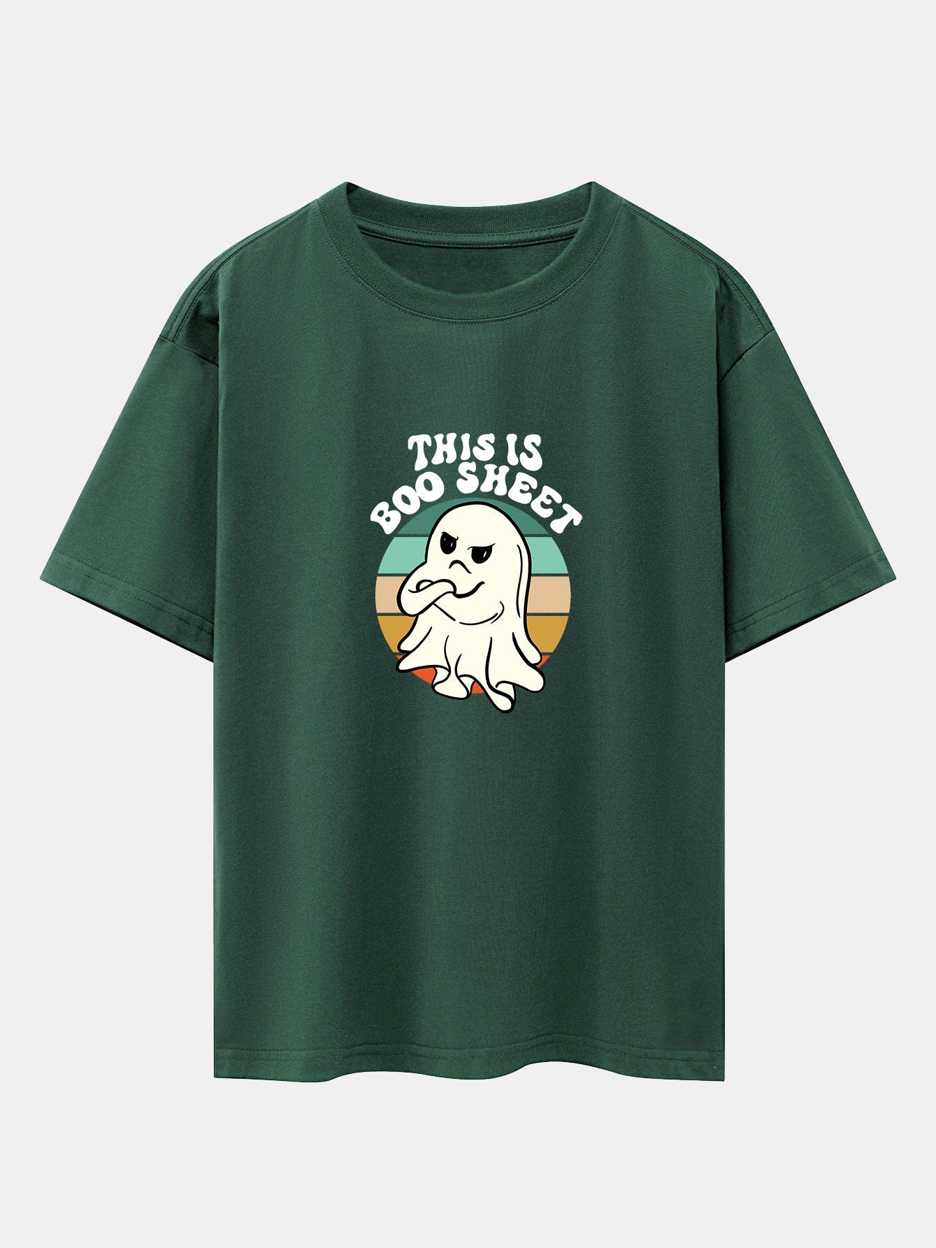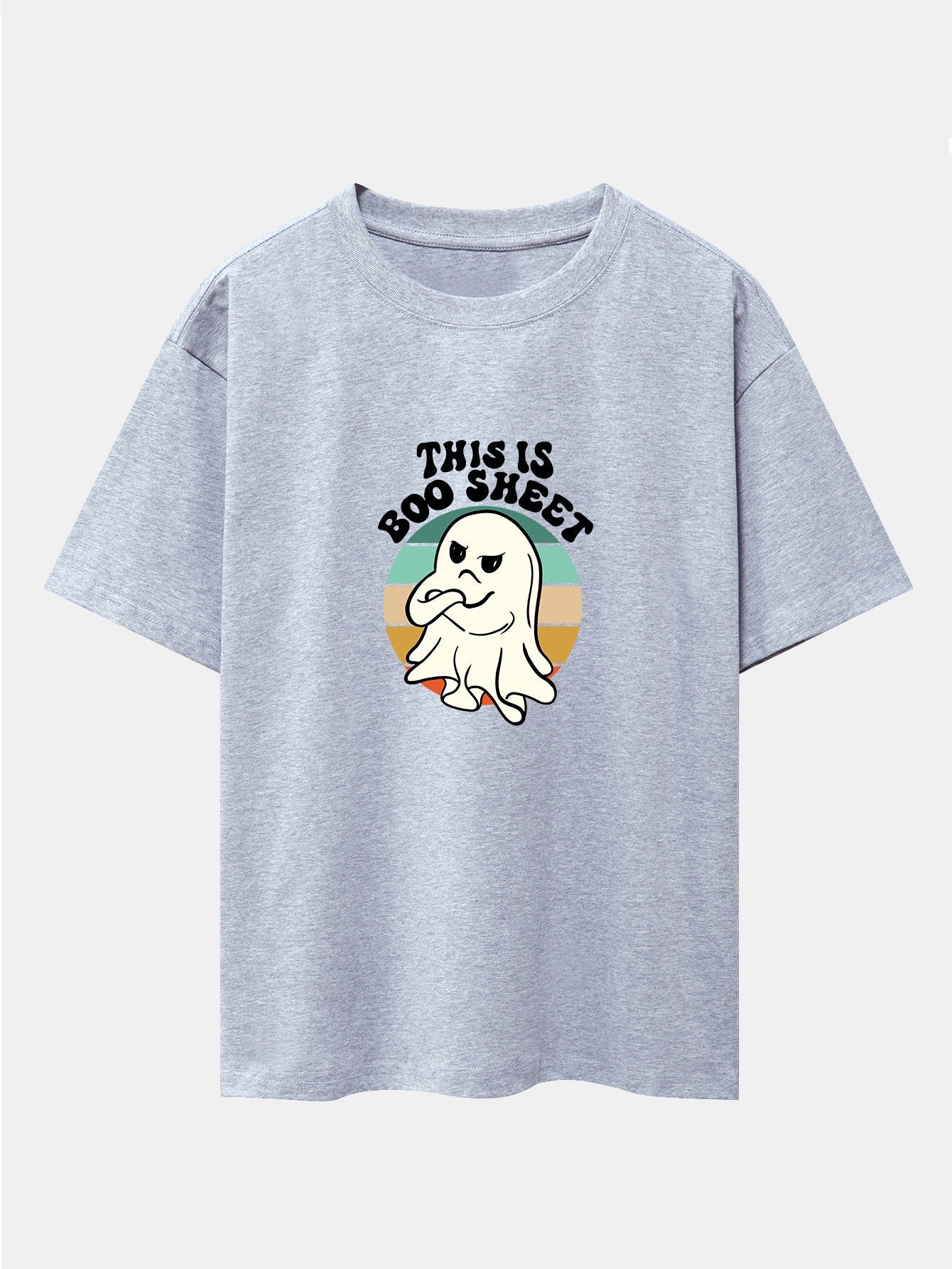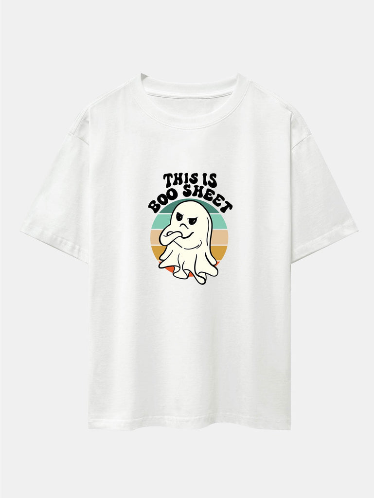 Ghost Slogan Print Drop Shoulder Oversize T-Shirt