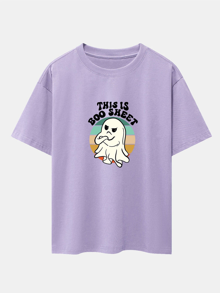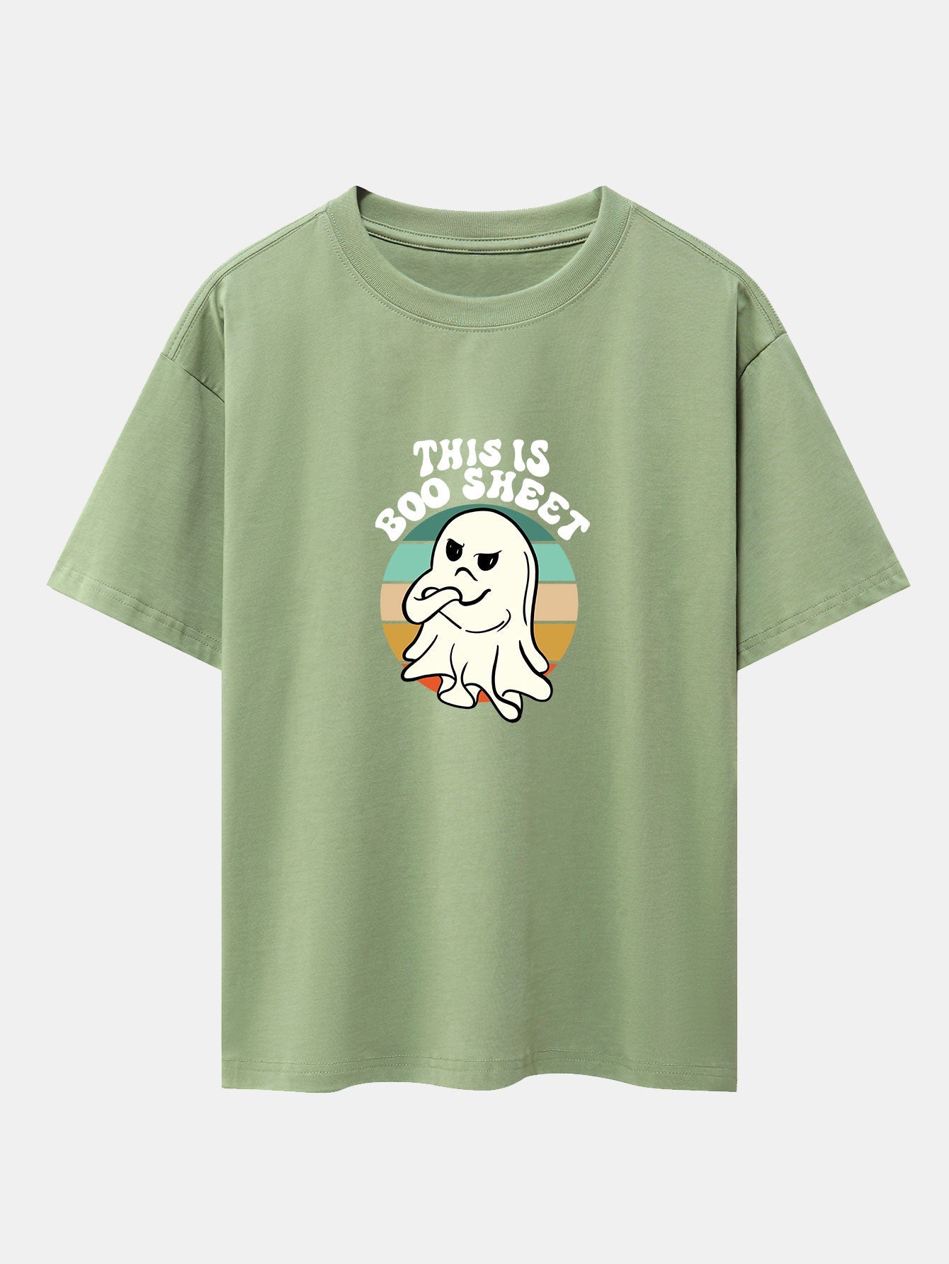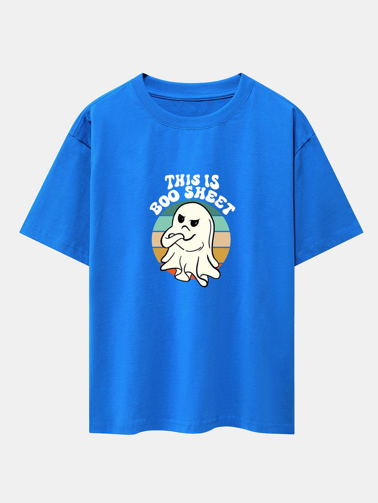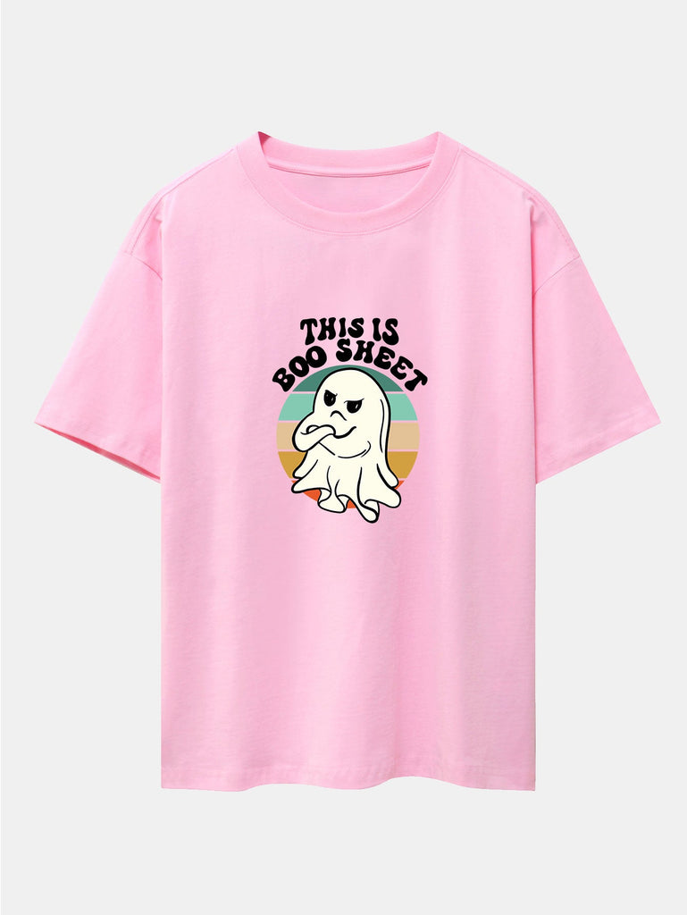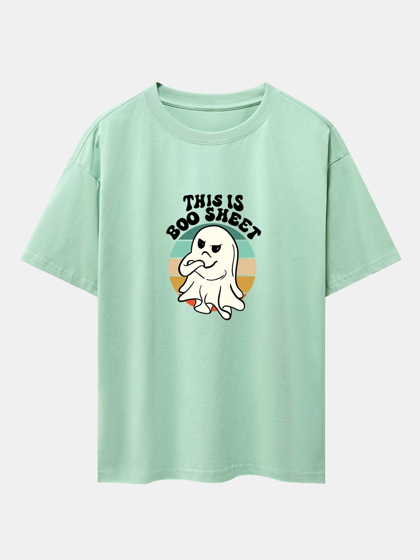 Ghost Slogan Print Drop Shoulder Oversize T-Shirt