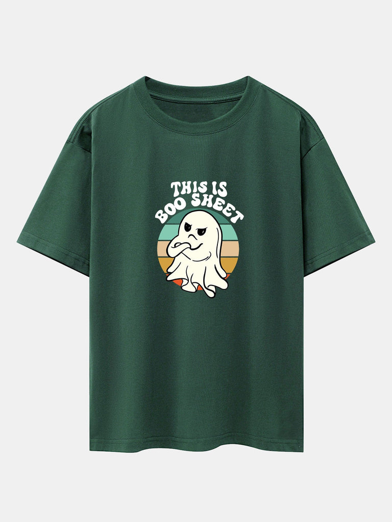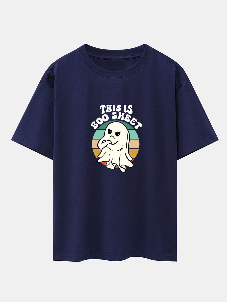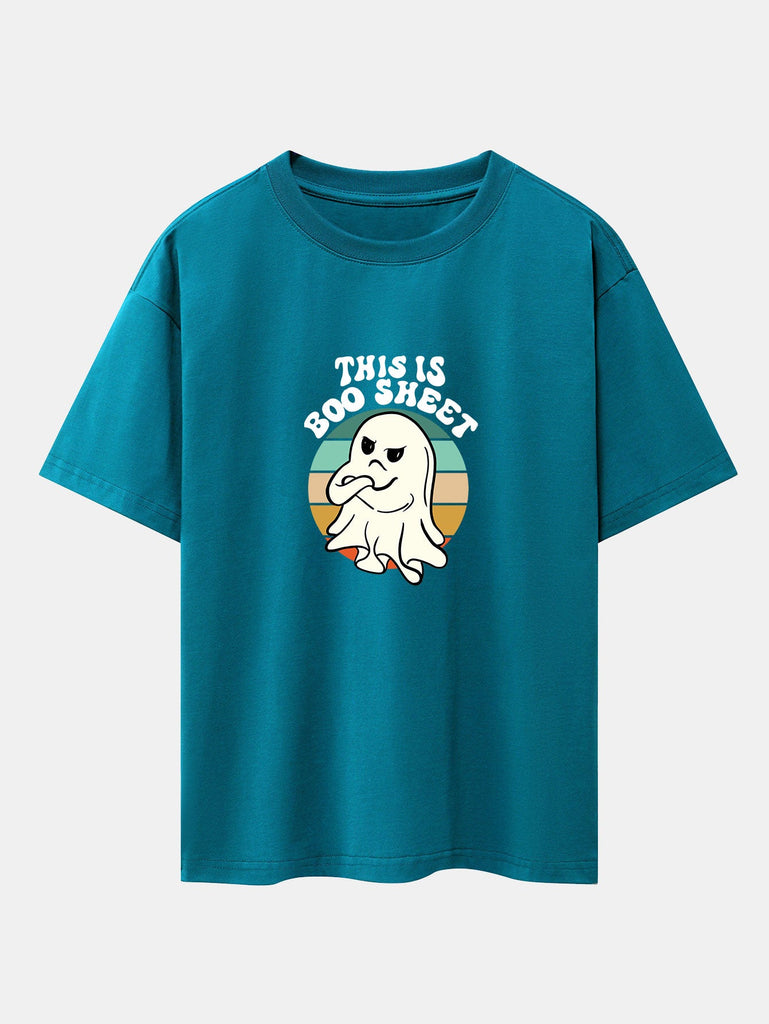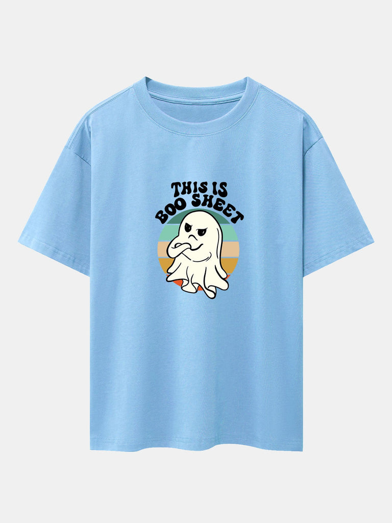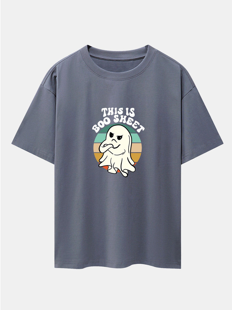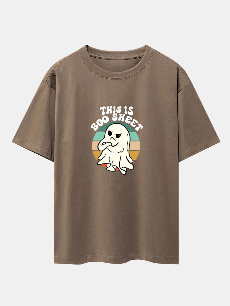 Ghost Slogan Print Drop Shoulder Oversize T-Shirt