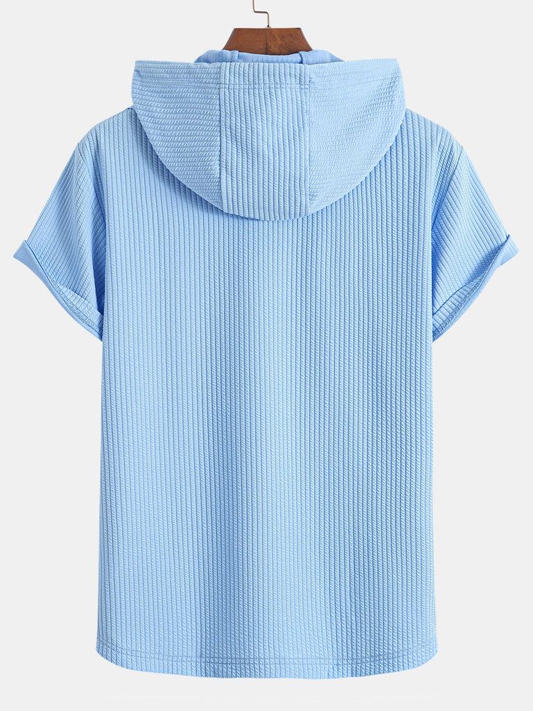 Kangaroo Pocket Ribbed Hooded T-Shirt