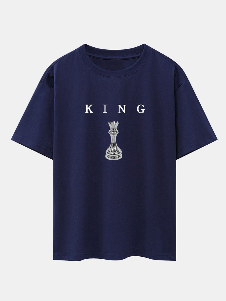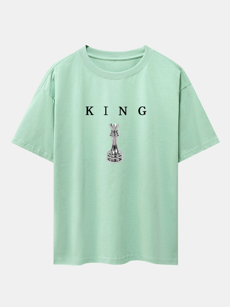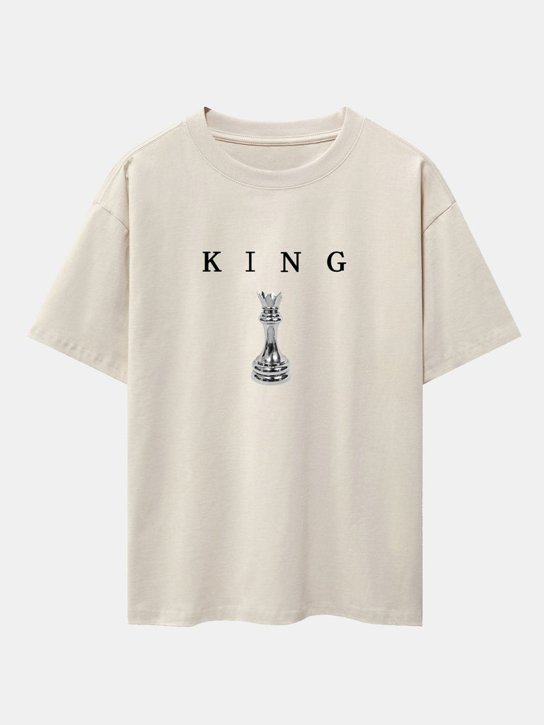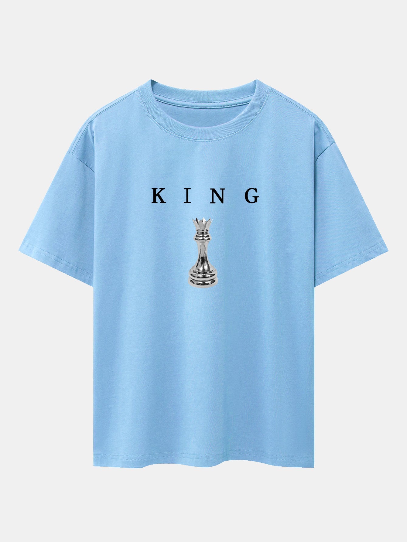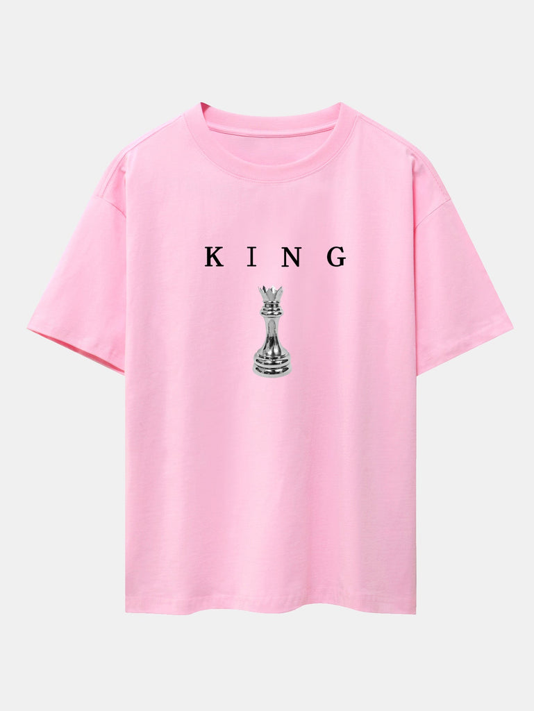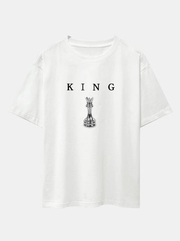 King Chess Print Drop Shoulder Oversize T-Shirt
