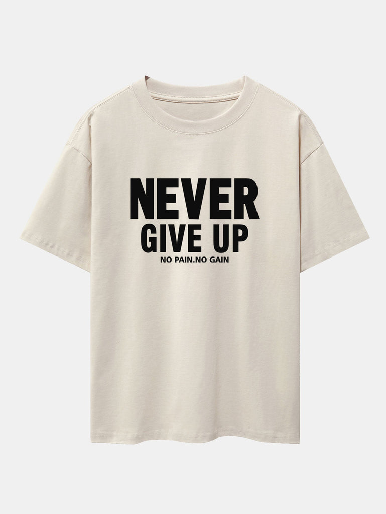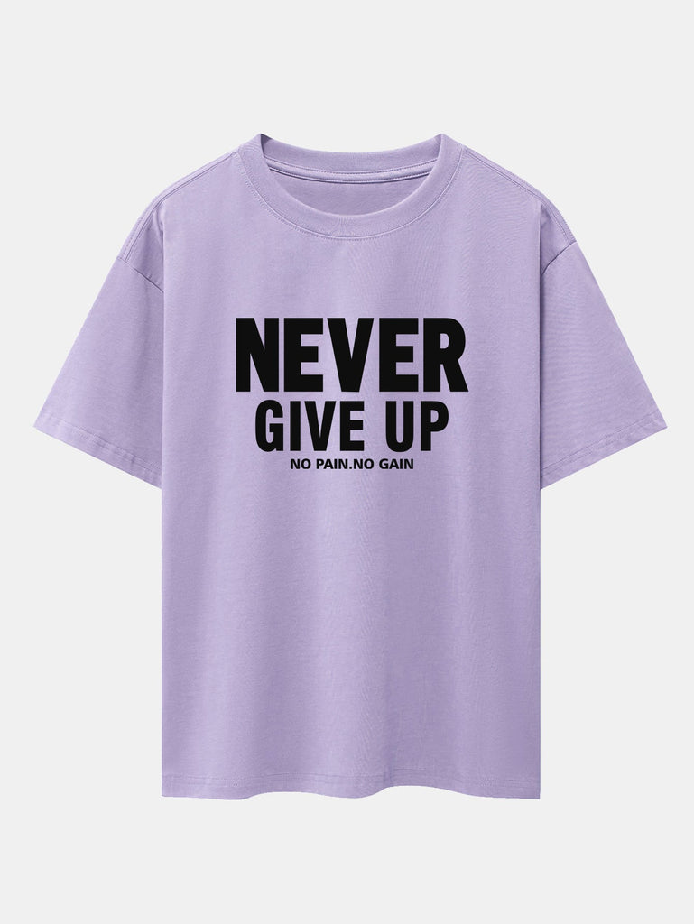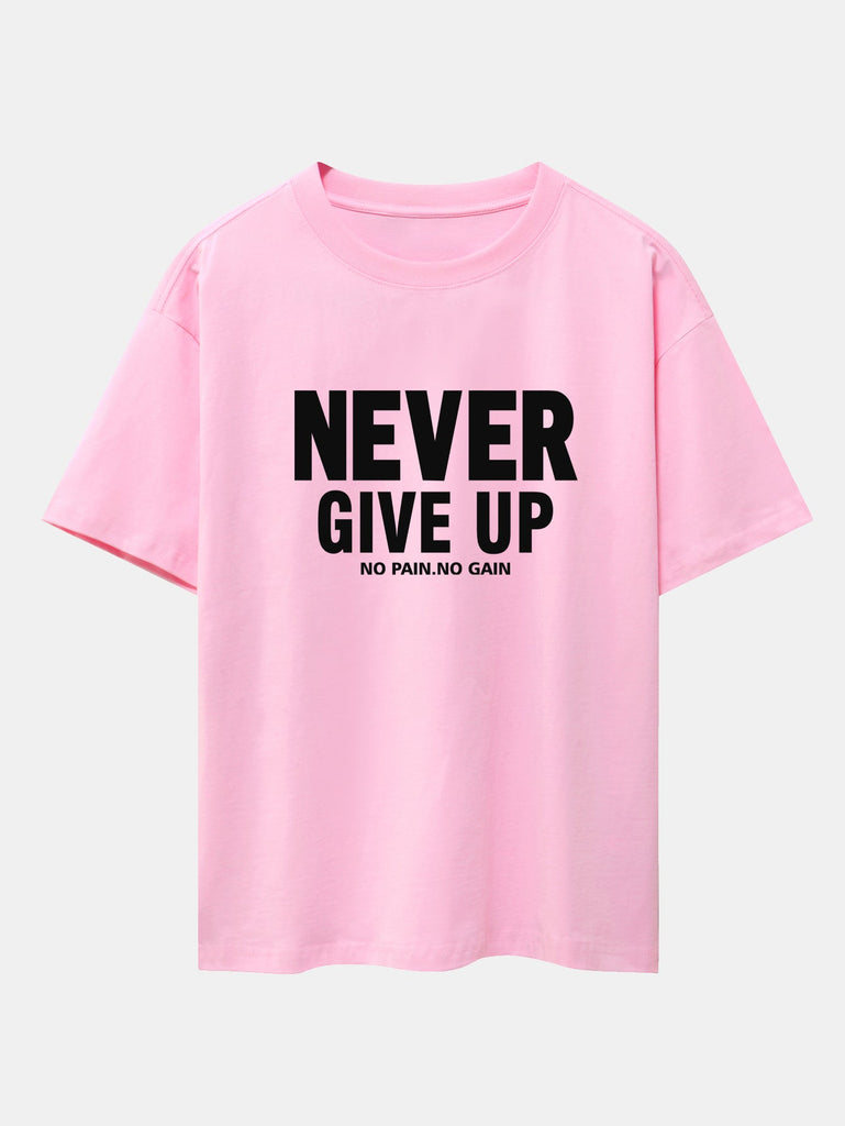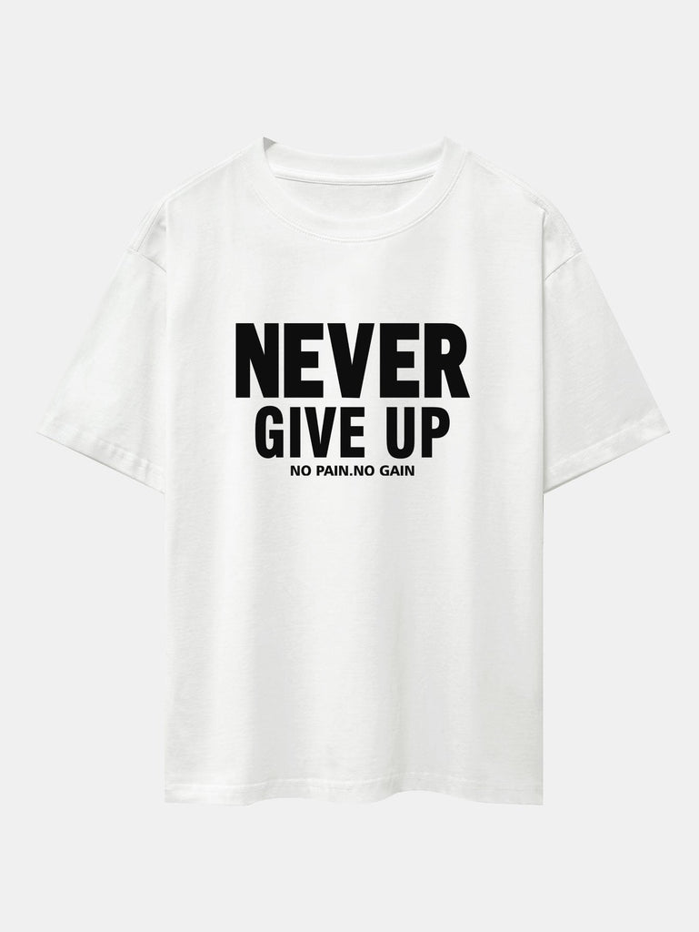 Never Give Up Print Drop Shoulder Oversize T-Shirt