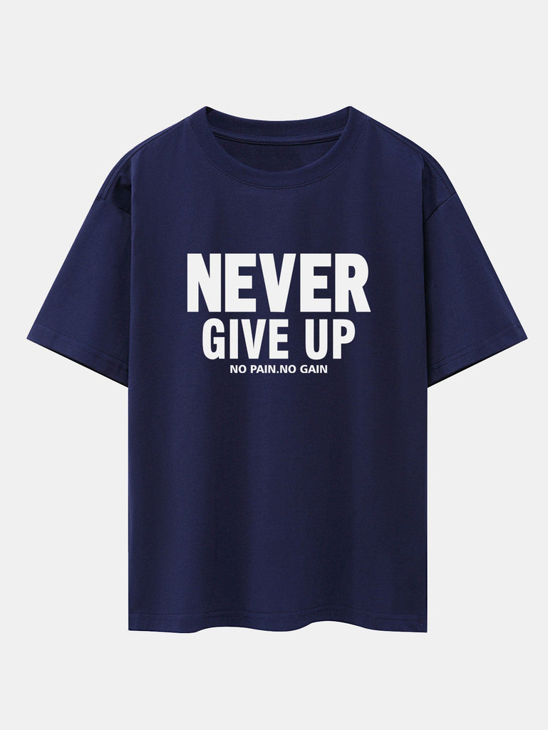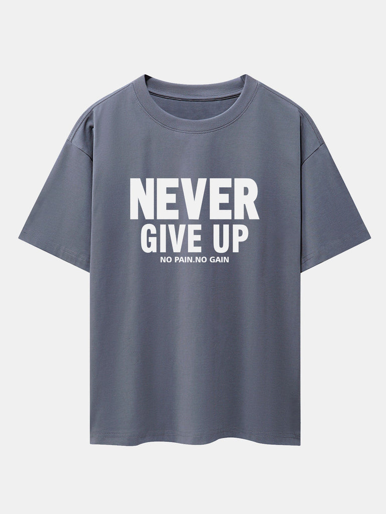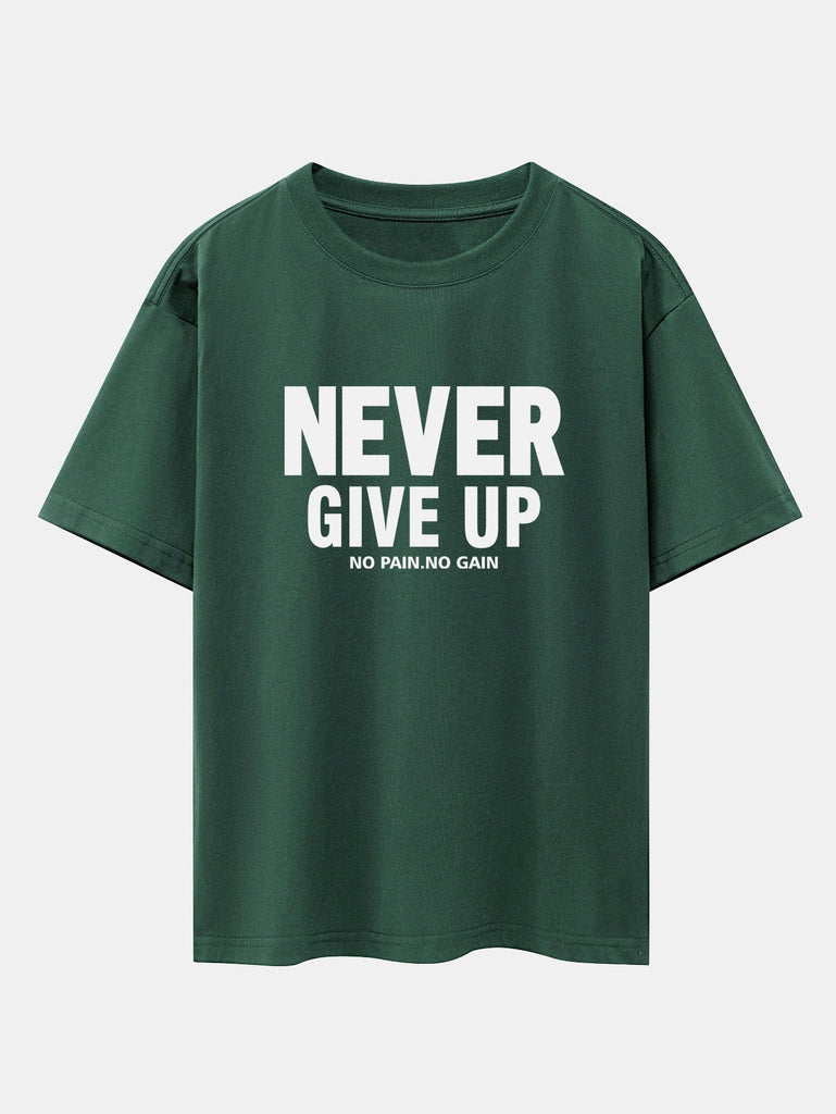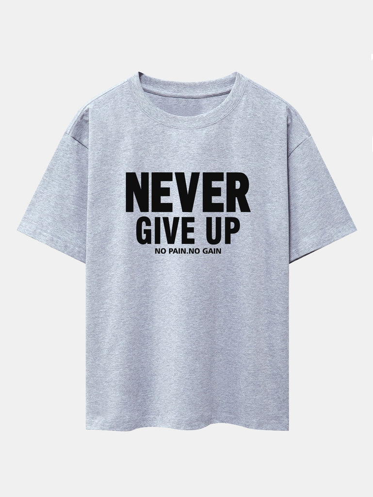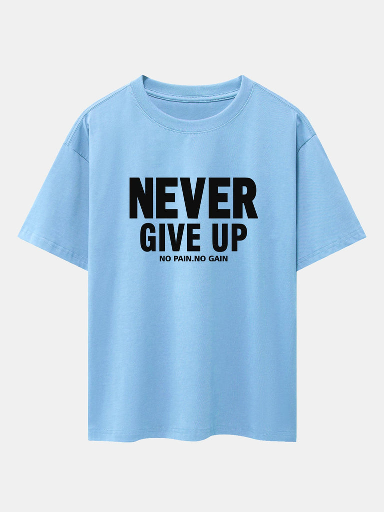 Never Give Up Print Drop Shoulder Oversize T-Shirt