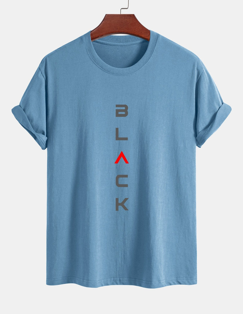 Regular Fit Black Print Cotton T-Shirt