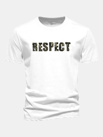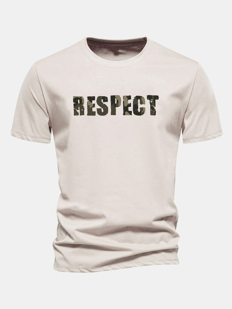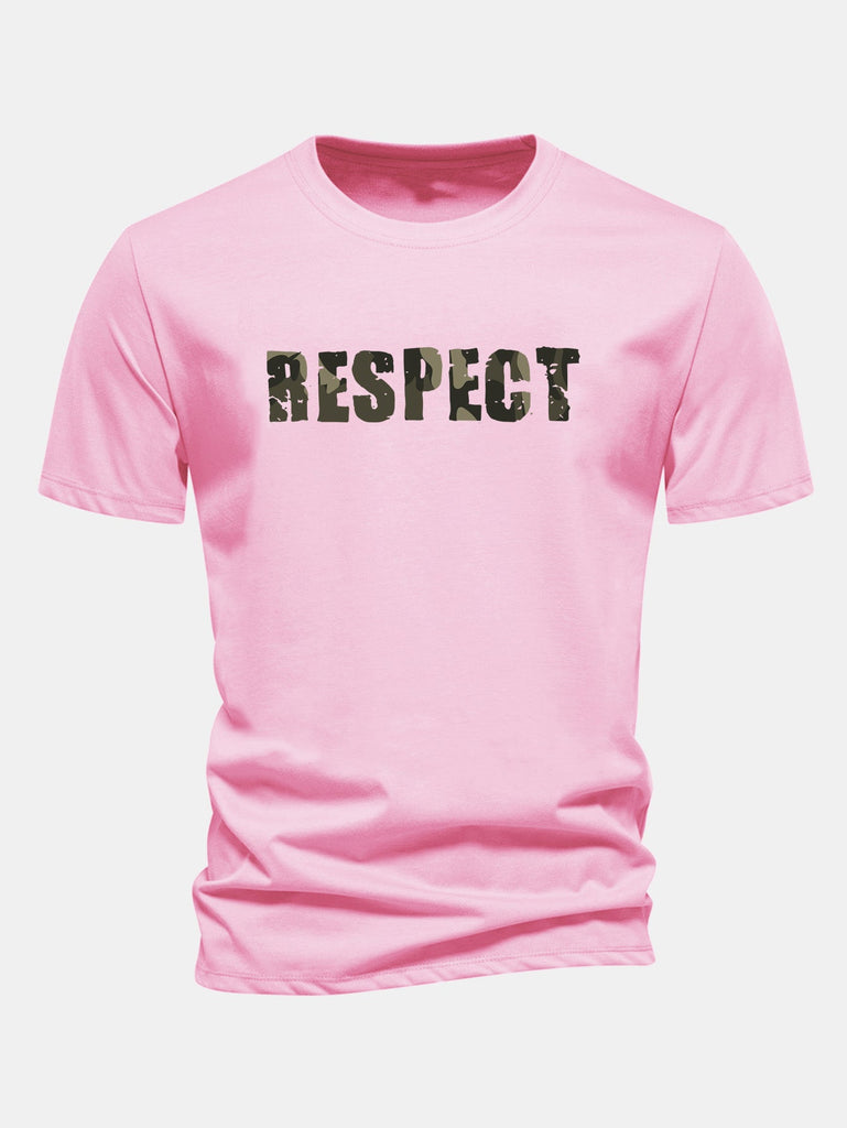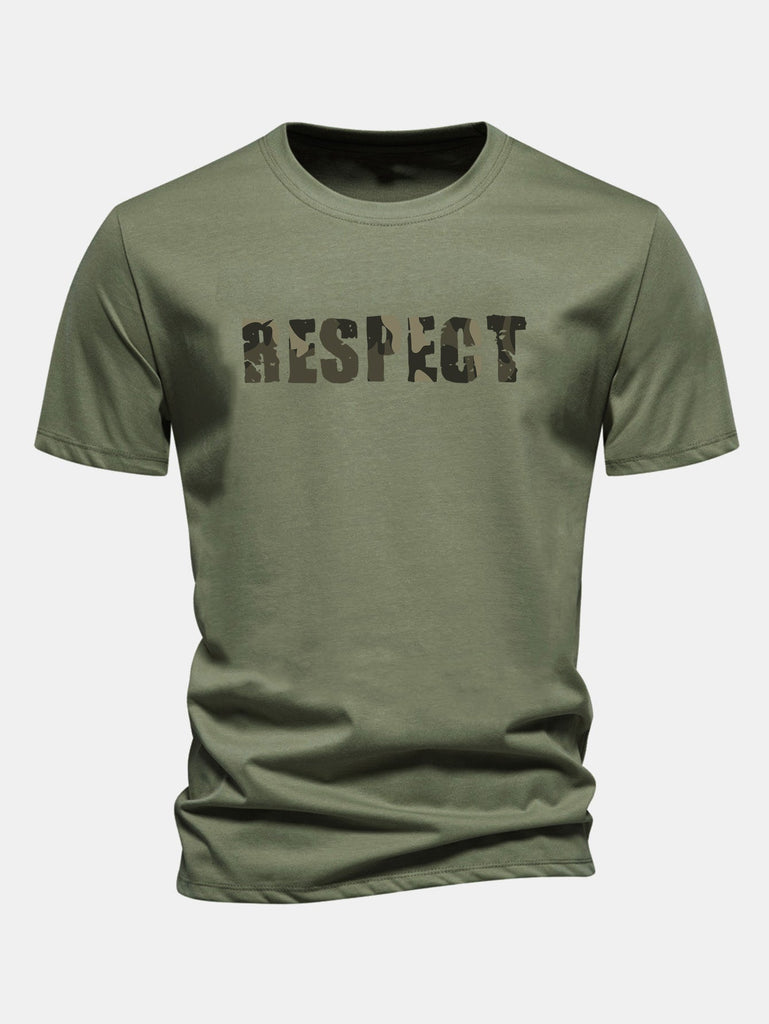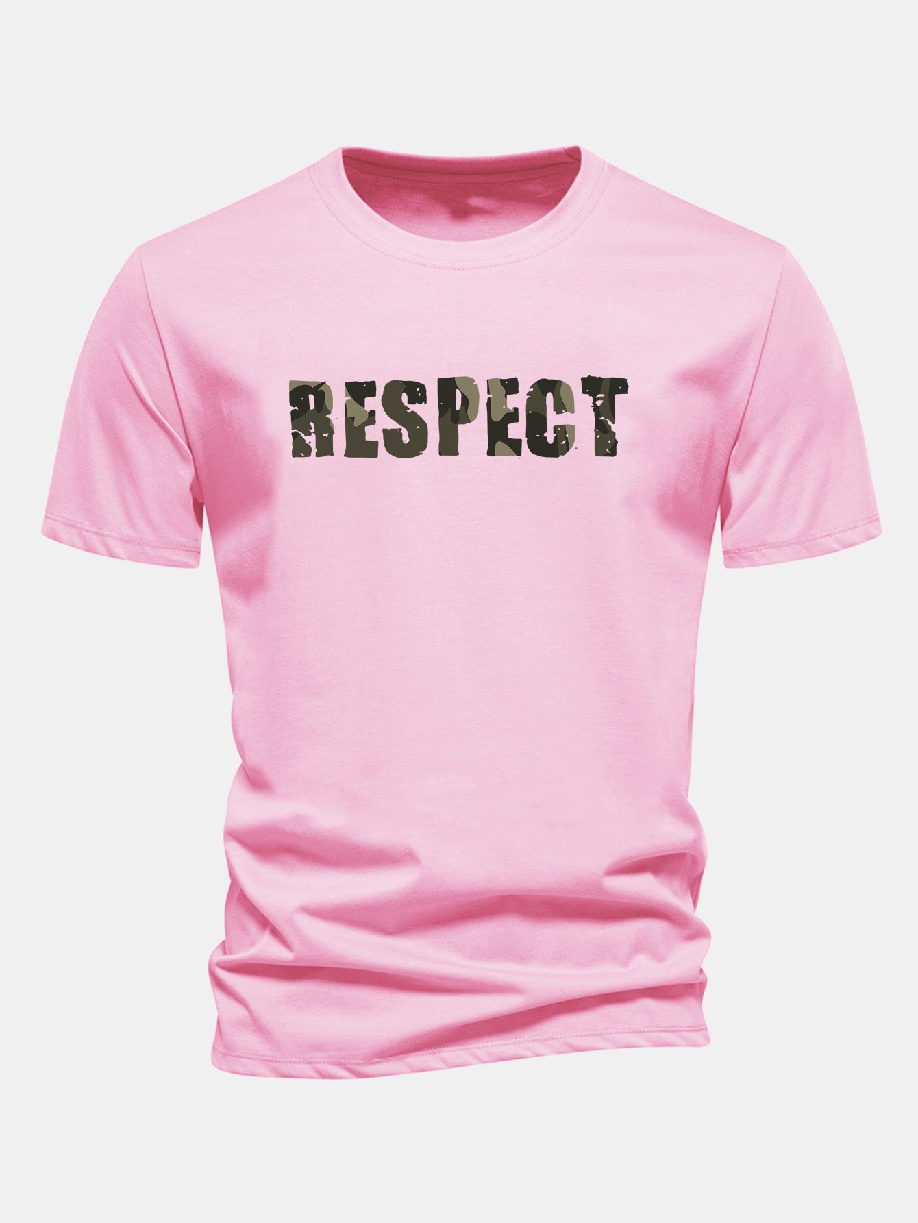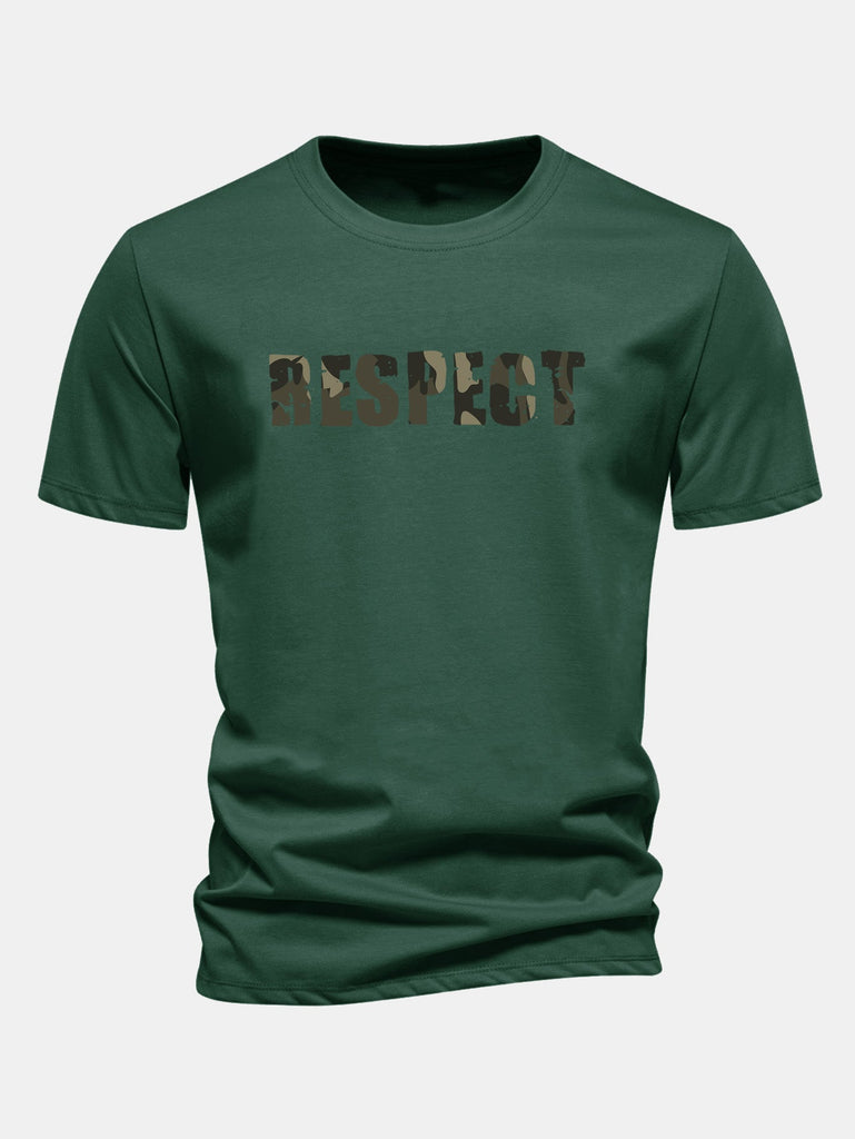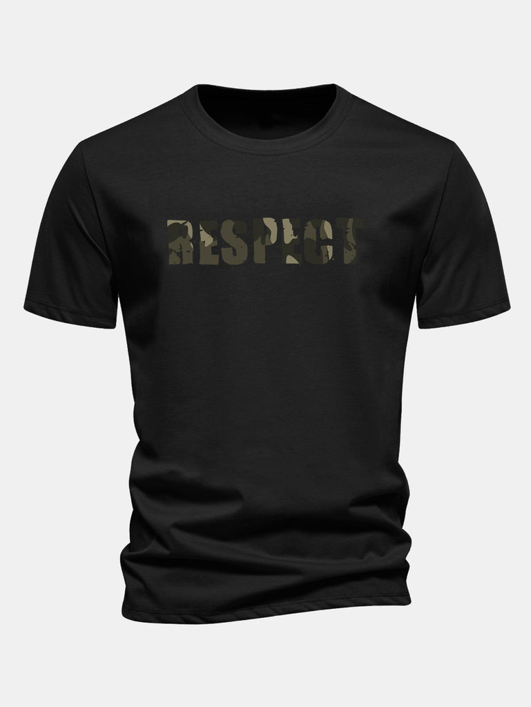 Stand out with purpose in this regular fit camouflage "Respect" print T-shirt. Made from soft, breathable cotton, it combines military-inspired style with a powerful message. The camouflage pattern gives it a rugged, street-ready edge, while the bold ¡°Respect¡± print speaks volumes without saying a word.
