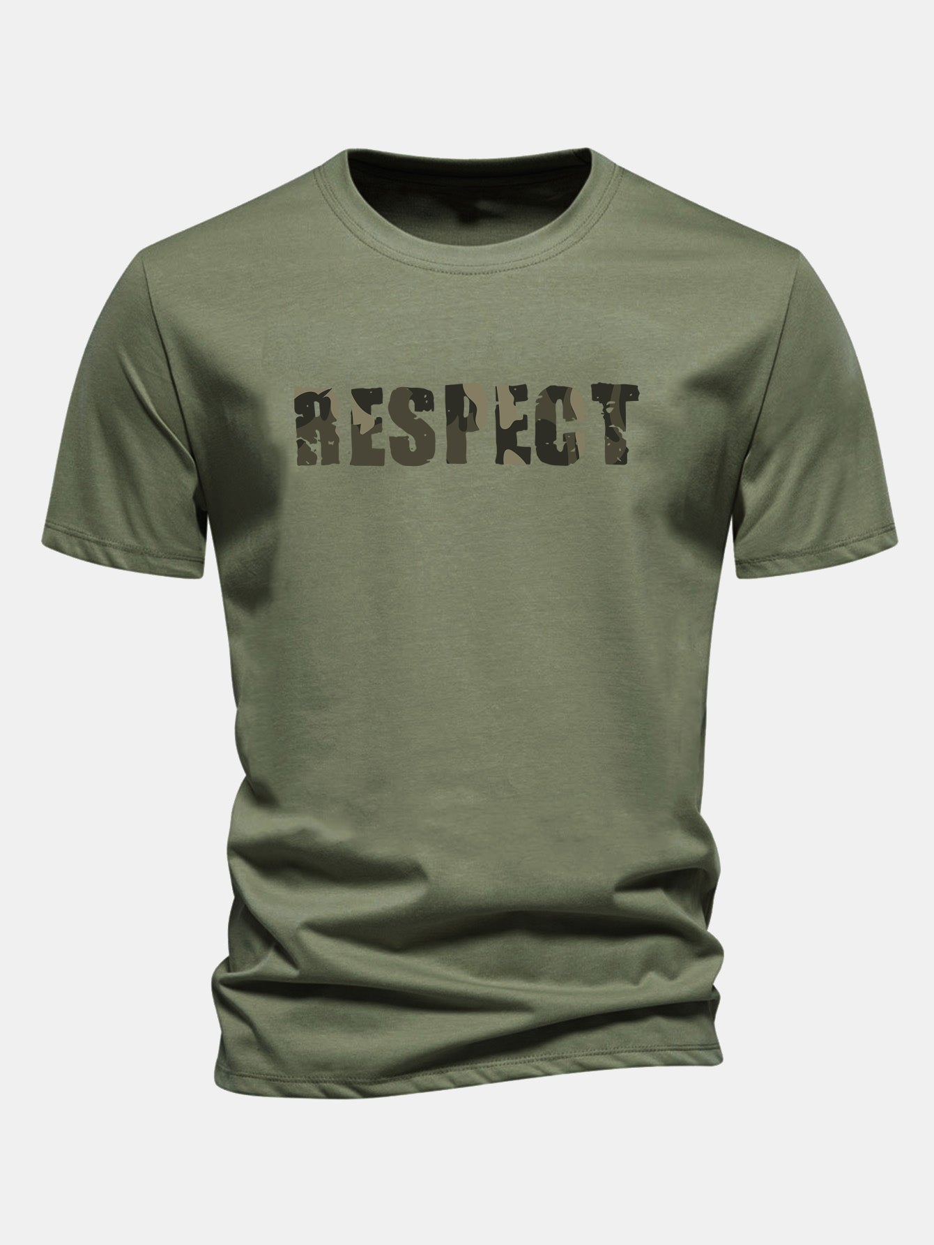 Regular Fit Camouflage Respect Print Cotton T-Shirt