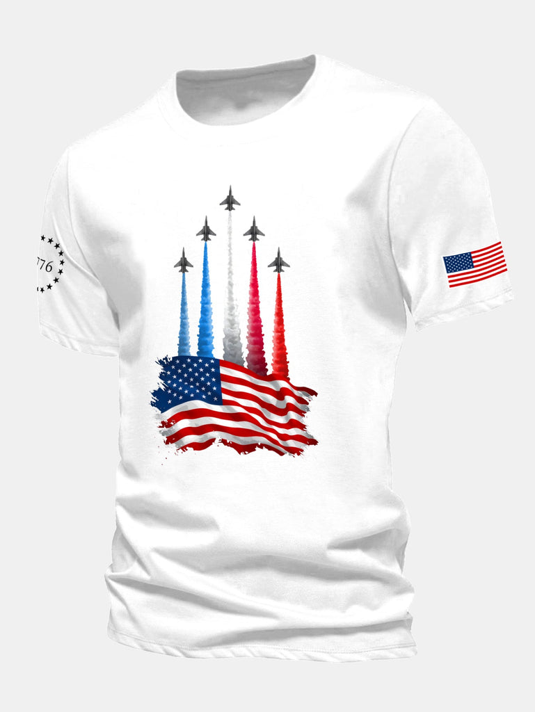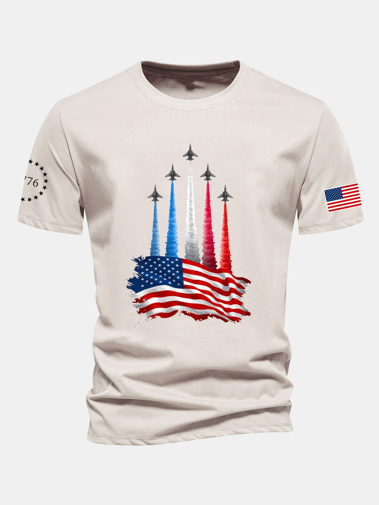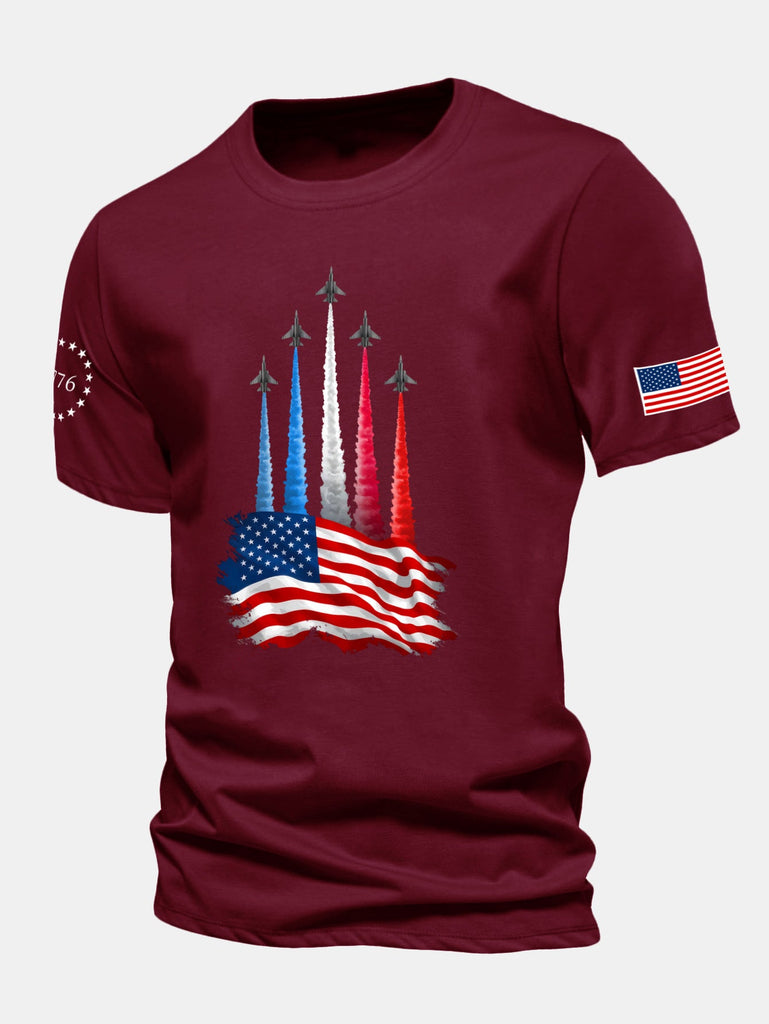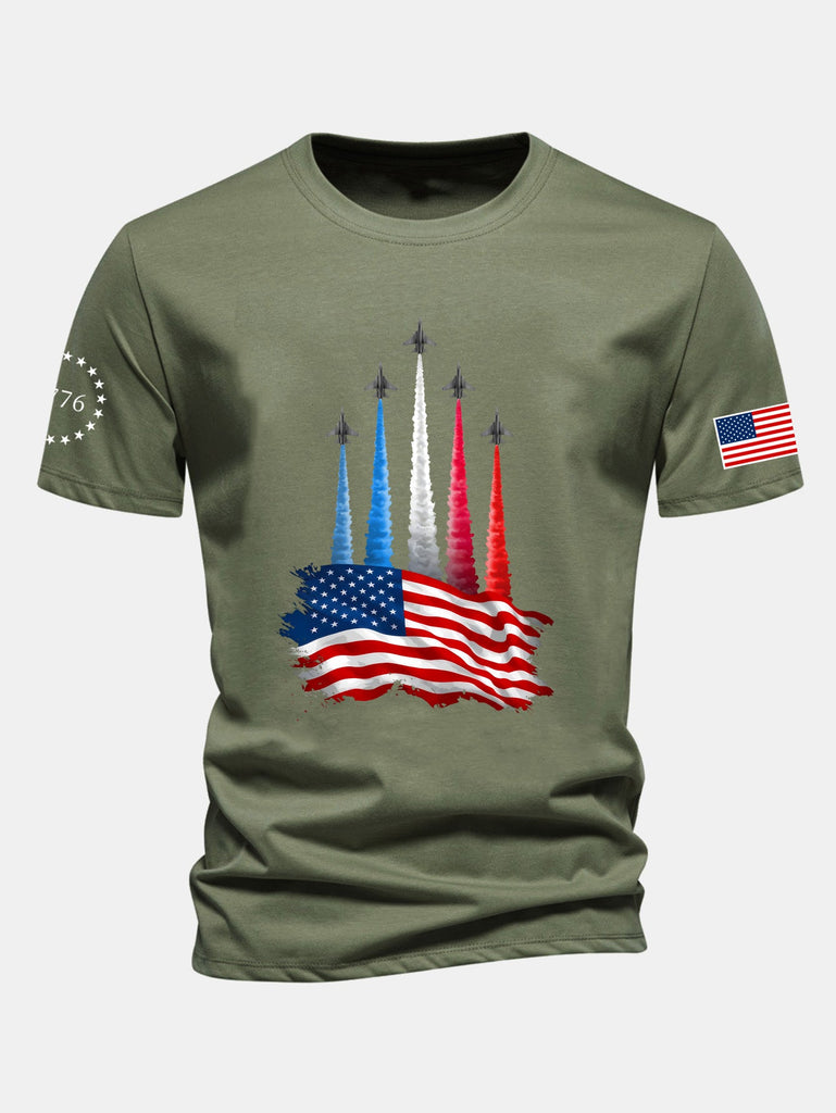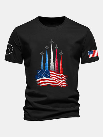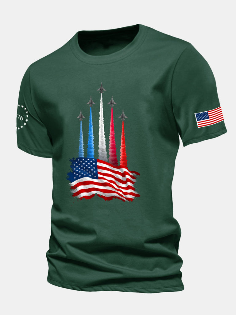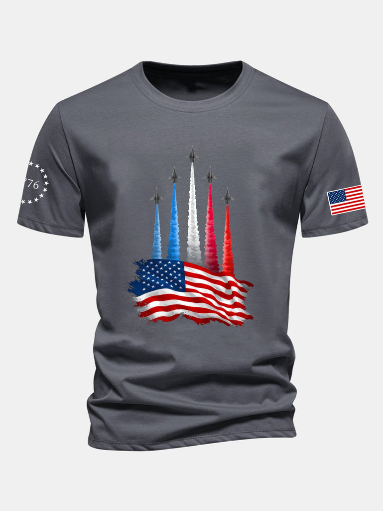 Regular Fit Fighter Jets With USA Flag Print Cotton T-Shirt