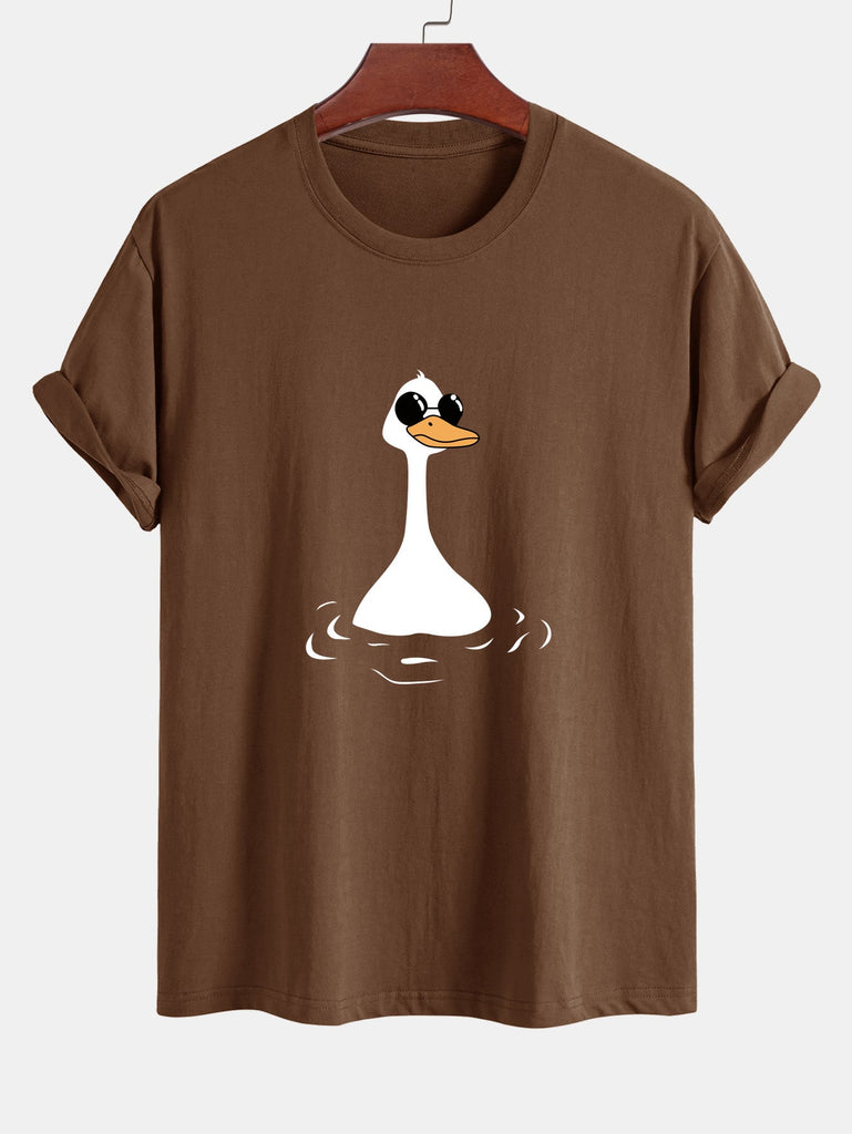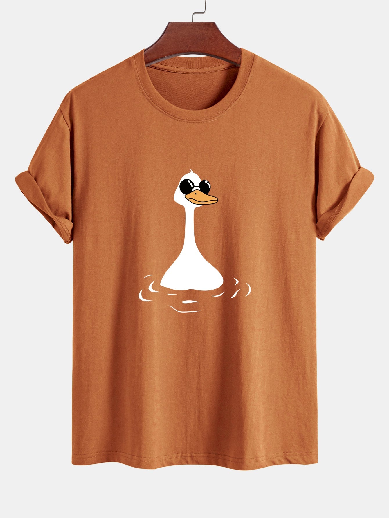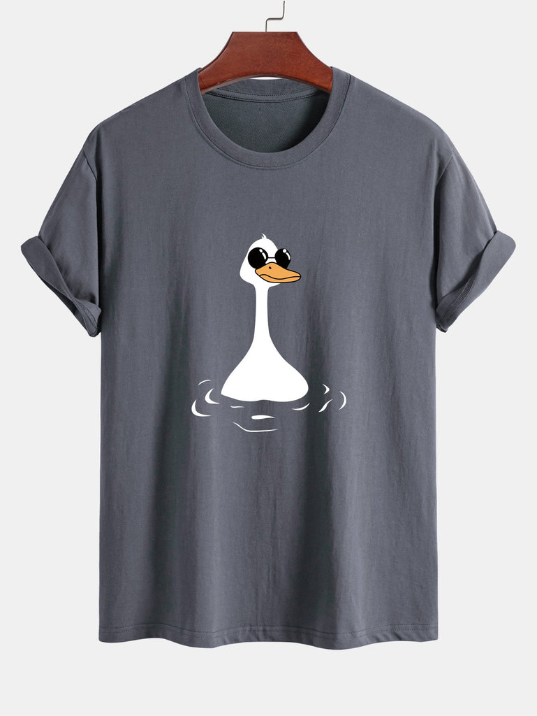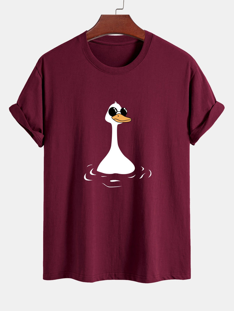 Add a playful twist to your casual wardrobe with this sunglasses goose print T-shirt. Made from soft, breathable cotton, it features a quirky goose graphic sporting sunglasses¡ªperfect for those who love humor and individuality in their style.