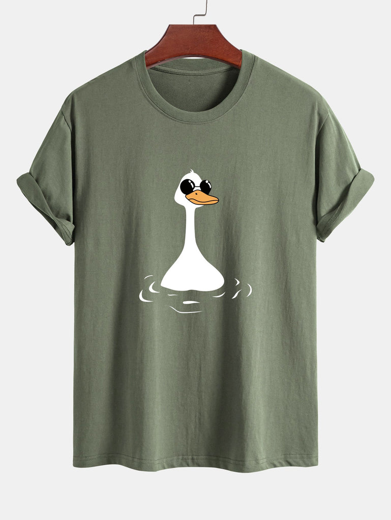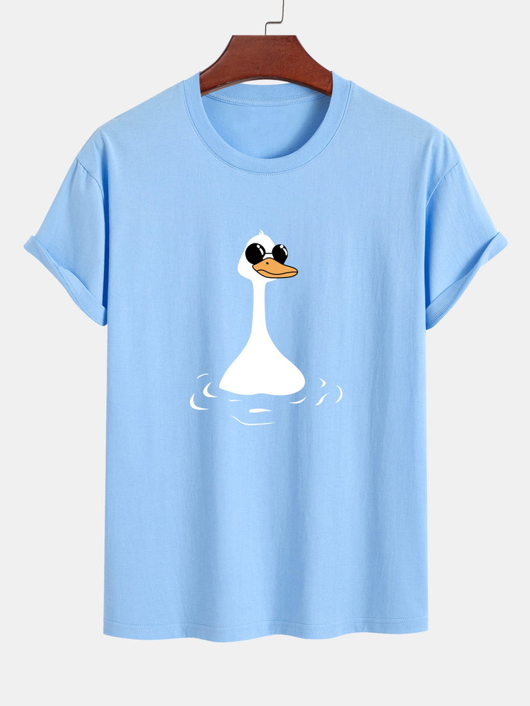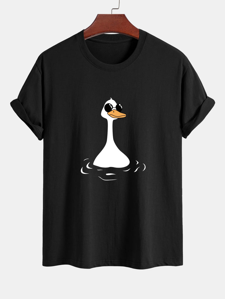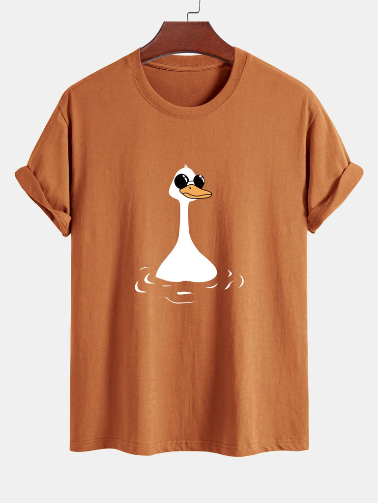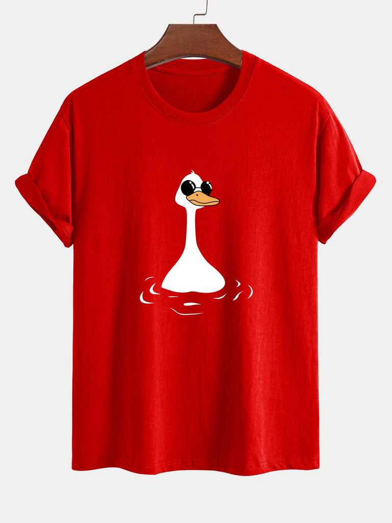 Add a playful twist to your casual wardrobe with this sunglasses goose print T-shirt. Made from soft, breathable cotton, it features a quirky goose graphic sporting sunglasses¡ªperfect for those who love humor and individuality in their style.