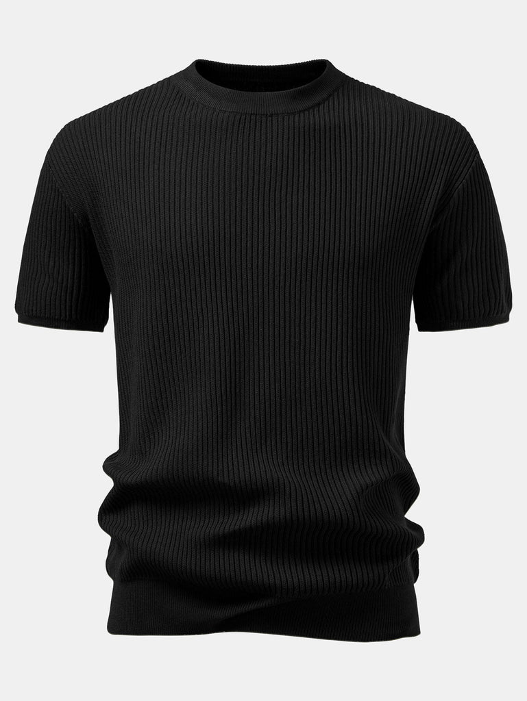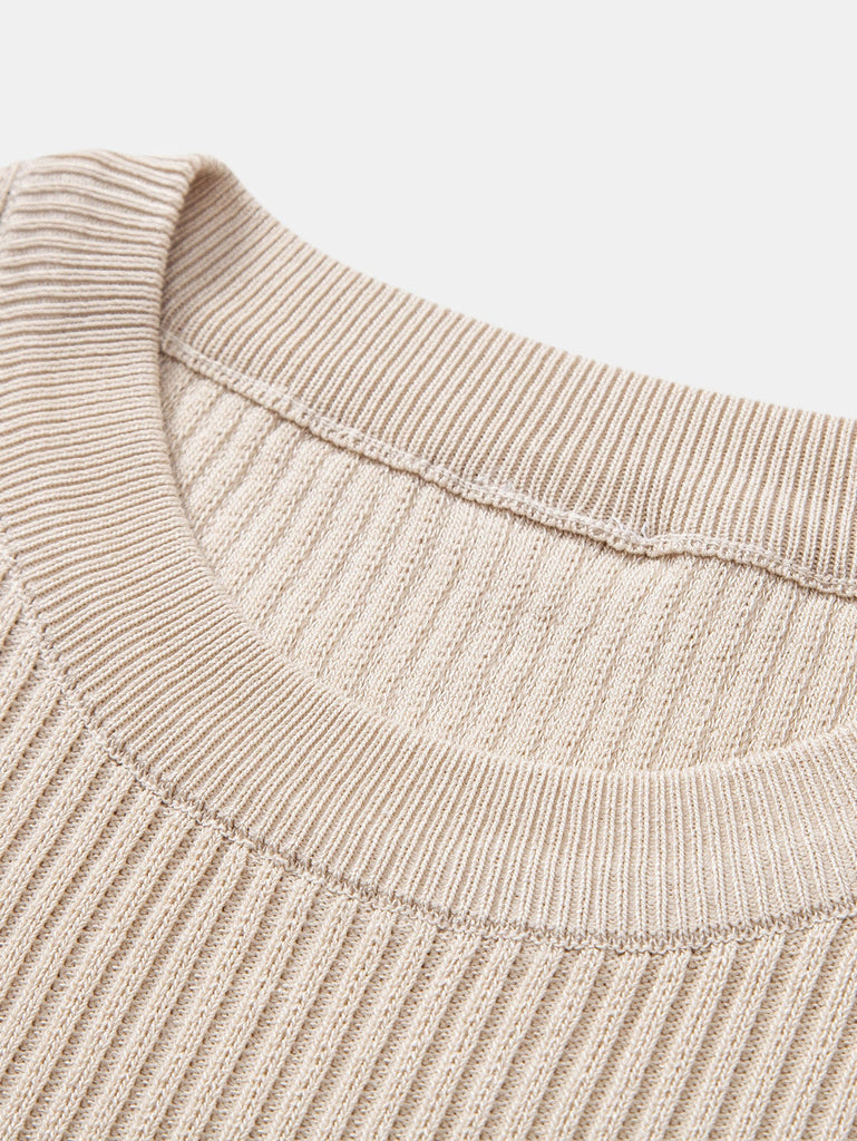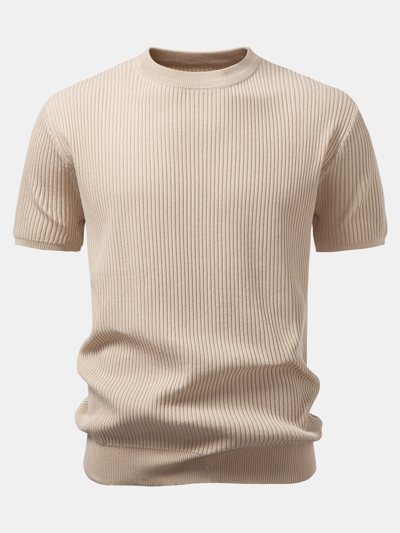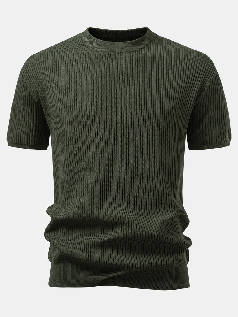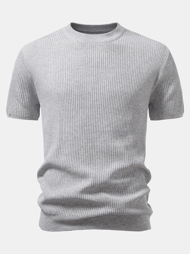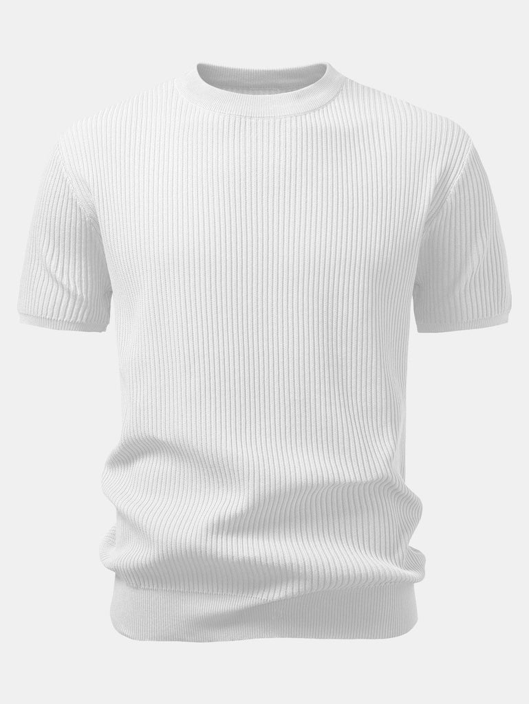 Ribbed Crew Neck Sweater Knitted T-Shirt
