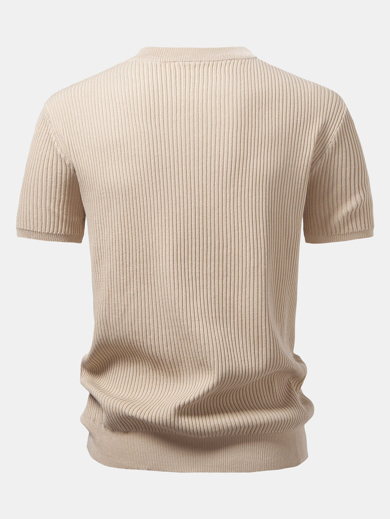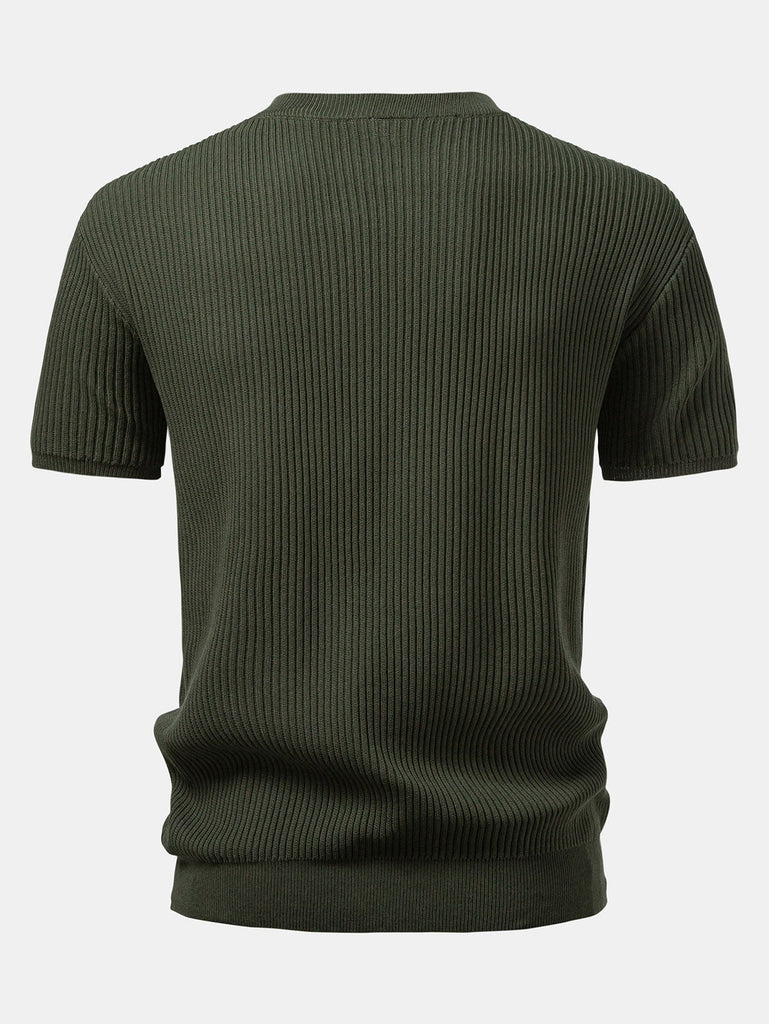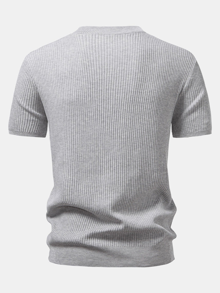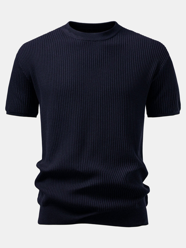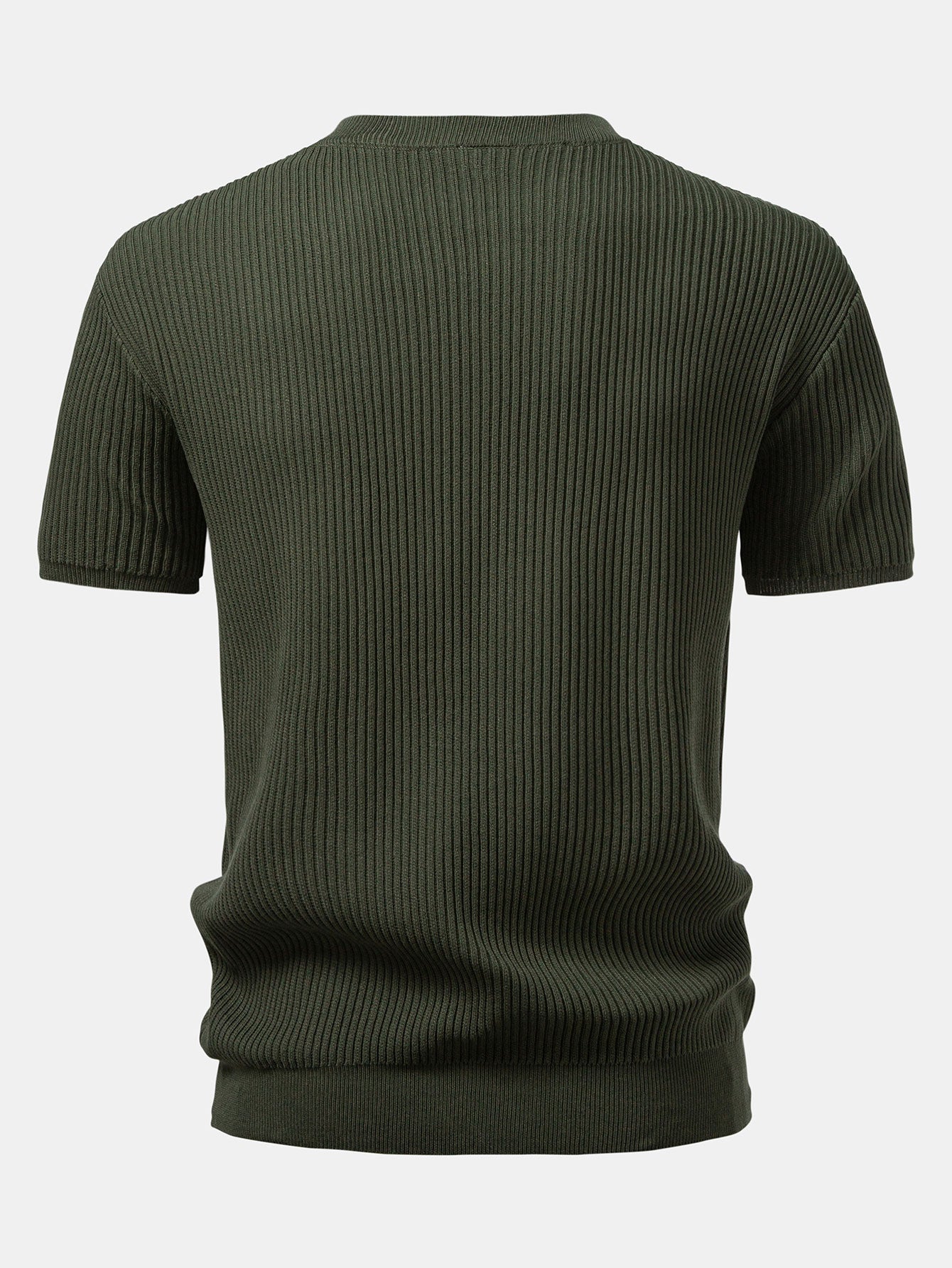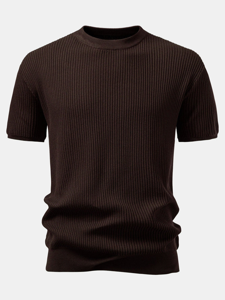 Ribbed Crew Neck Sweater Knitted T-Shirt