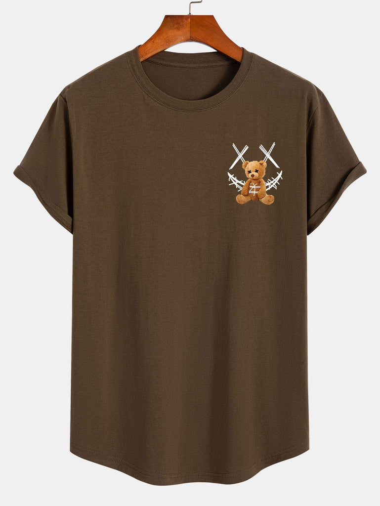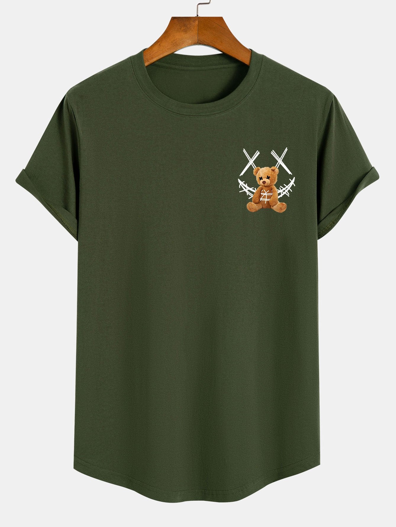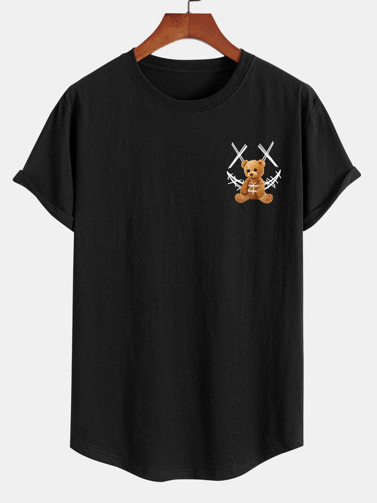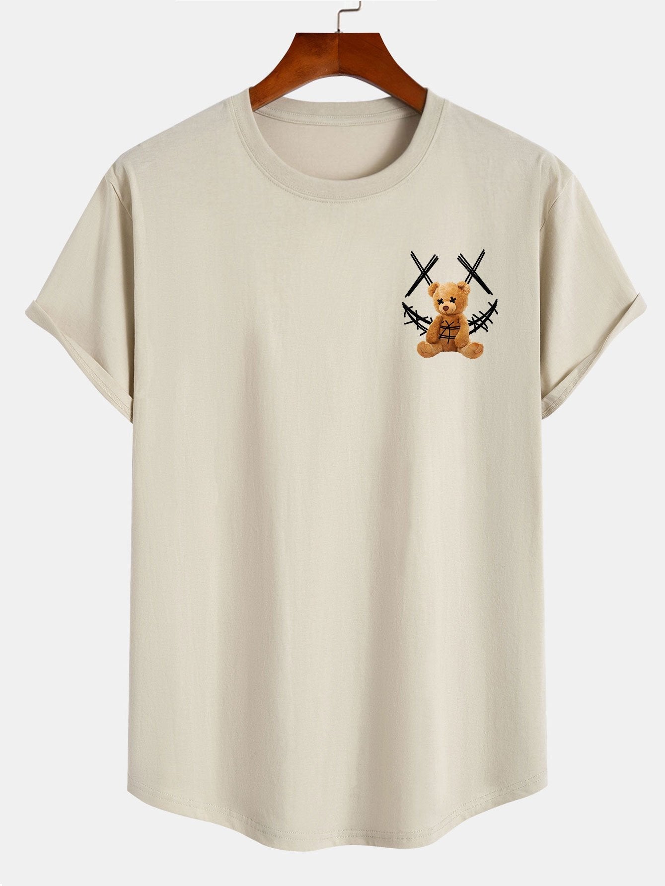 Smiley Bear Print Cotton Arc Hem T-Shirt