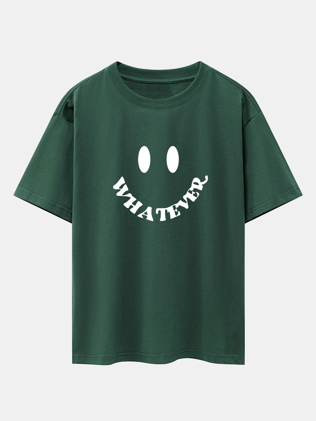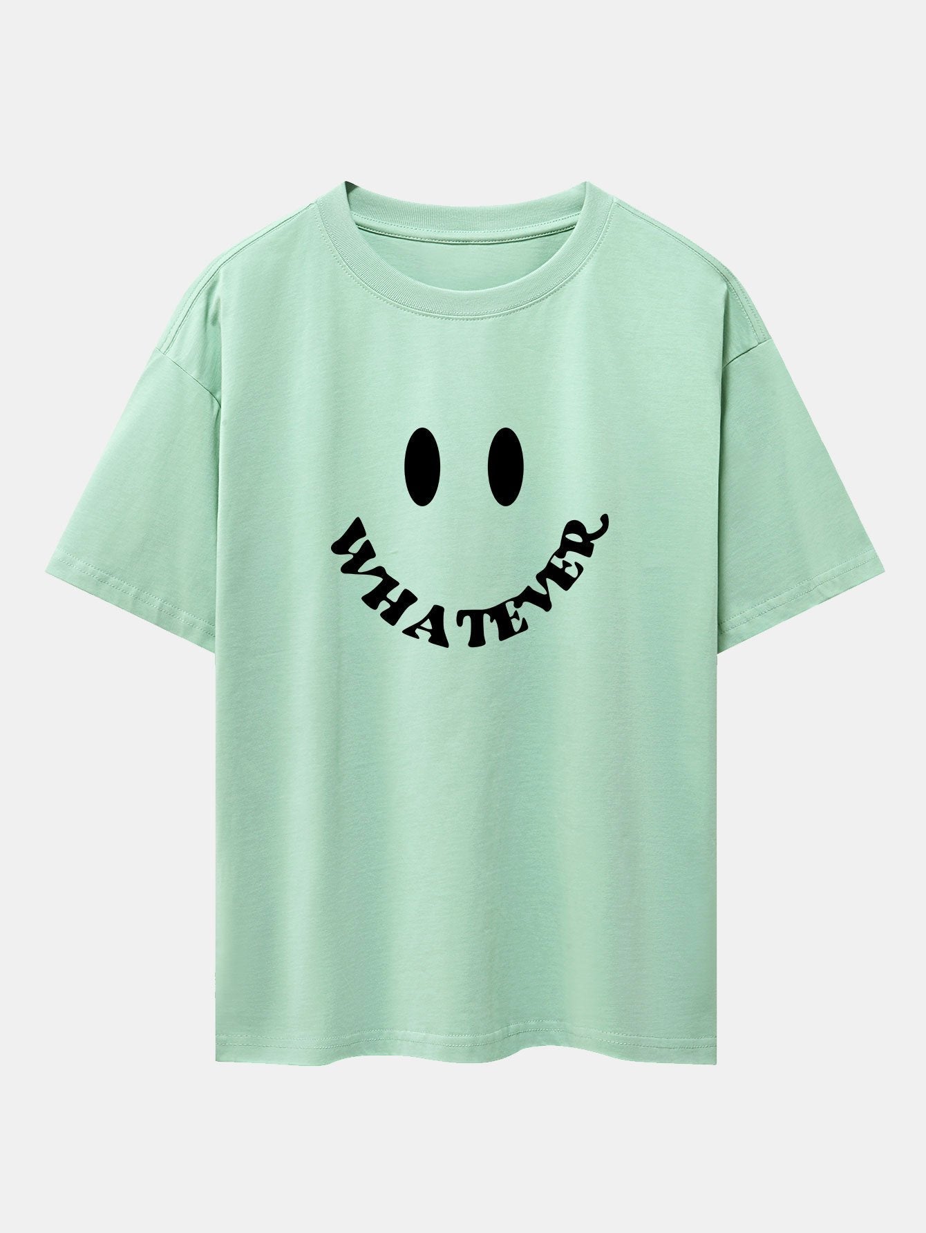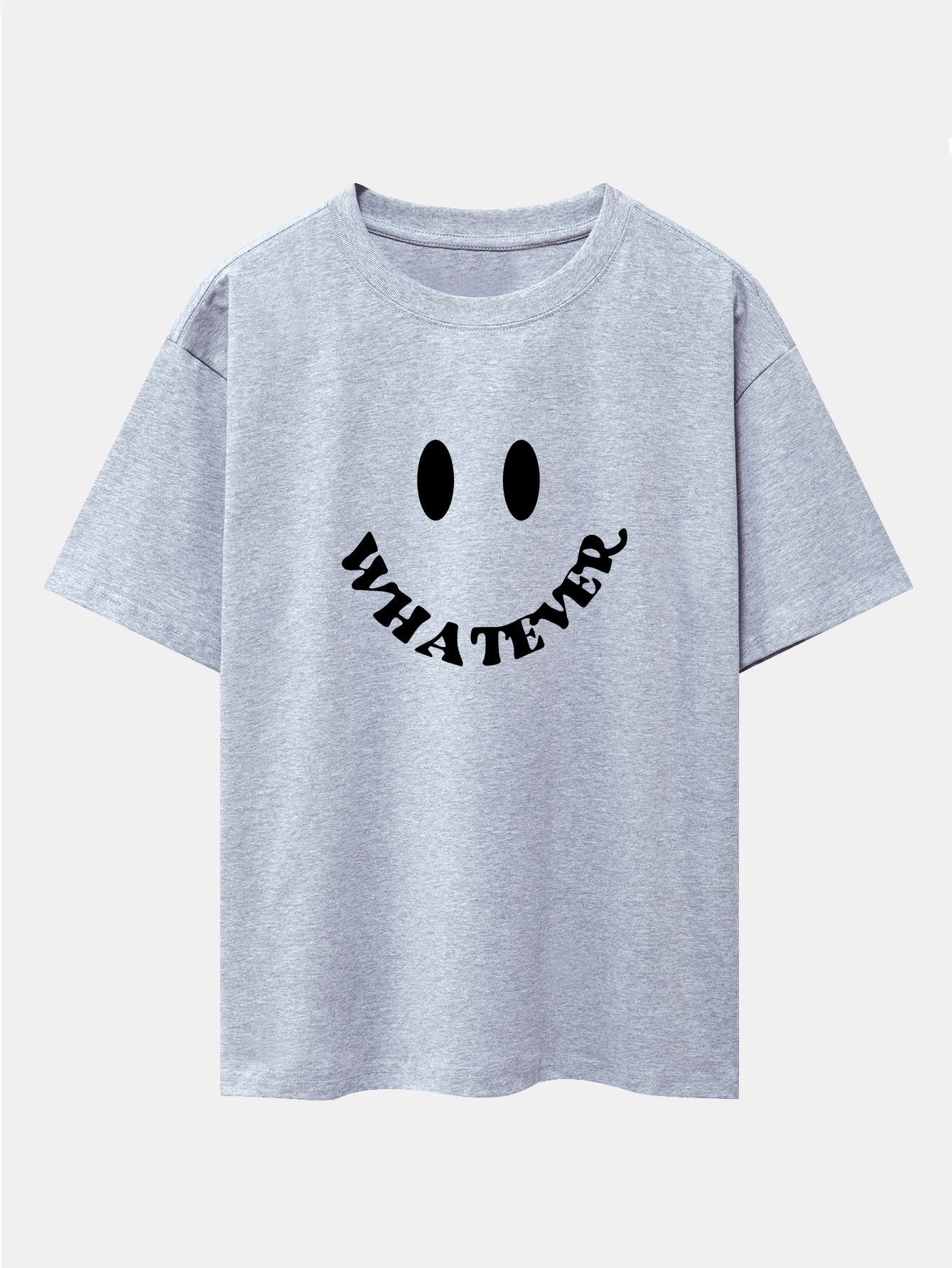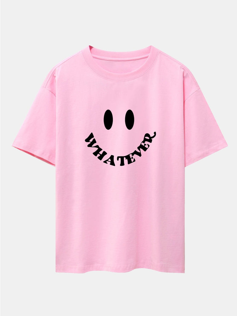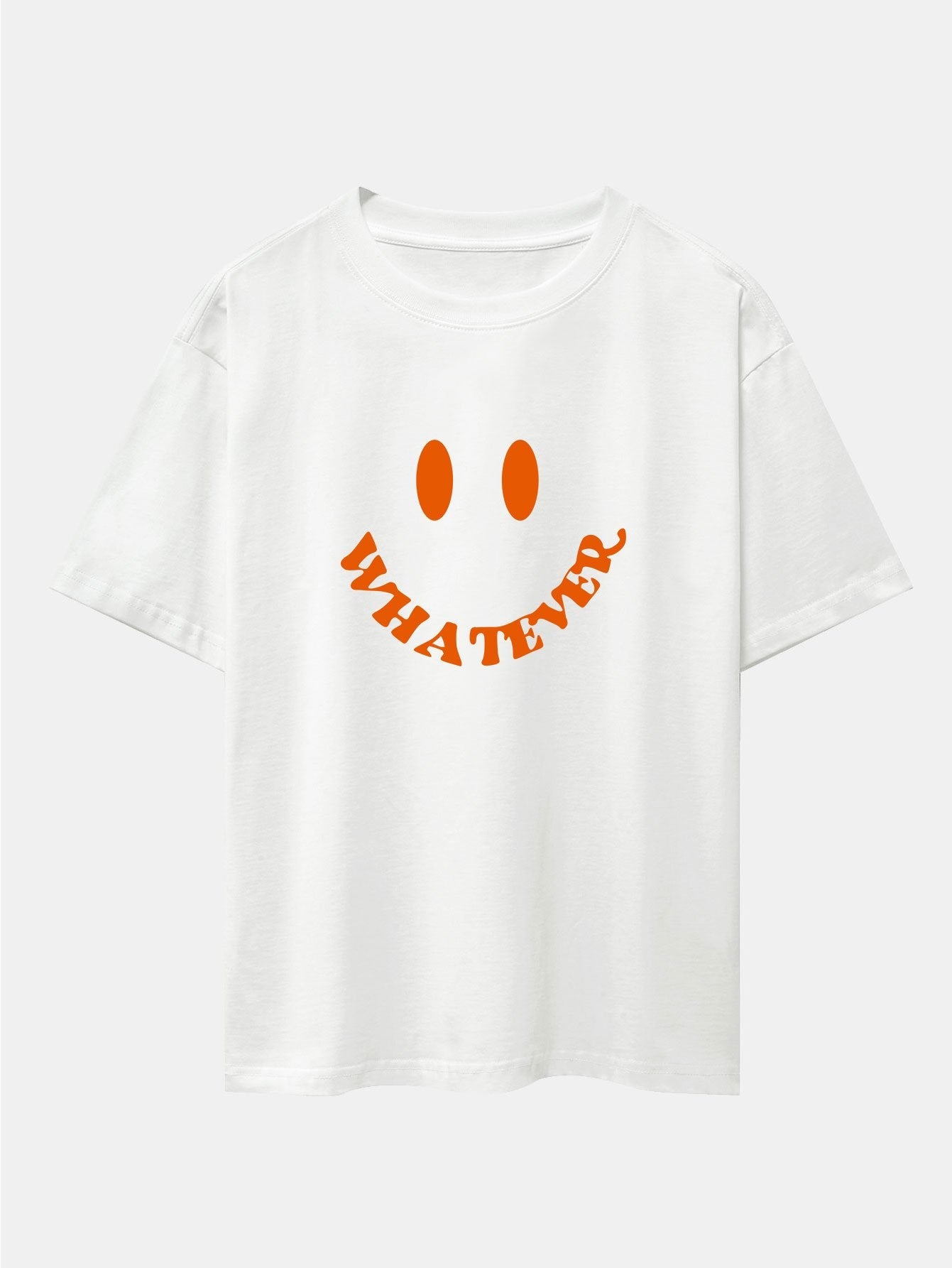 Smiley Face Slogan Print Drop Shoulder Oversize T-Shirt