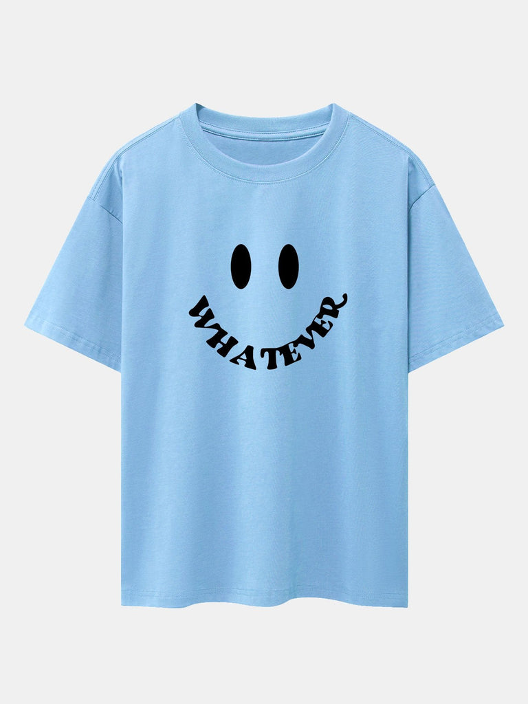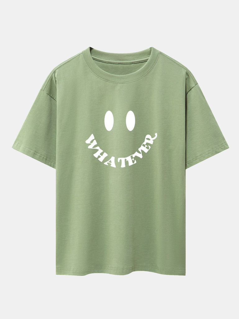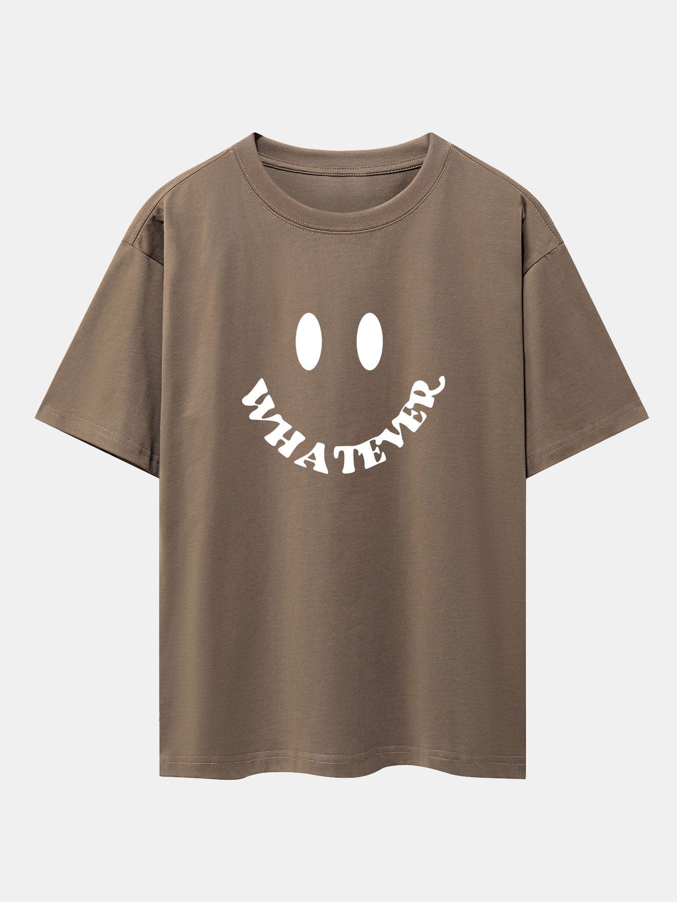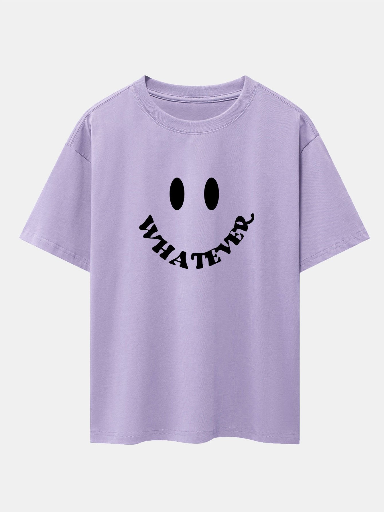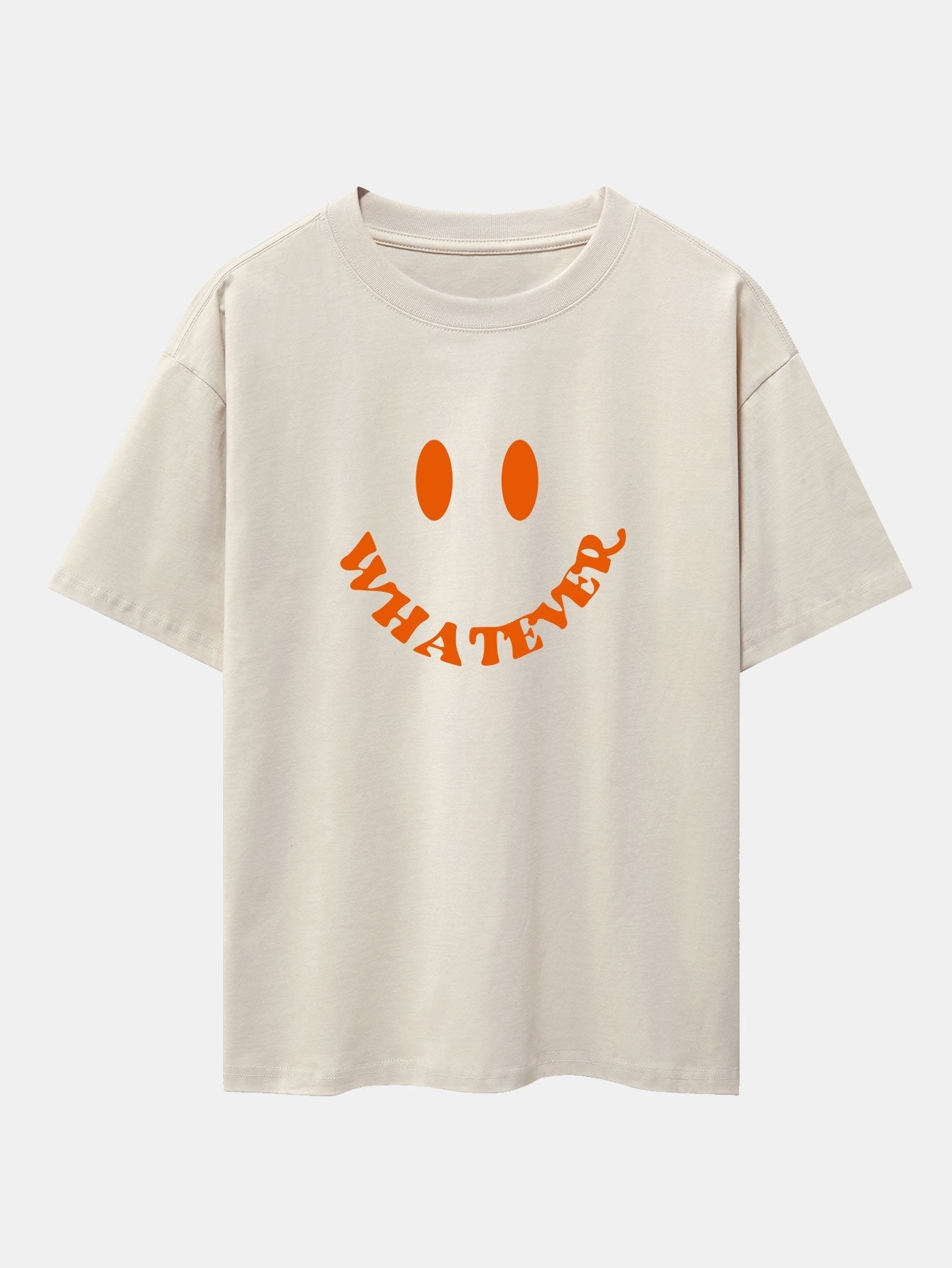 Smiley Face Slogan Print Drop Shoulder Oversize T-Shirt