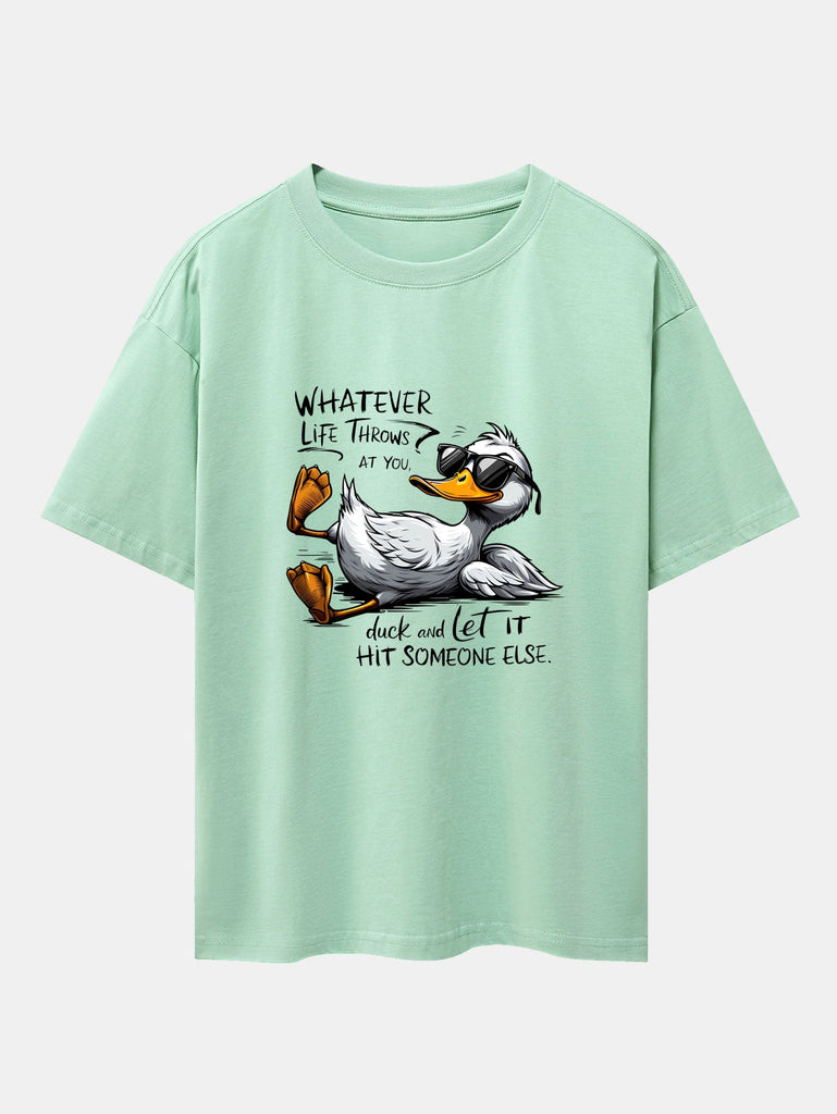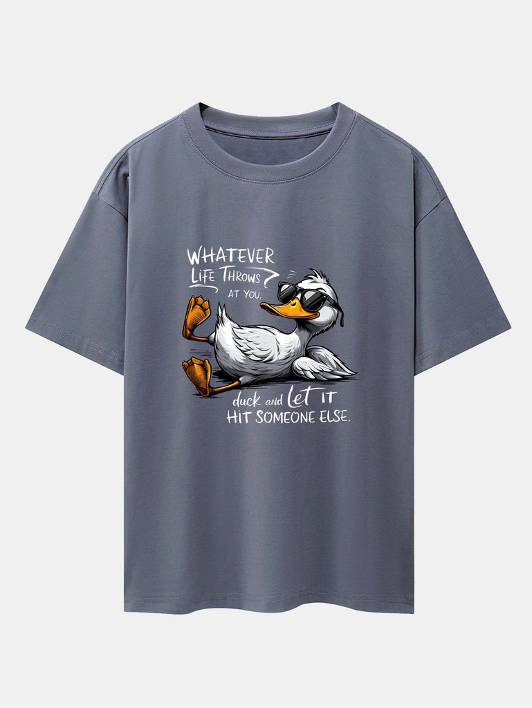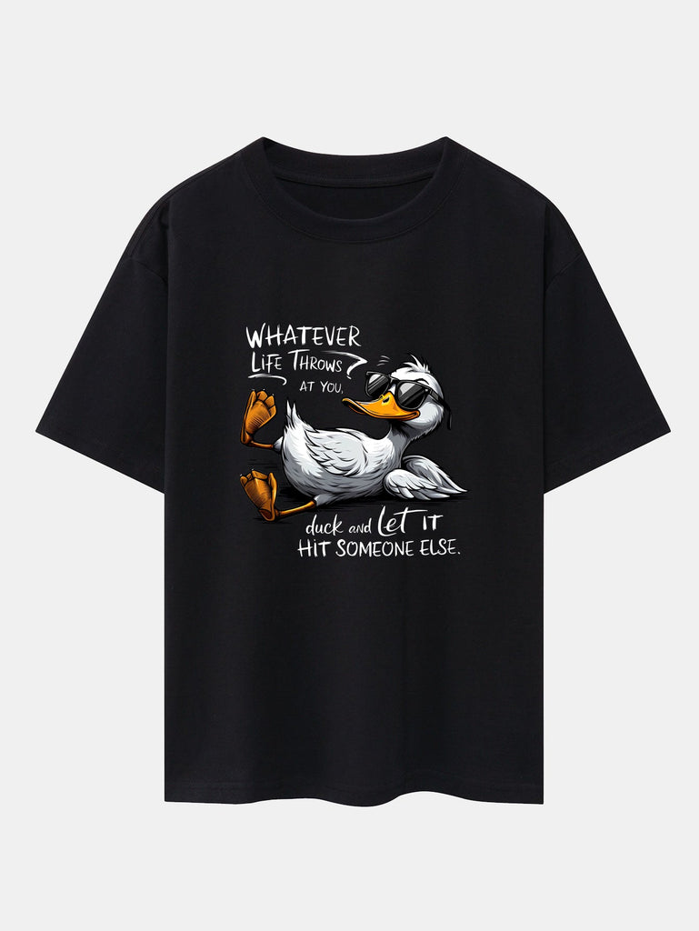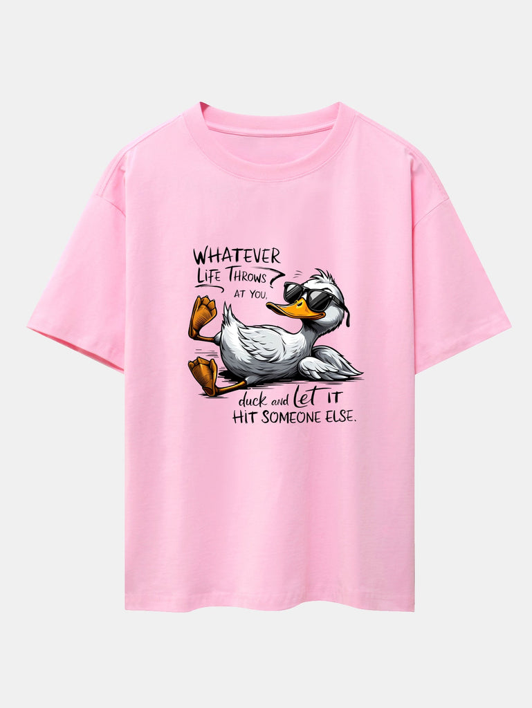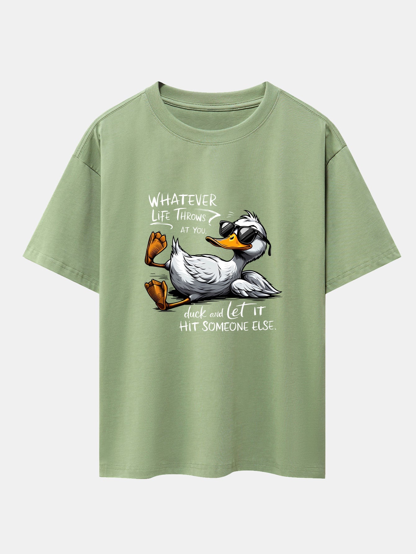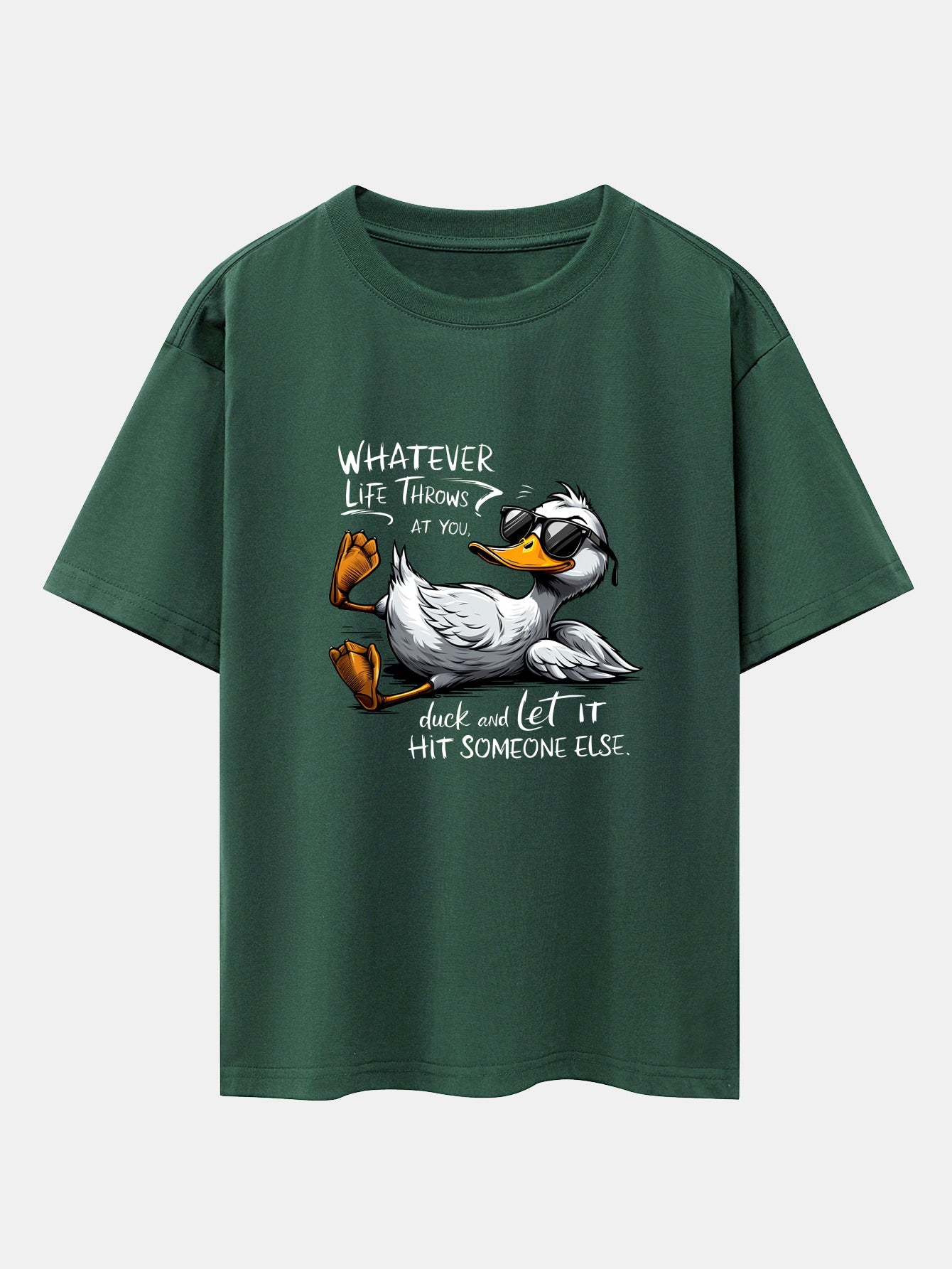 Bring bold attitude and quirky charm to your look with this sunglasses goose print drop shoulder oversize T-shirt. Featuring a confident goose rocking shades, this tee adds humor and personality to your outfit. The oversized fit and dropped shoulders offer all-day comfort with a street-style edge.
