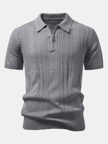 Twist Jacquard Knitted Zipper Polo Shirt