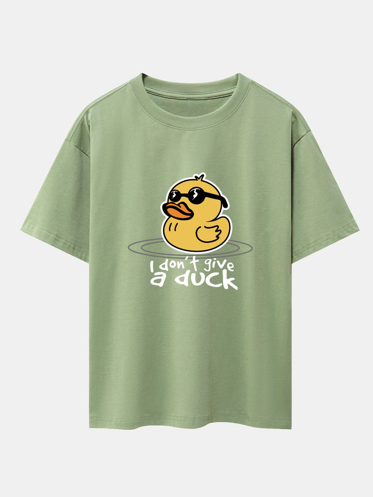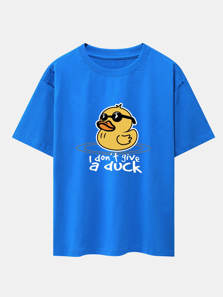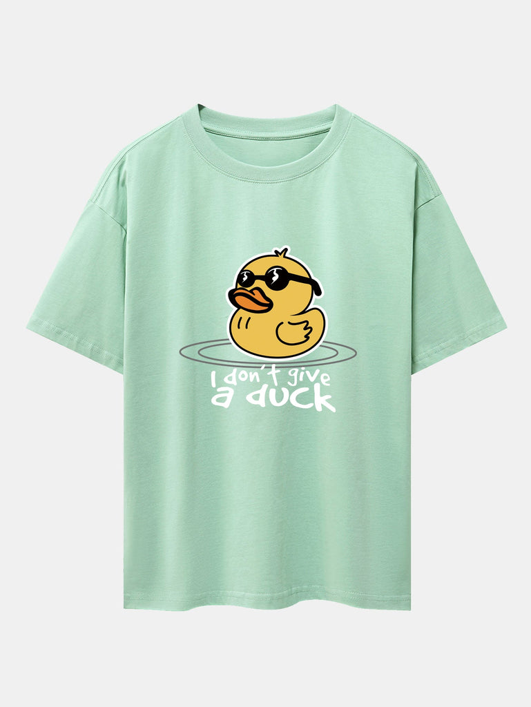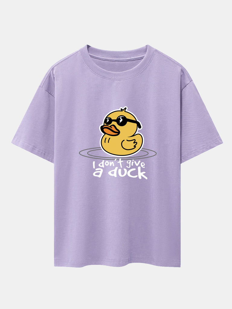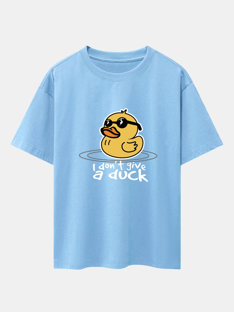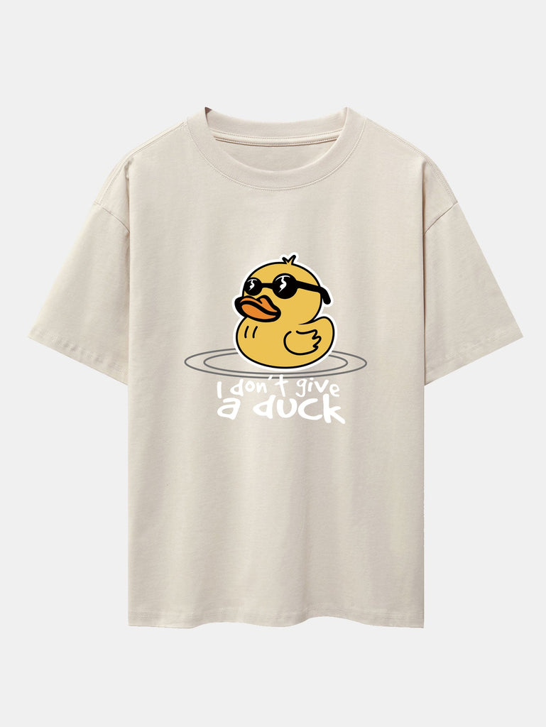 Bring the sunshine and good vibes with this fun and quirky yellow duck with sunglasses graphic tee. Featuring a cool duck with shades and a chill attitude, this oversized drop shoulder T-shirt adds playful personality to your casual wardrobe. Made with soft cotton fabric for all-day comfort and effortless streetwear style.