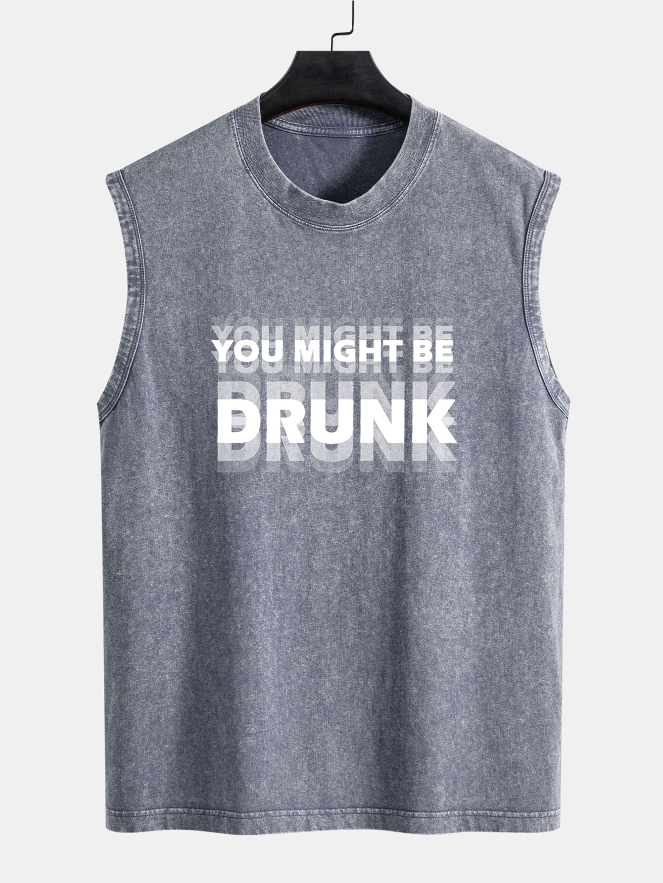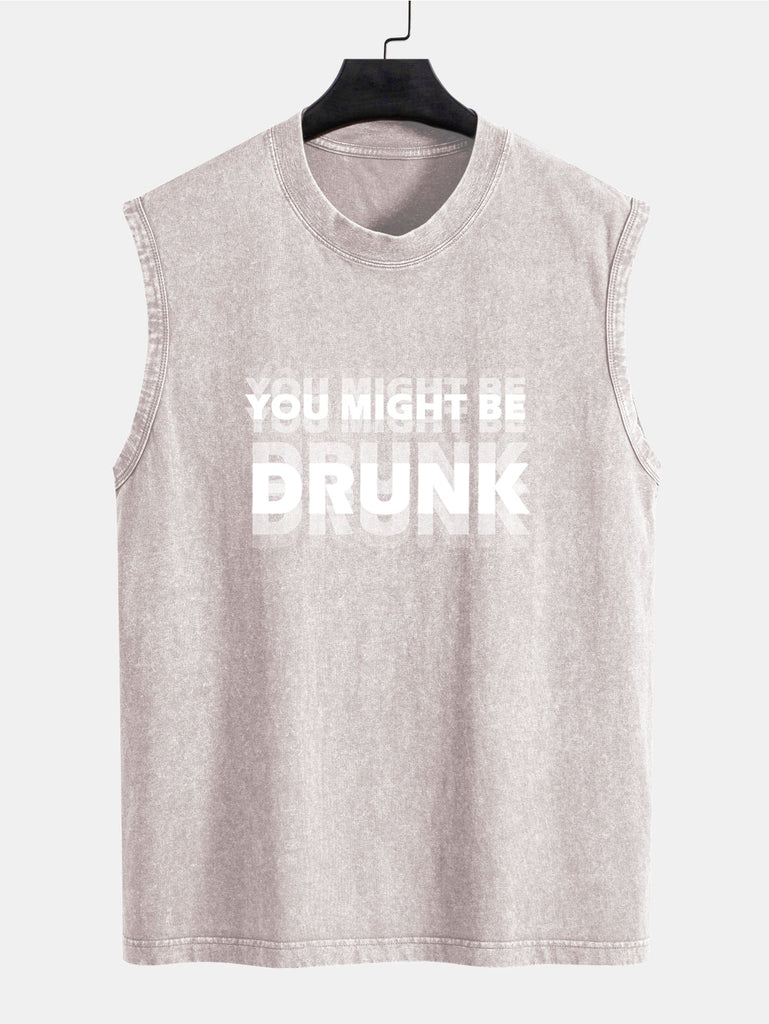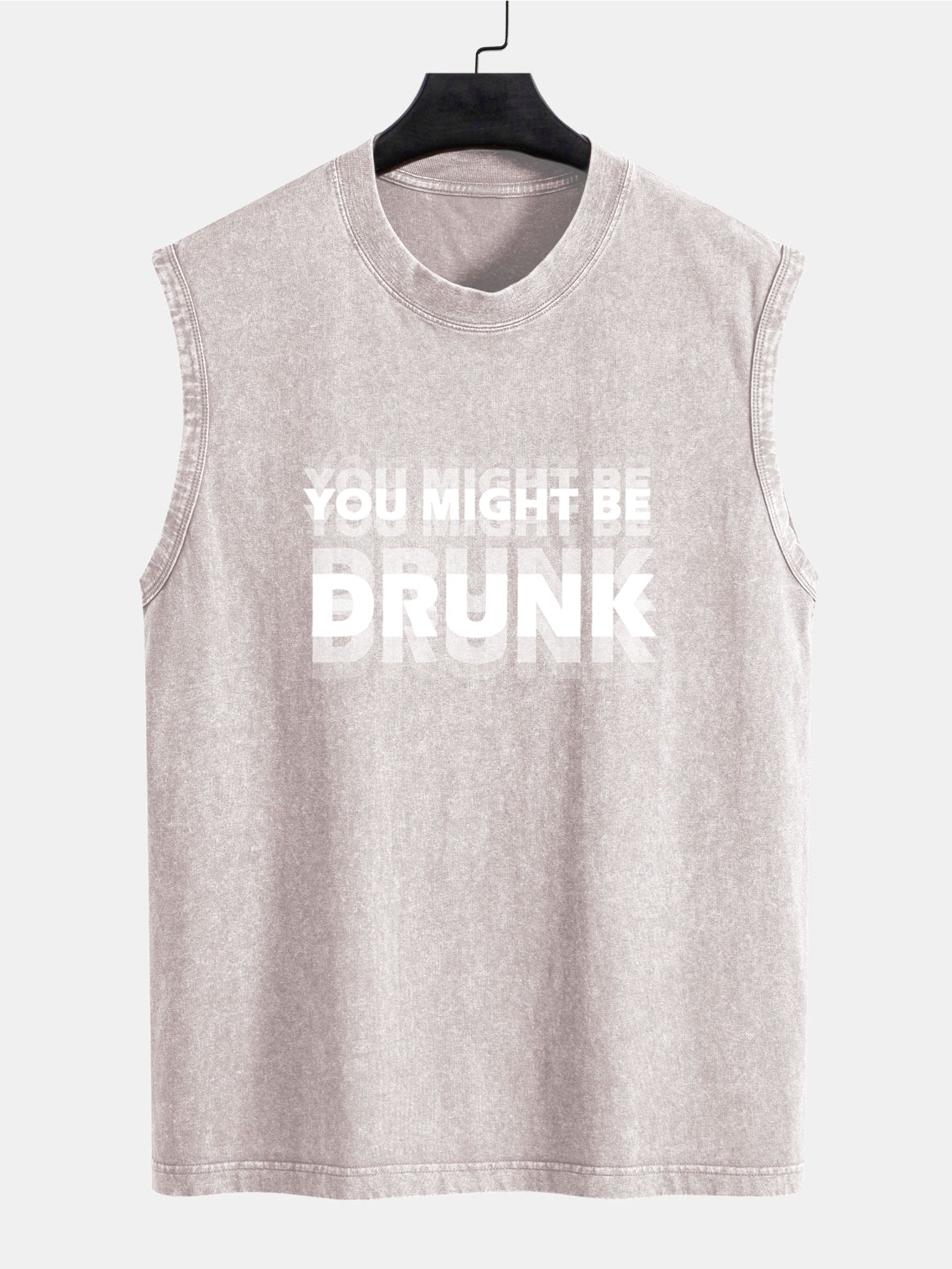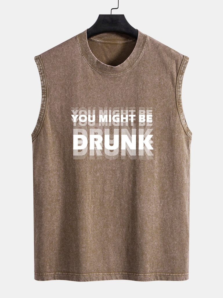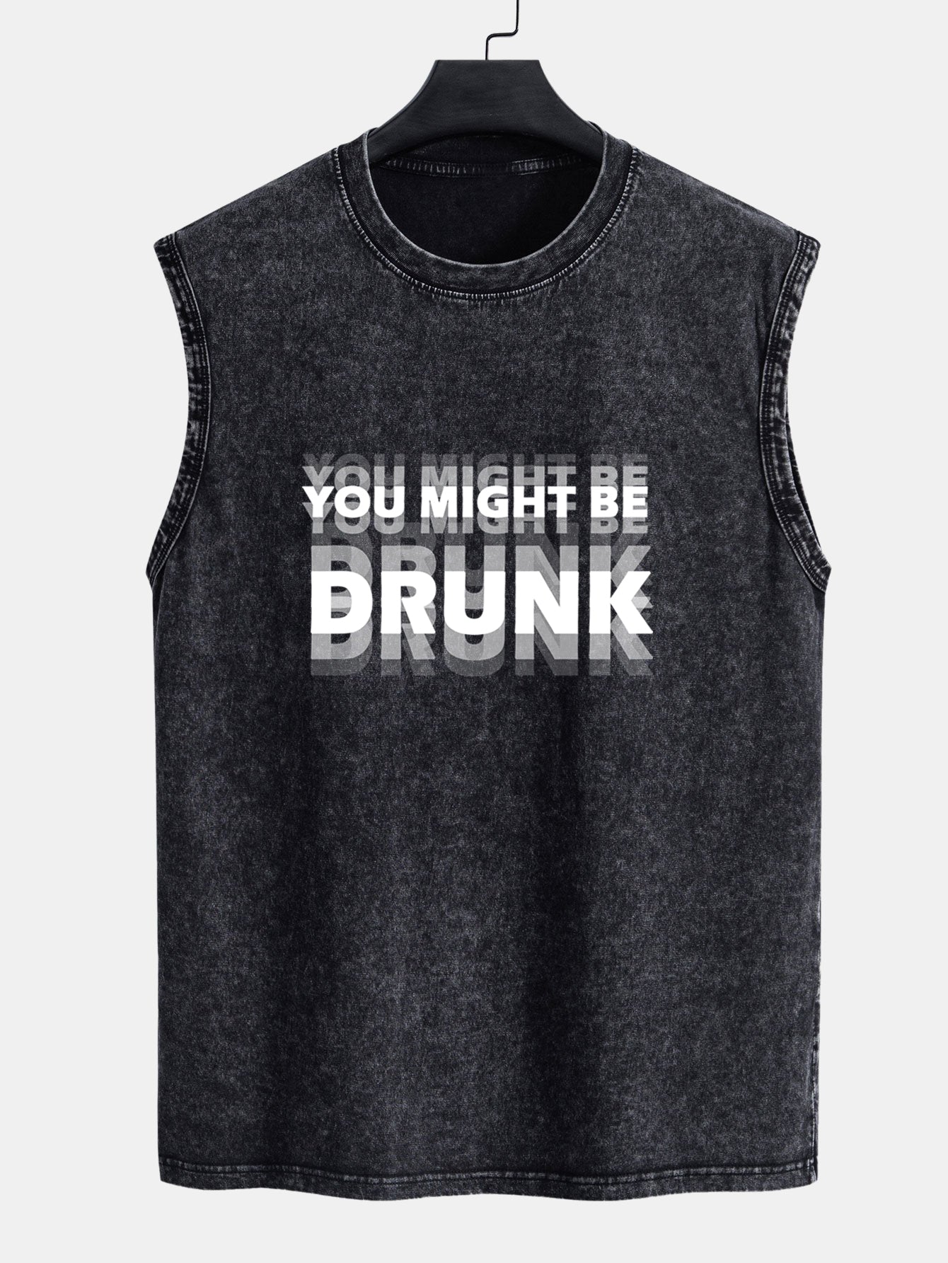 Keep it bold, cheeky, and effortlessly cool in our you might be drunk print washed distressed tank top. With its playful slogan and vintage-washed finish, this tank delivers laid-back confidence and a rebellious edge ¡ª perfect for making a statement without saying a word.