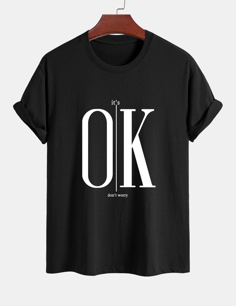 Regular Fit OK Slogan Print Cotton T-Shirt