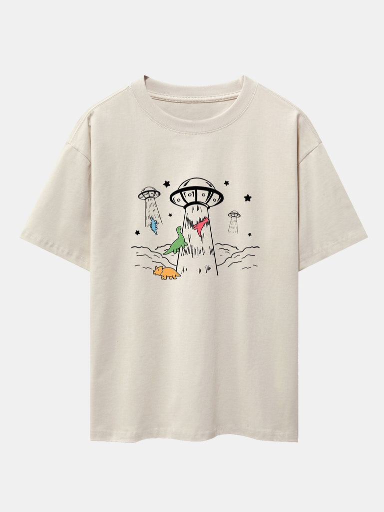 UFO Take Away Dinosaurs Print Drop Shoulder Oversize T-Shirt