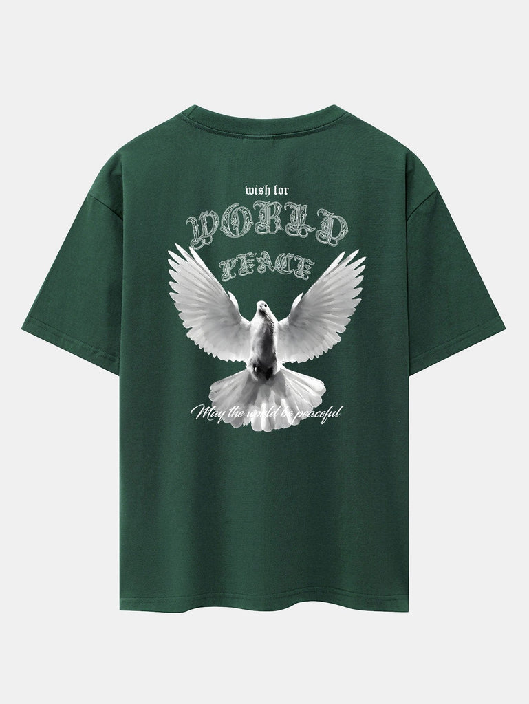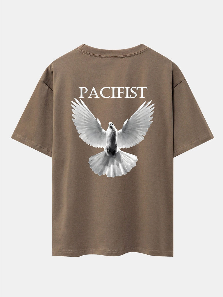 Pacifist Dove Back Print Drop Shoulder Oversize T-Shirt