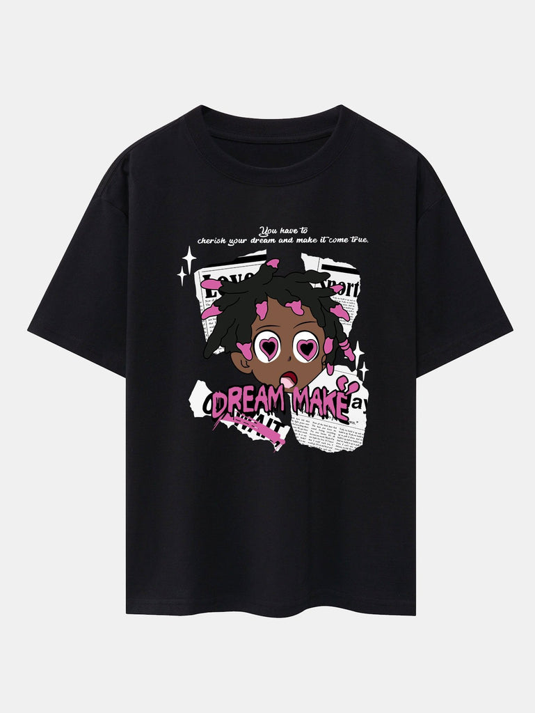 Cartoon Character Slogan Print Drop Shoulder Oversize T-Shirt