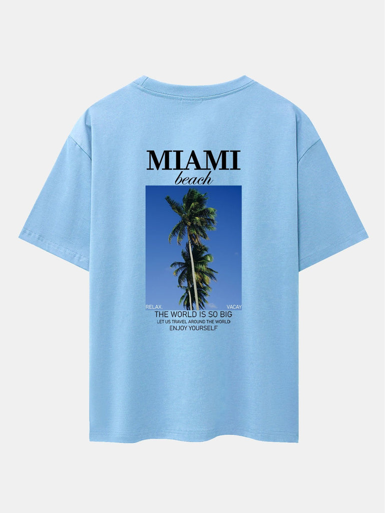 Miami Palm Tree Back Print Drop Shoulder Oversize T-Shirt
