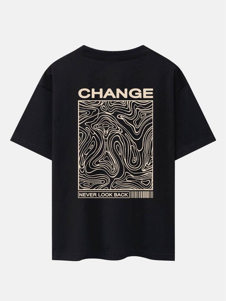 Marble Texture Slogan Back Print Drop Shoulder Oversize T-Shirt