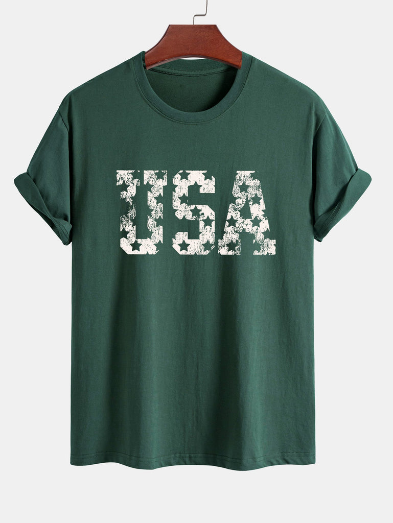Regular Fit American Flag Freedom Print Cotton T-Shirt