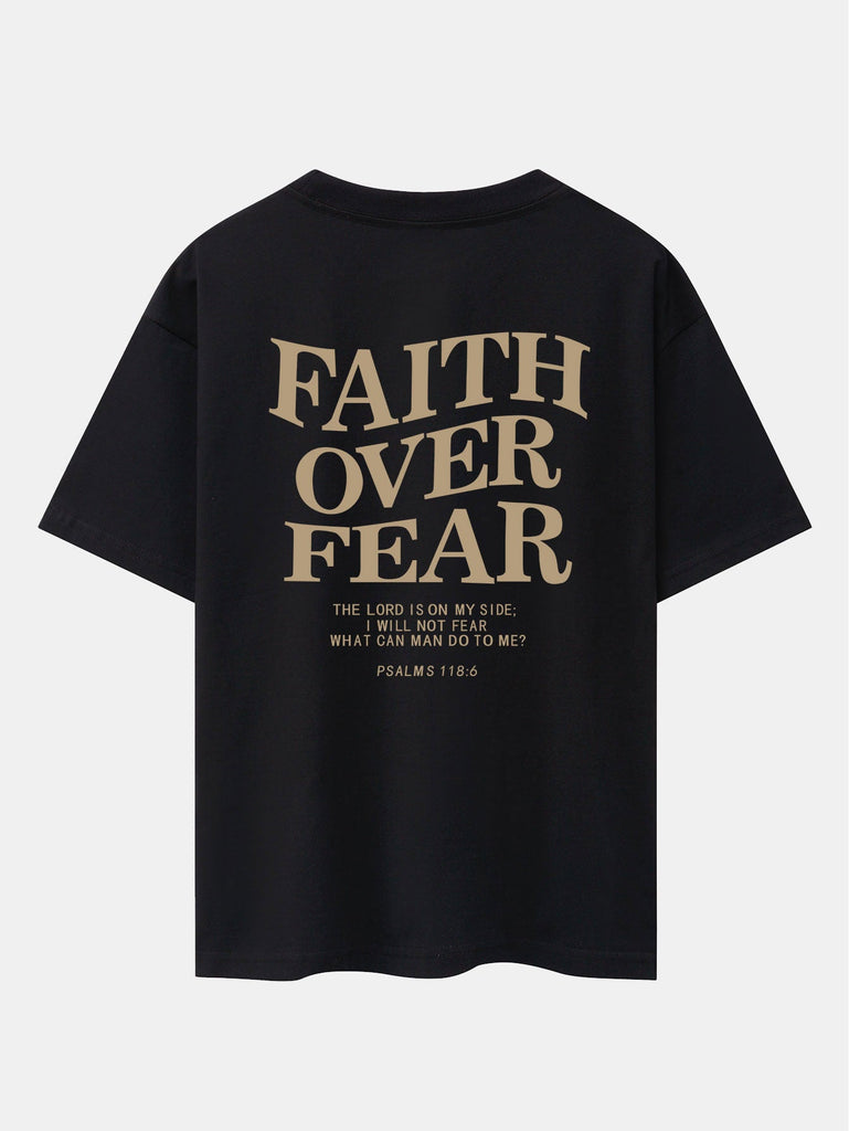 Faith Over Fear Print Drop Shoulder Oversize T-Shirt