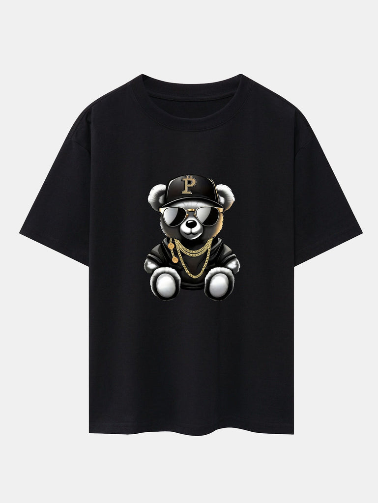 Hip Hop Bear Print Drop Shoulder Oversize T-Shirt