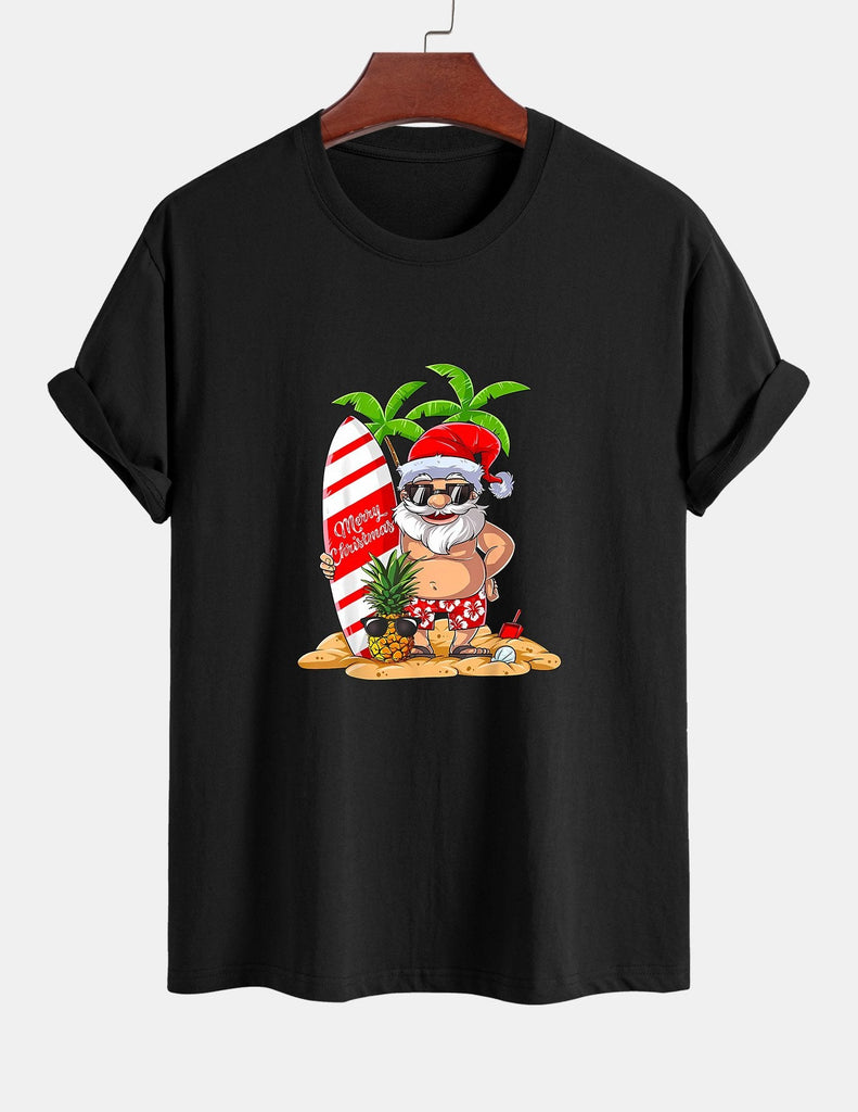 Regular Fit Summer Beach Santa Print Cotton T-Shirt