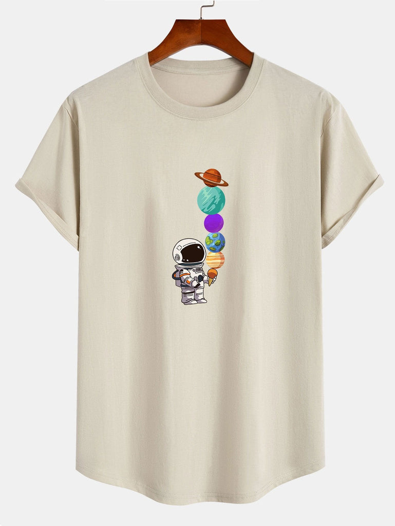 Planet Astronaut Print Cotton Arc Hem T-Shirt