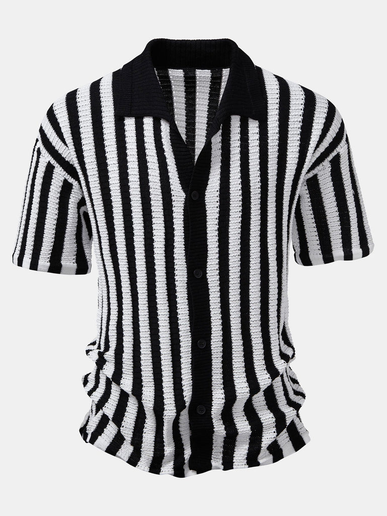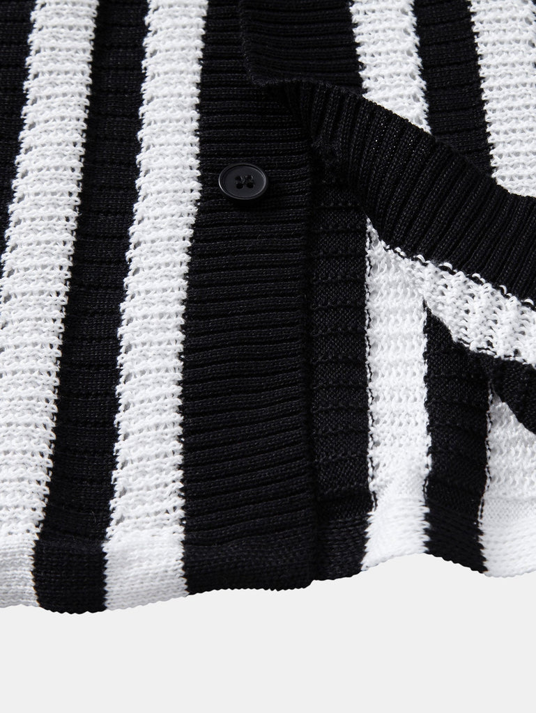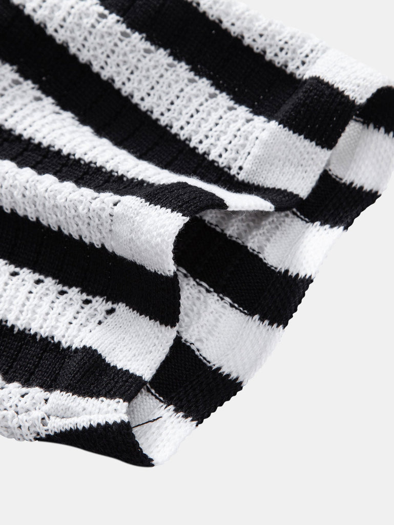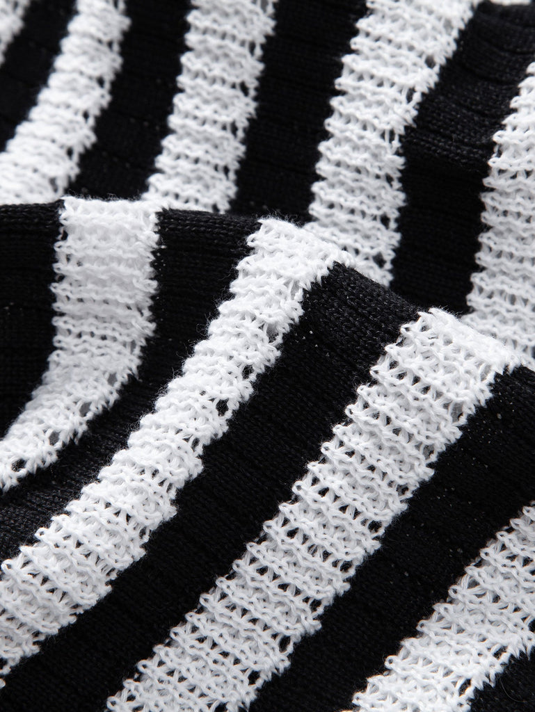 The drop shoulder stripe crochet shirt brings a touch of texture and relaxed charm with its airy, semi-sheer knit and loose silhouette. Paired with lightweight straight-leg linen pants, this set is designed for warm-weather comfort without compromising on style.?